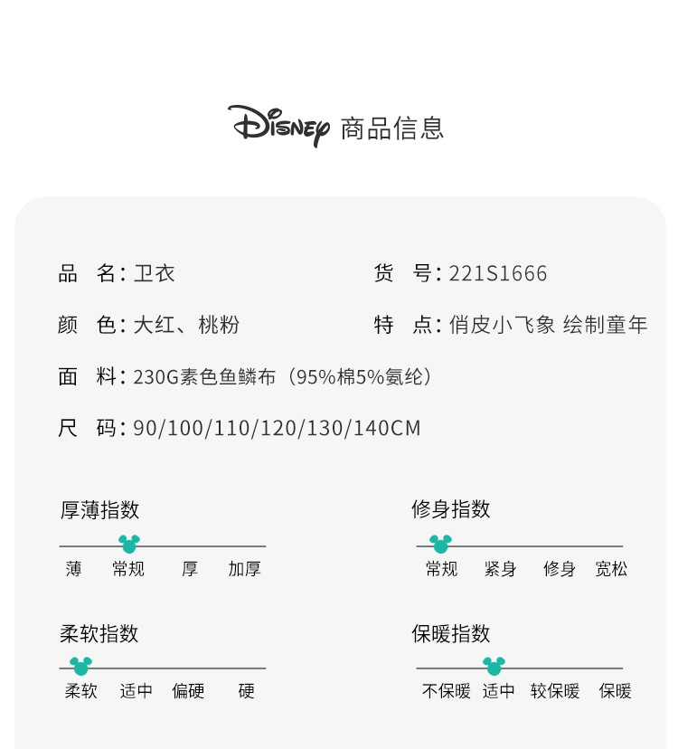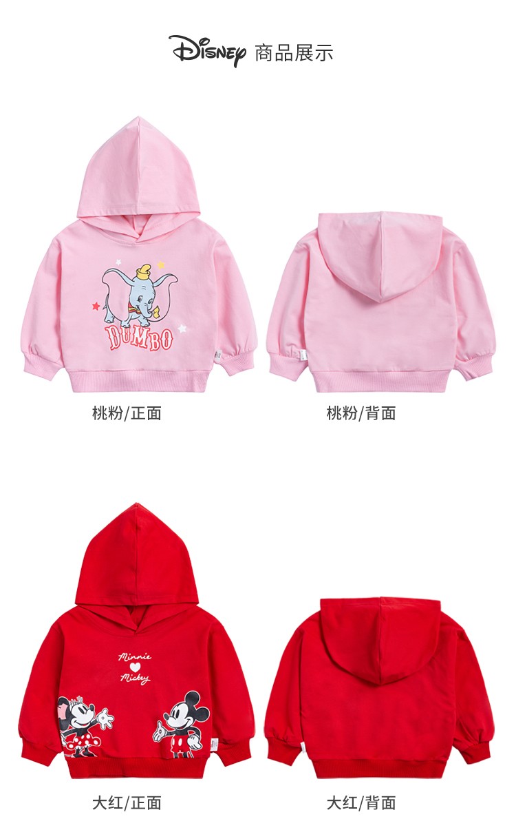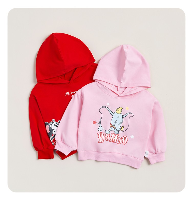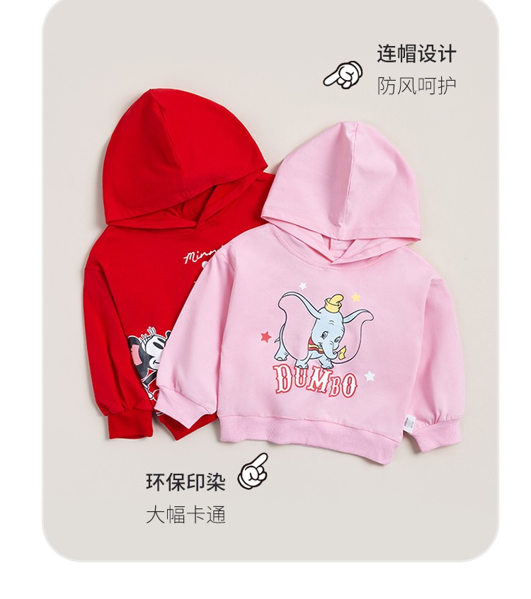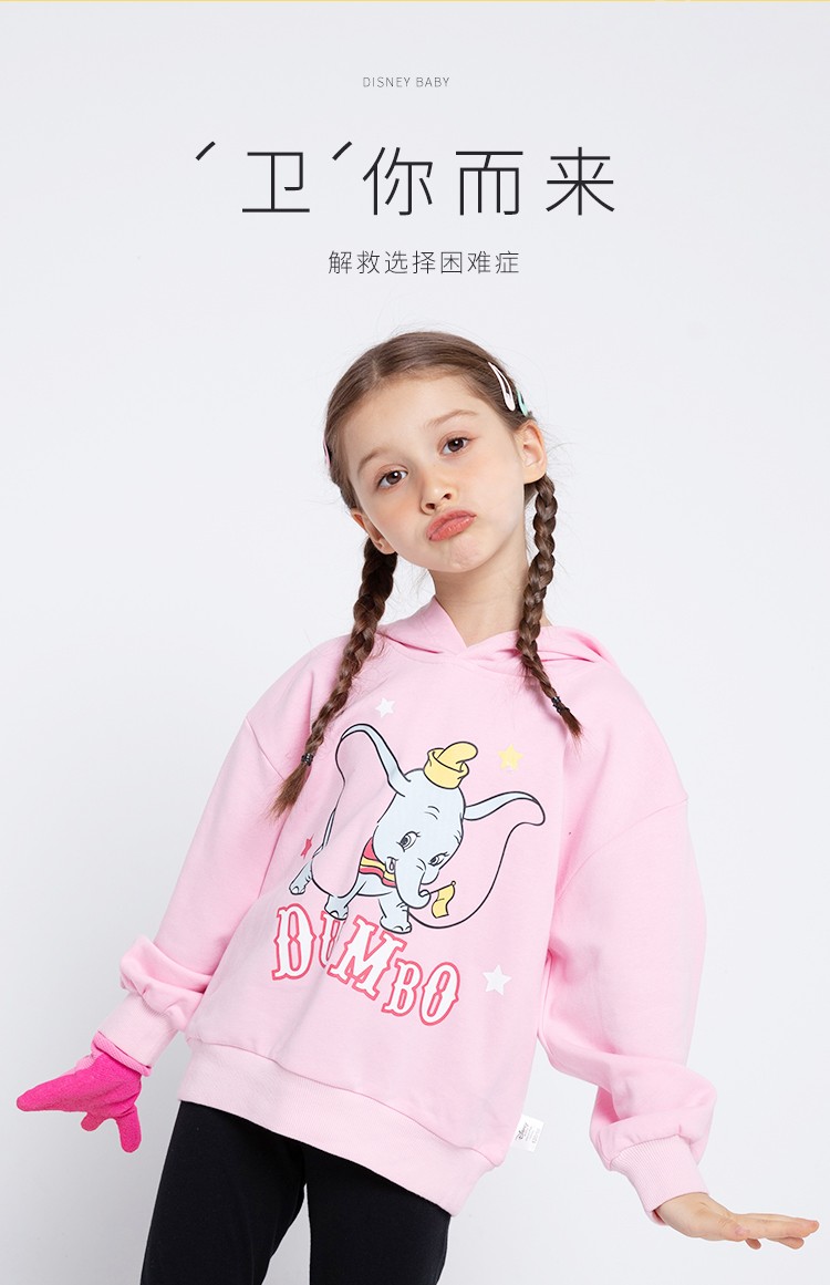 迪士尼童装女童卫衣欢乐米妮小飞象系列连帽套头卫衣柔软舒适春新品