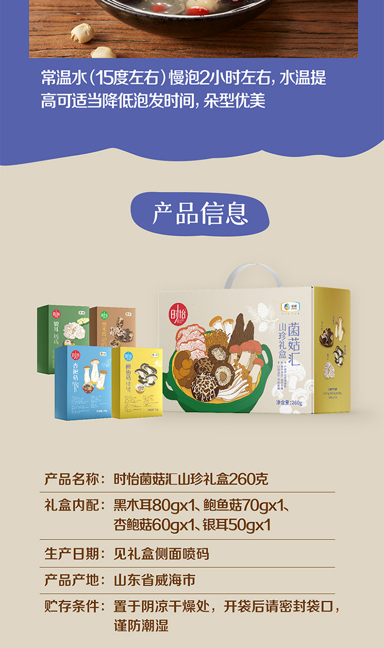 中粮时怡菌菇汇山珍礼盒  脆滑爽口 菌肉肥厚 260g 商品图2
