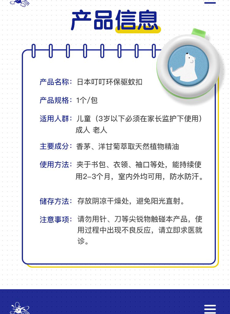 【“隐形蚊帐”随身防蚊驱蚊】 日本叮叮环保驱蚊扣 婴幼儿童成人随身户外防蚊扣
