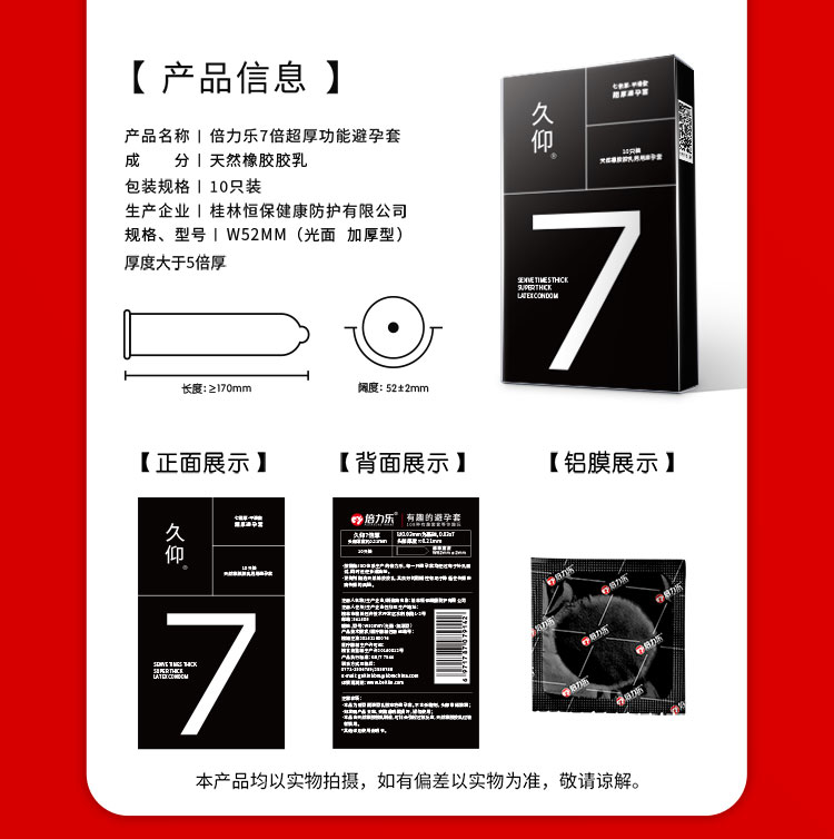 倍力乐避孕套物理延时男用超厚安全套加厚套官方旗舰店正品7倍厚
