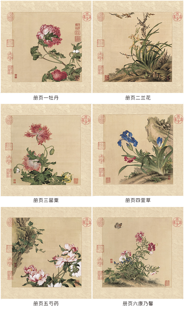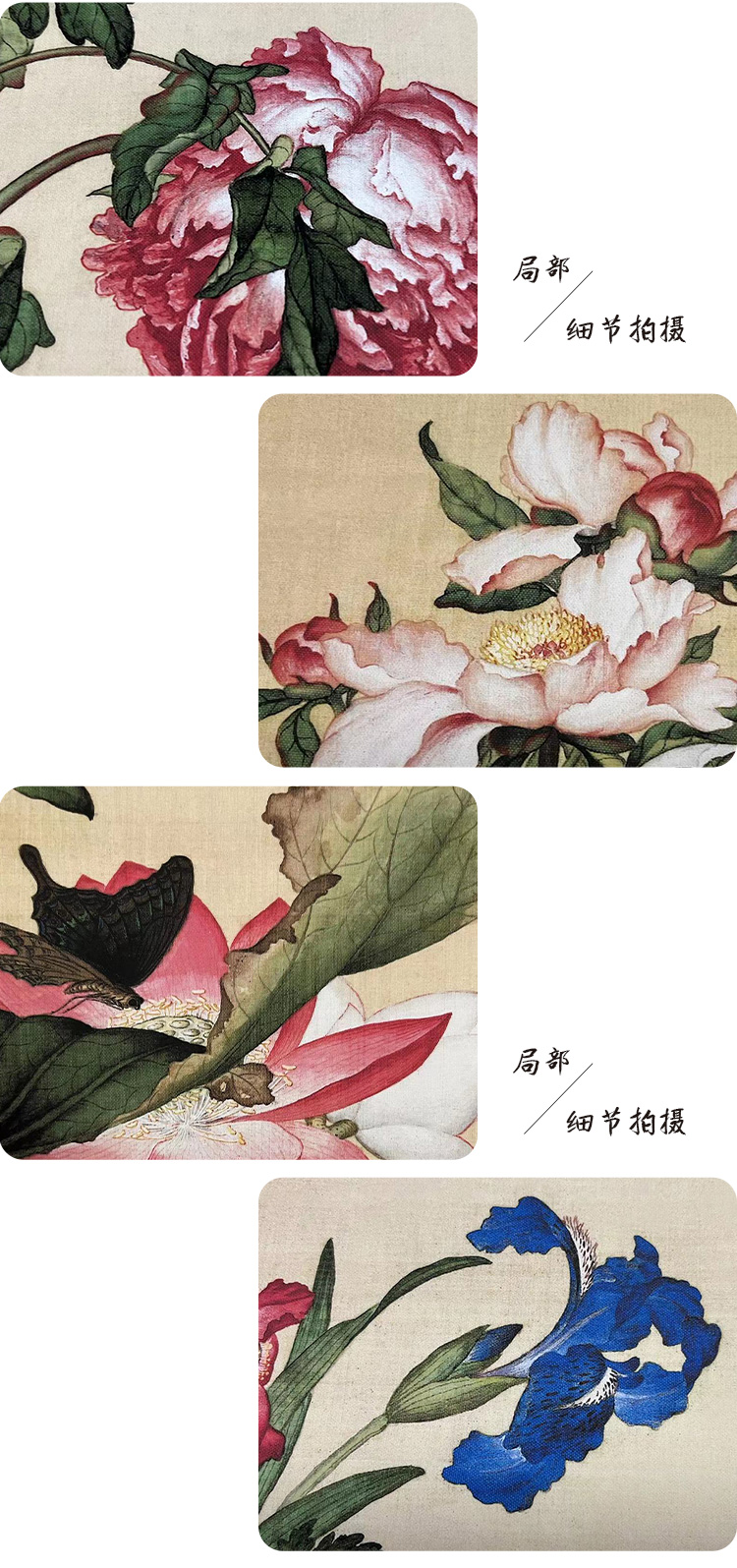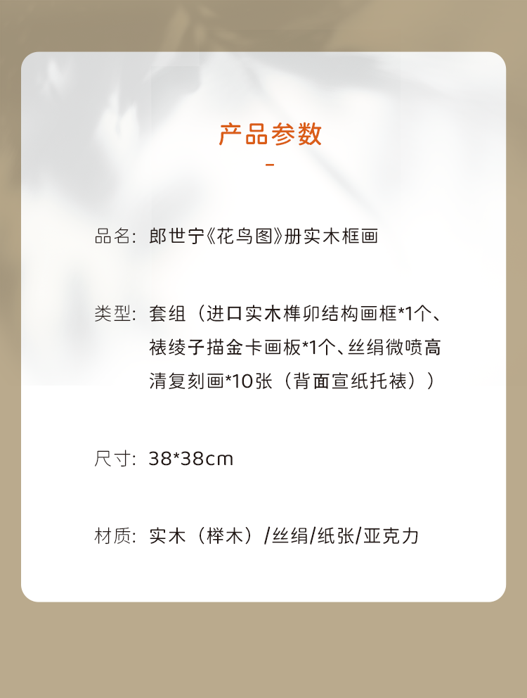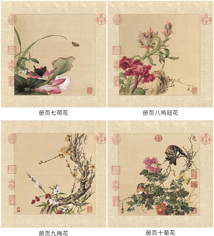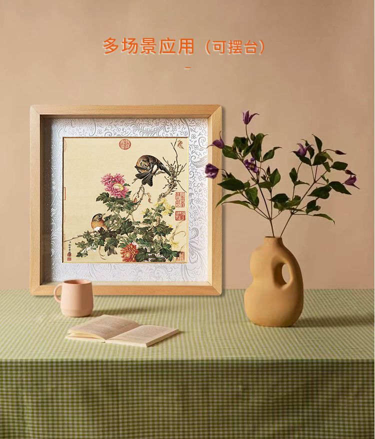 郎世宁花鸟册实木框画 新中式古风客厅卧室装饰画书房挂画