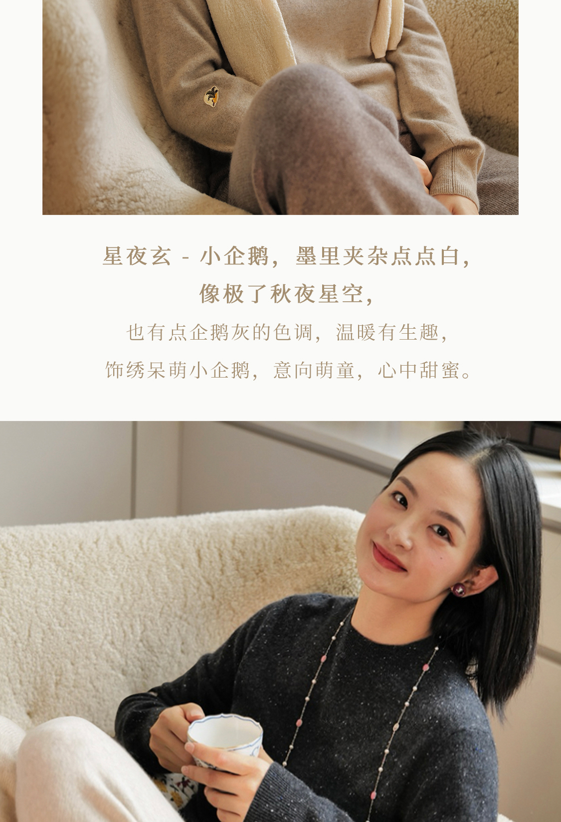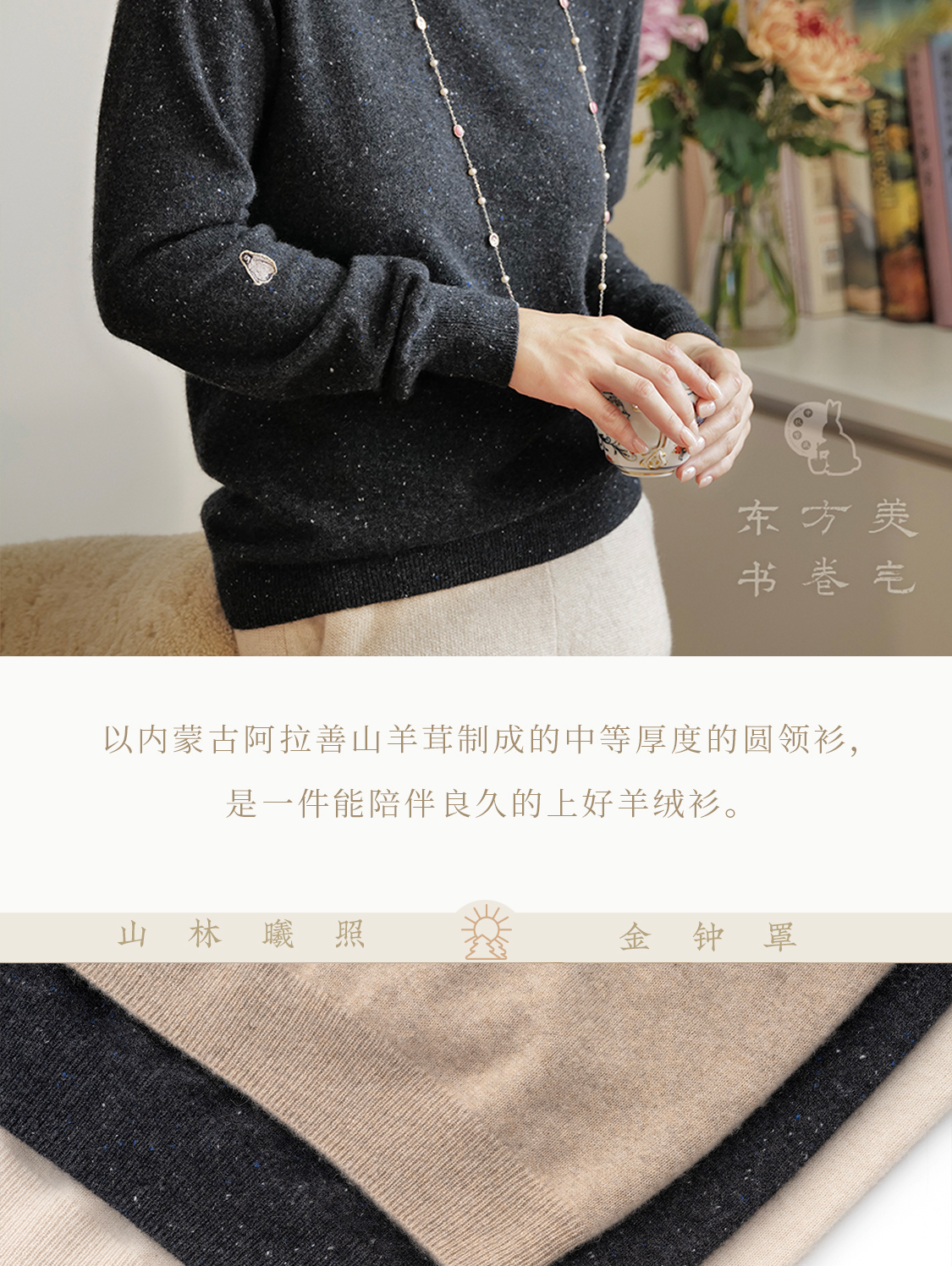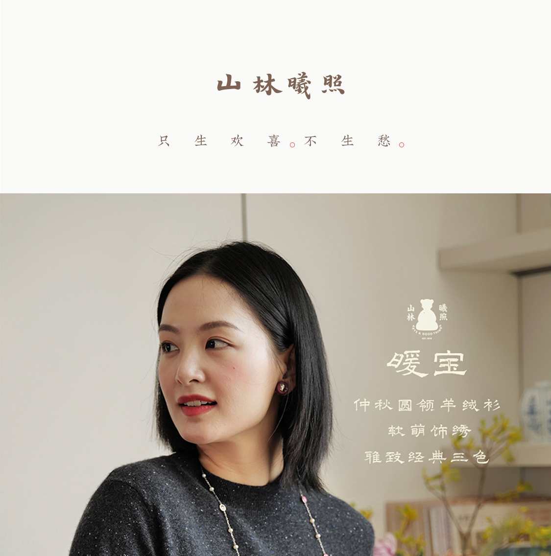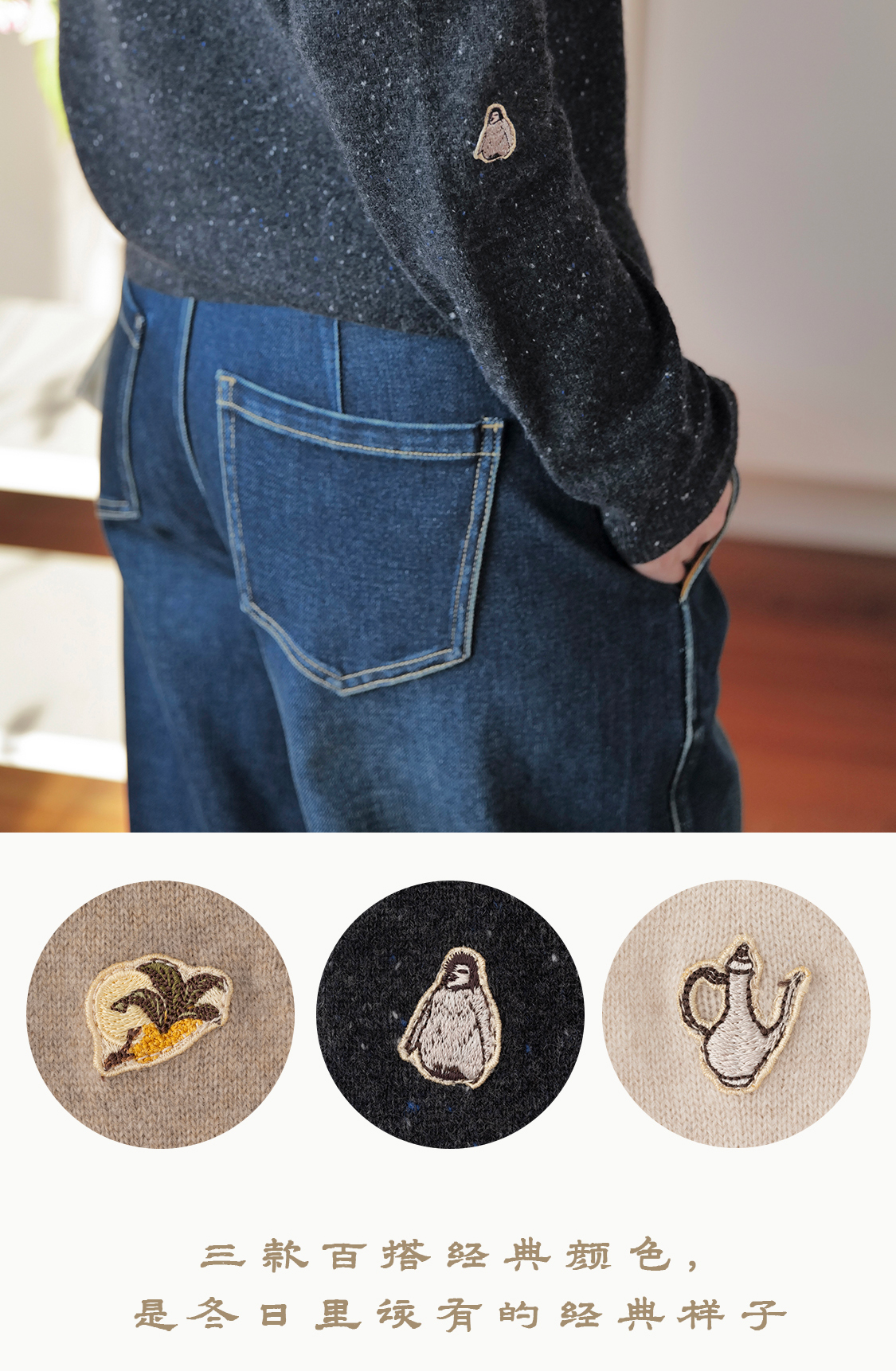 暖宝 仲秋圆领羊绒衫 软萌饰绣 雅致经典三色 山林曦照