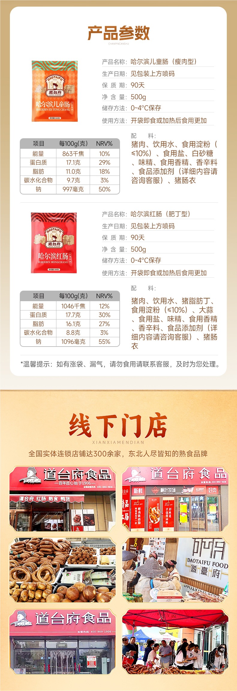 道台府正宗哈尔滨红肠官方旗舰店儿童肠东北特产火腿香肠