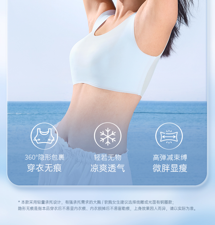 [无痕凉感杯]软支撑文胸无痕背心无钢圈胸罩大胸显小内衣女