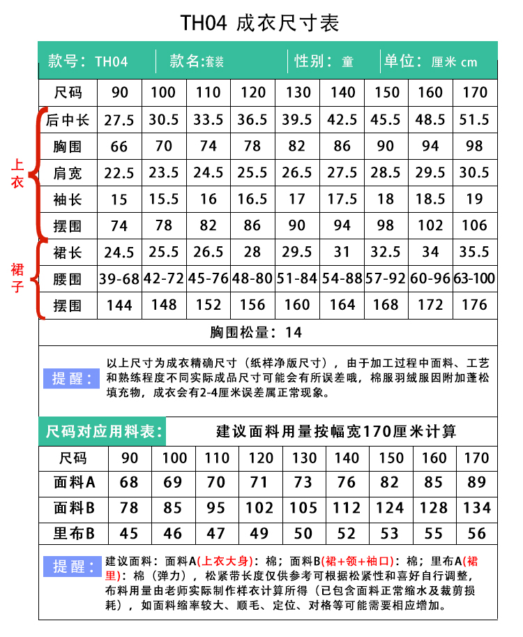 裁缝学苑TH04学院风泡泡袖短袖小衫纸样半身裙套装打版裁剪
