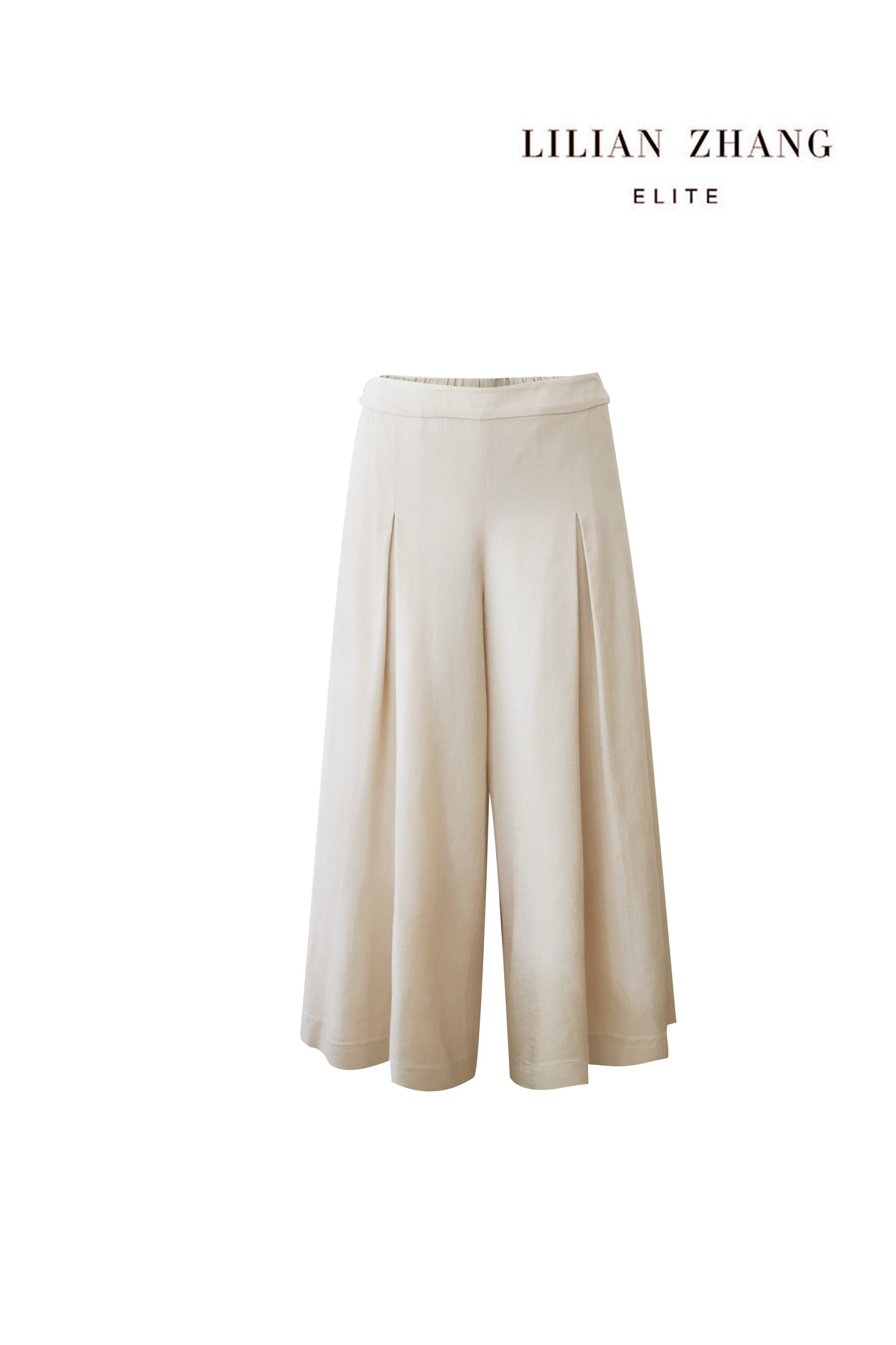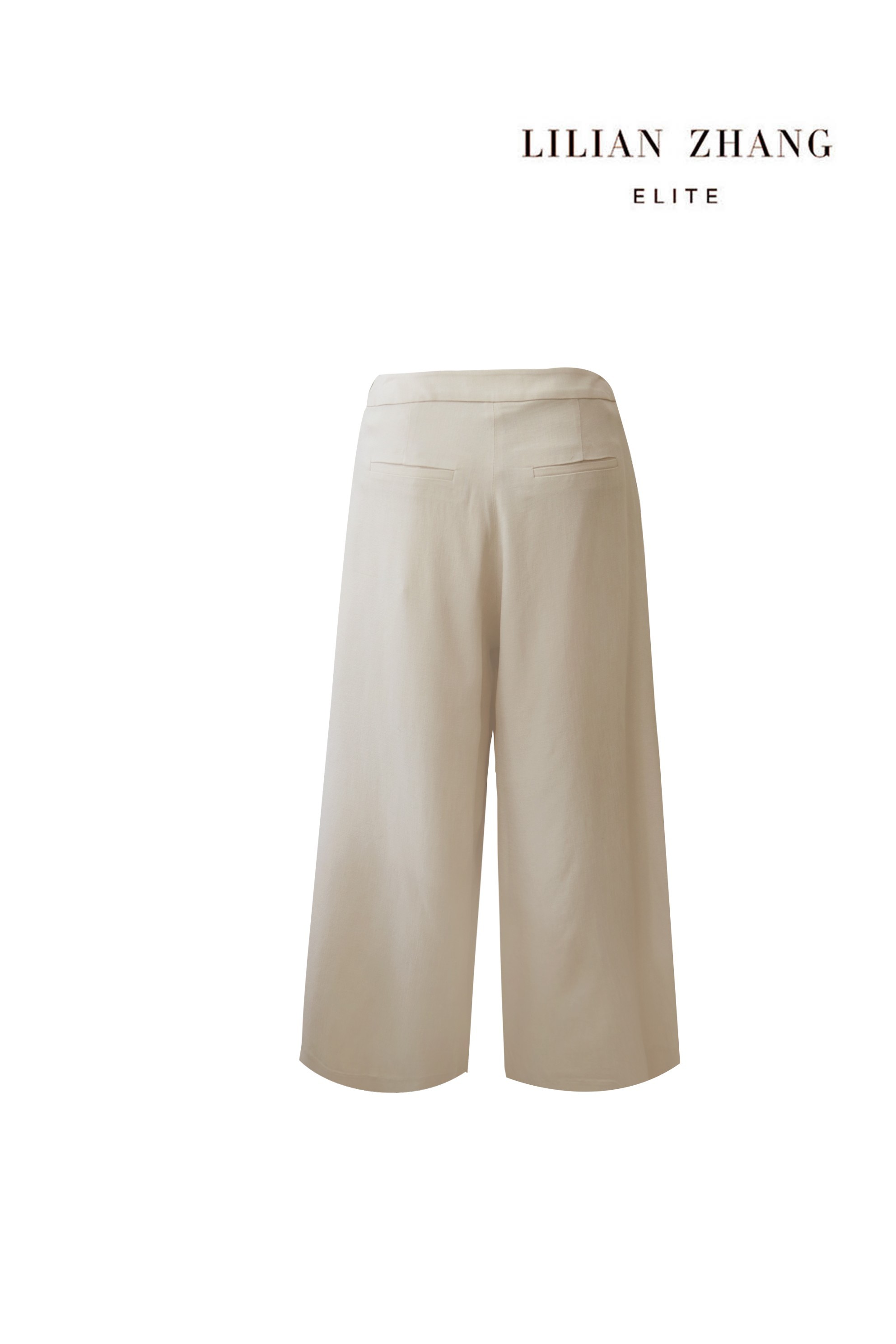 亚麻感九分阔腿裤--显瘦时尚宽松通勤气质休闲女士九分裤 2104017
