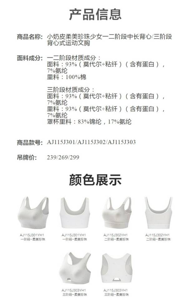 【春上新】8楼爱慕儿童Aimer Kids少女小奶皮柔美珍珠二阶段中长背心AJ115J302,吊牌价269元