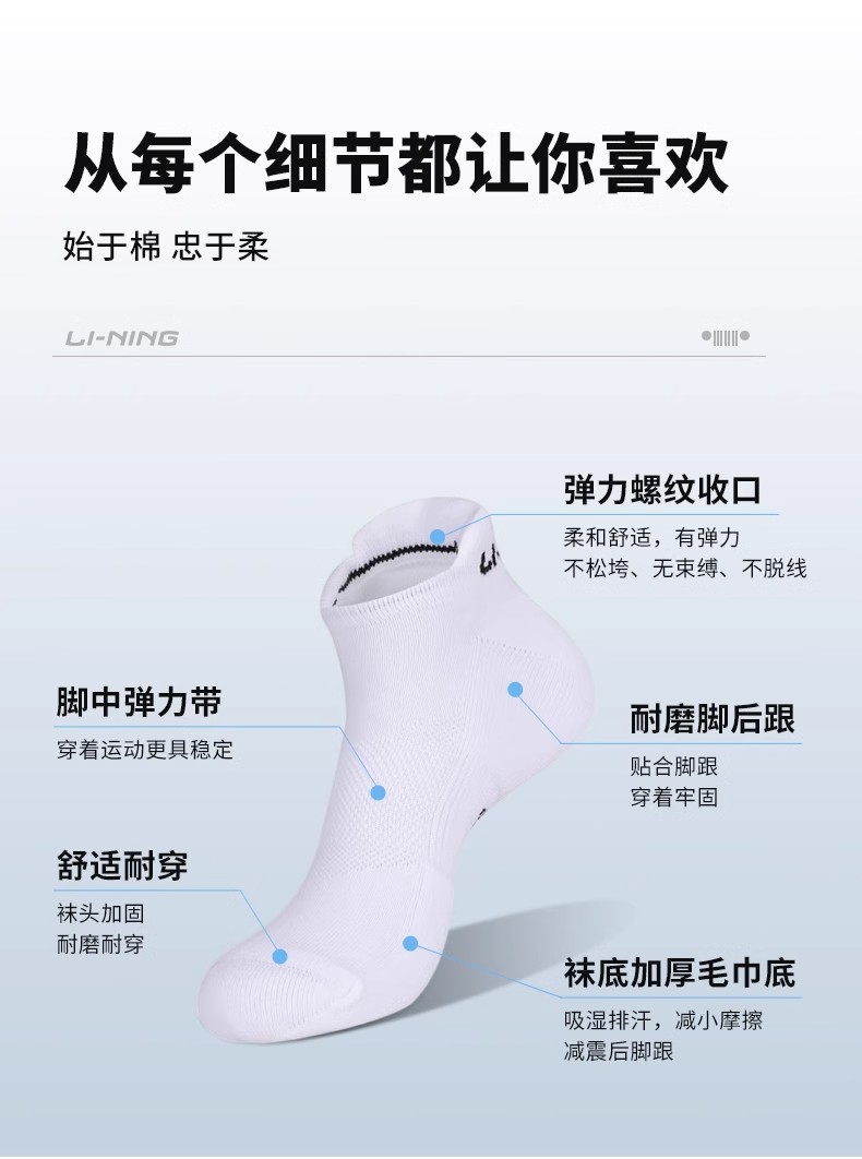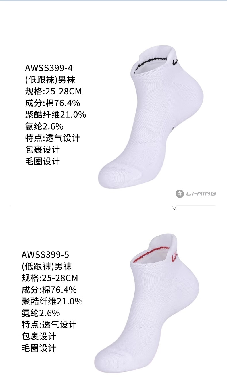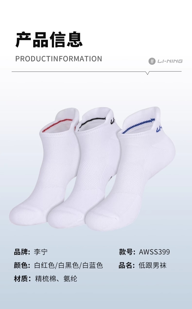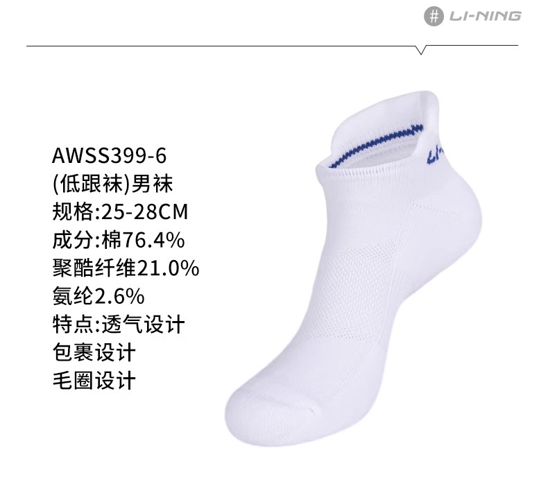 李宁 男款羽毛球袜加厚毛巾底运动袜 AWSS399