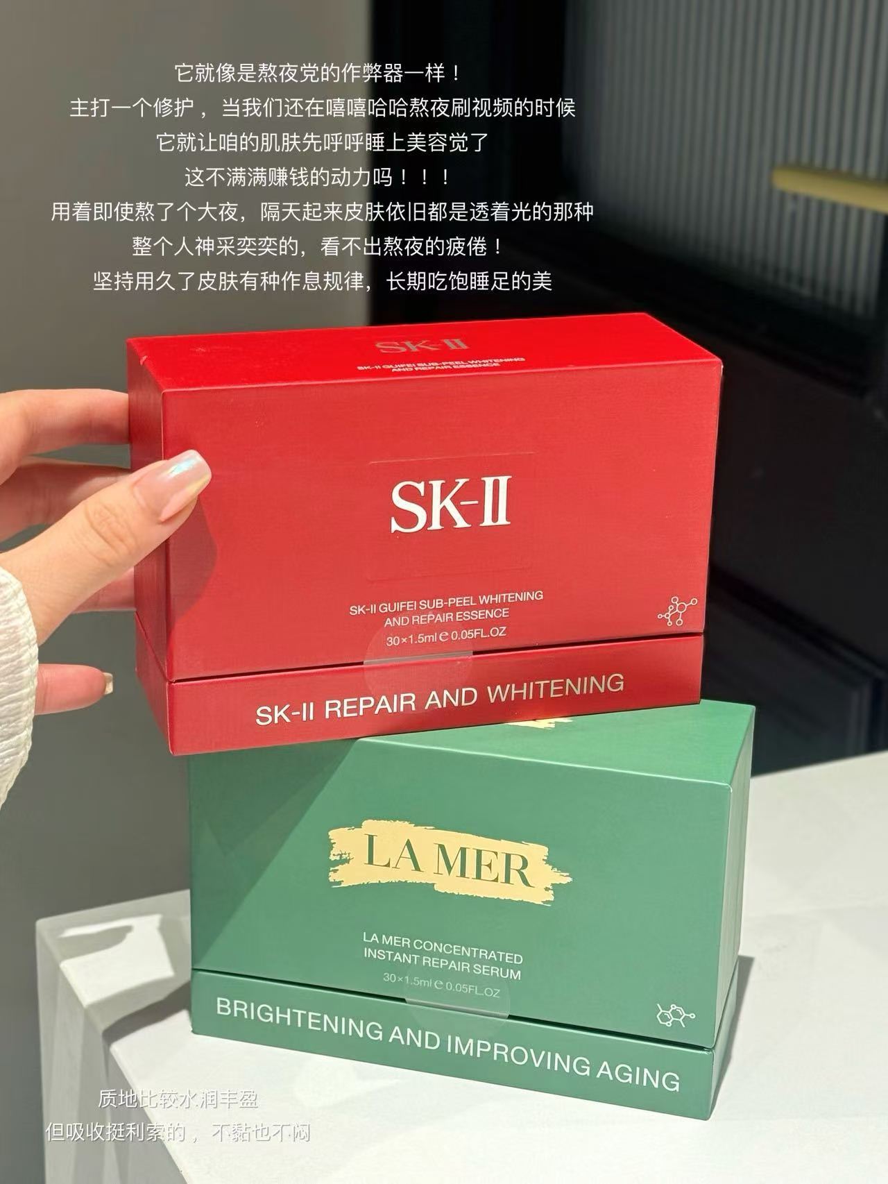 适合熬夜脸、皮肤松弛、暗沉,配方以抗衰老、修复、提亮为核心。