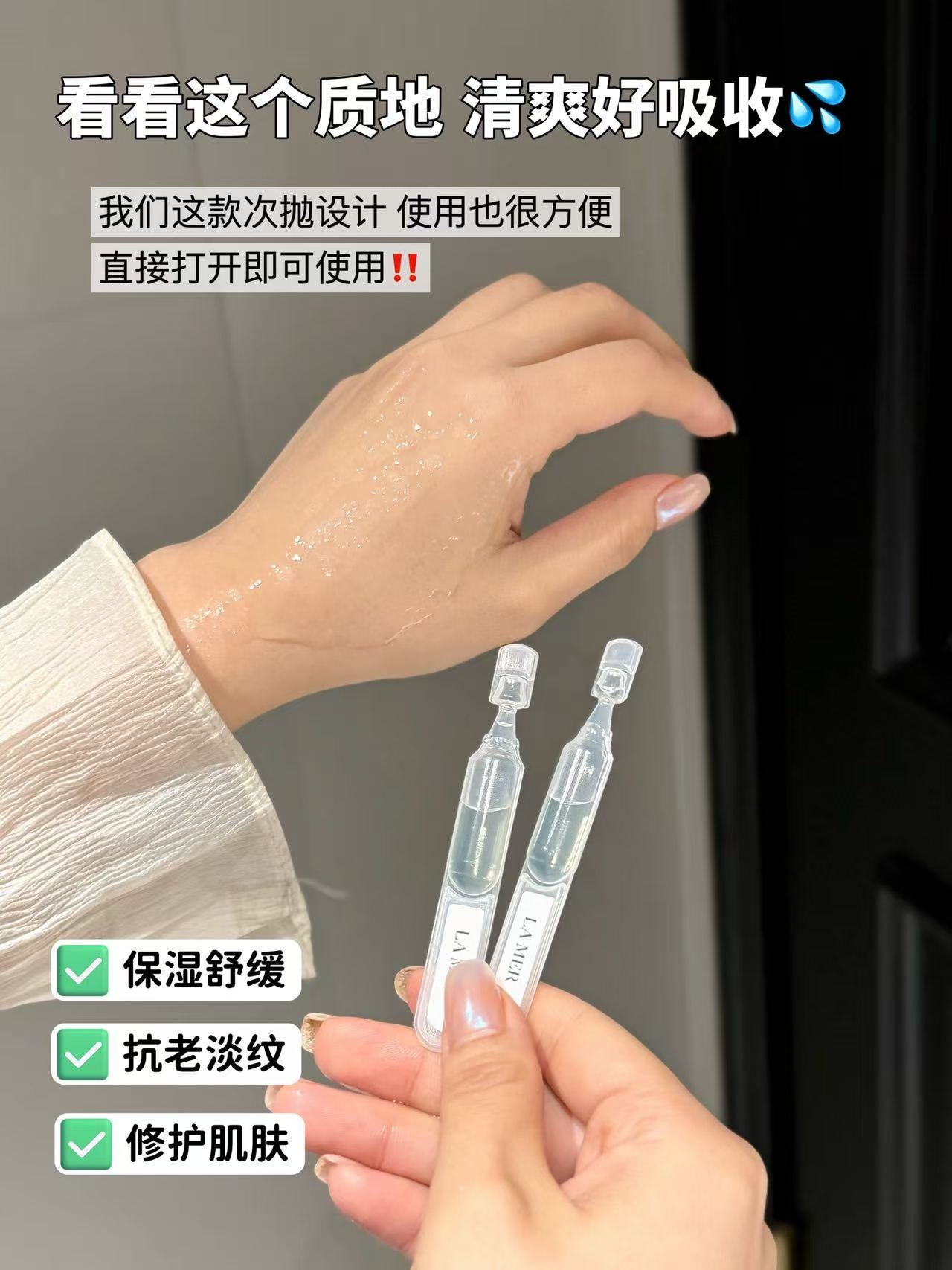 有效针对法令纹、细纹、胶原流失、干瘪松弛、屏障受损、脆弱泛红、熬夜垮脸 修护强韧屏障,刺激细胞新生,促进胶原蛋白合成,唤醒新肌活力,肌肤水润嘭弹。