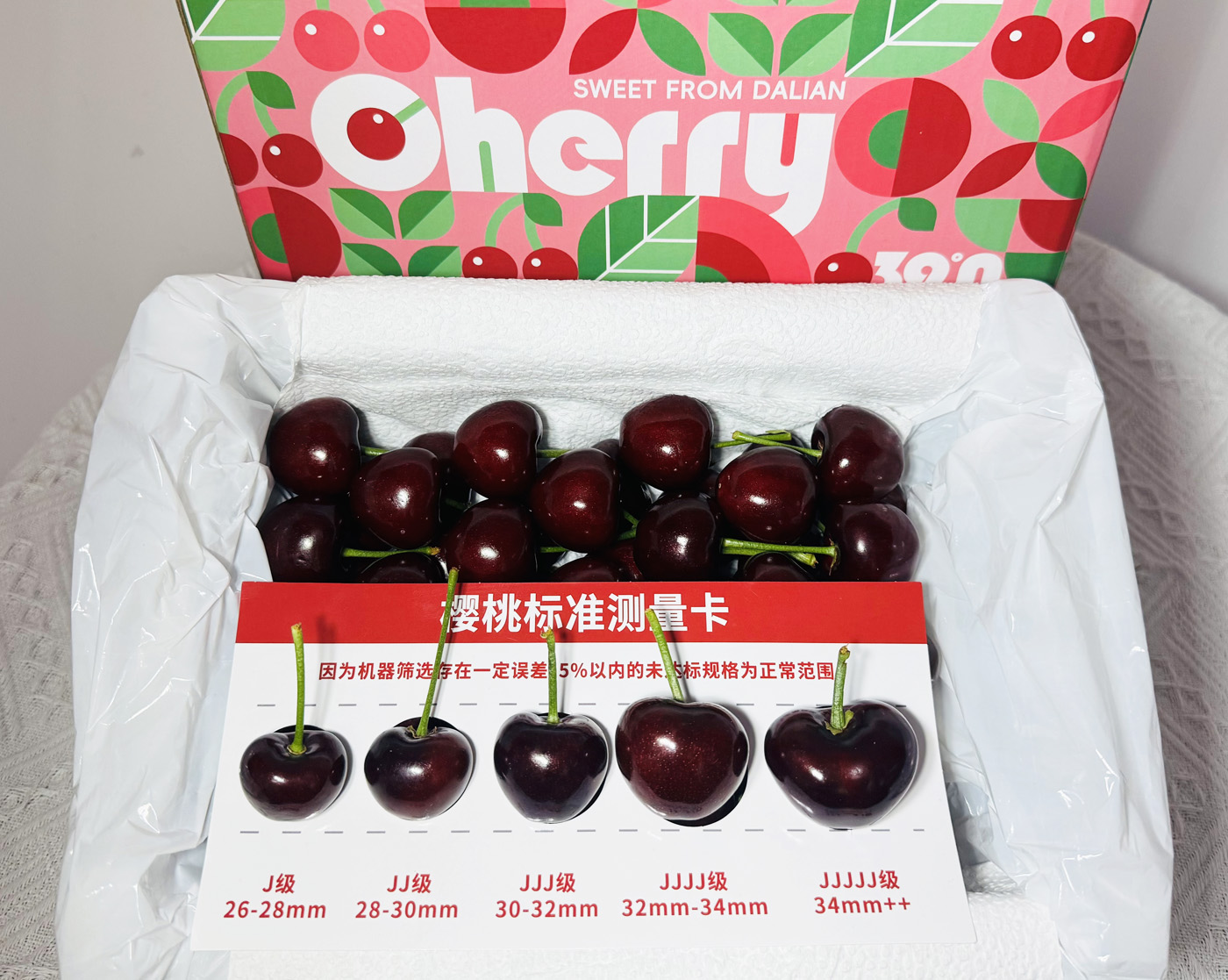 | 售后标准 | 生鲜产品不支持无理由退换,一经发出无法拦截、拒收。 可能会有±50g克差,水分流失,属于正常范围 【储存方法】:签收后第一时间打开包装,可以冰箱冷藏0°保鲜,但尽快食用口感更佳。 签收后第一时间打开包装,冷藏2-4小时甜度脆度会提升 1.产品有质量问题,请在收到产品的8小时内拍照快递面单+坏果照片发至客服,进行售后,没有照片,没有面单,不赔付! 2.樱桃属生鲜水果,拒绝拦截、拒绝拒收,拒绝退货,拒收不赔! 3.口感问题属个人差异化,不予理赔! 4.放置代收点,蜂巢不取,坏果不赔!坏果按比例赔付,超过10颗,每颗0.5元,超过7成坏果,安排补发整箱或者全额退款‼ |