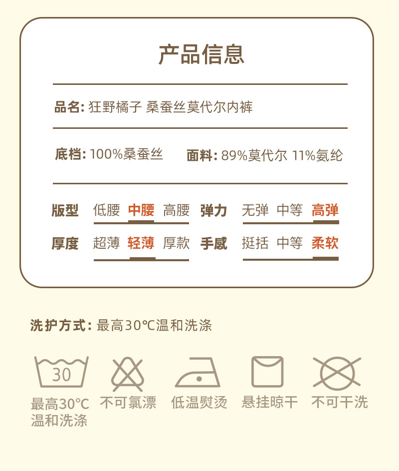 【16cm加长桑蚕丝底裆】狂野橘子桑蚕丝内裤 盒装6条