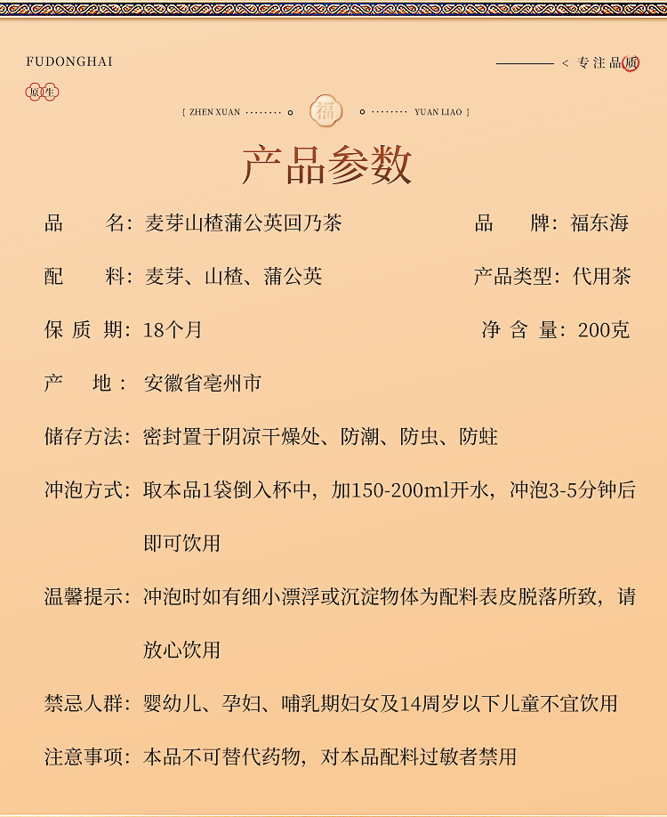 福东海 麦芽山楂蒲公英200克 草本植物大份量回乃奶宝大麦茶
