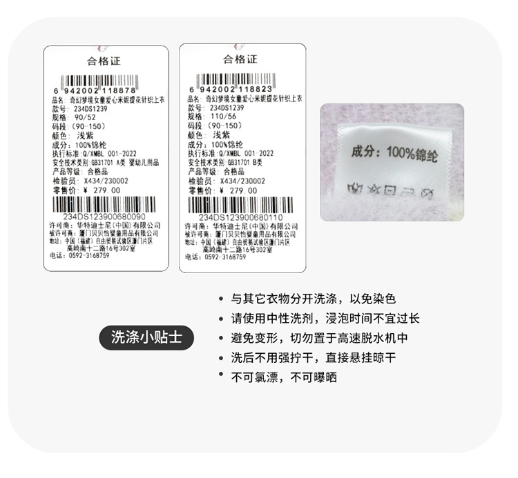 【商城同款】迪士尼女童针织套头上衣234DS1239