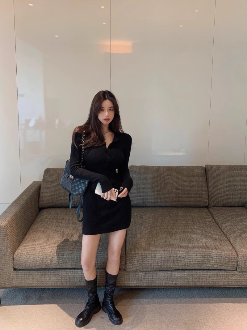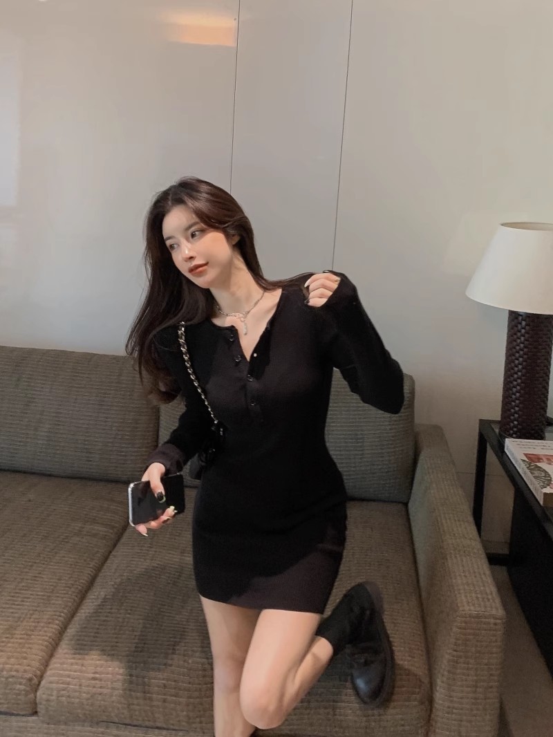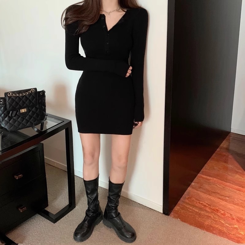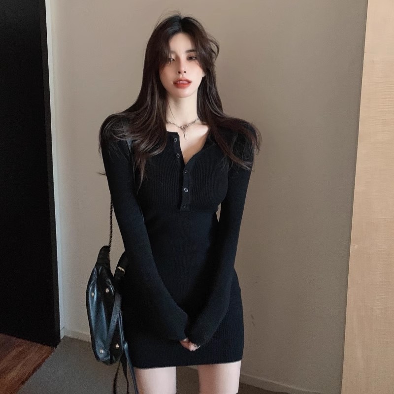 2025新款春秋季【针织连衣裙子 女纯欲性感裙】搭配大衣内搭 早春装包臀裙