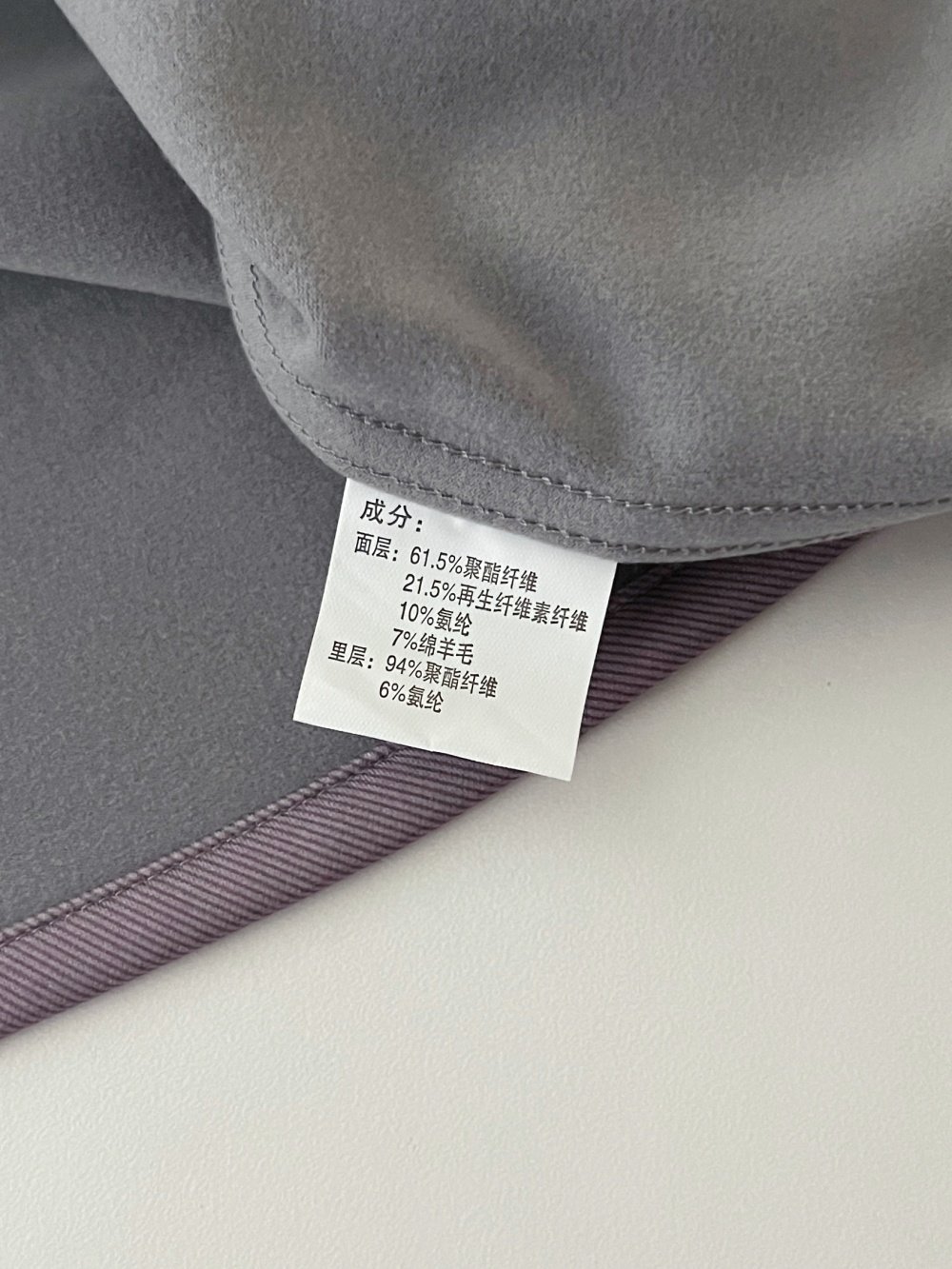 面层:61.5%聚酯纤维 21.5%再生纤维素纤维 10%氨纶 7%绵羊毛