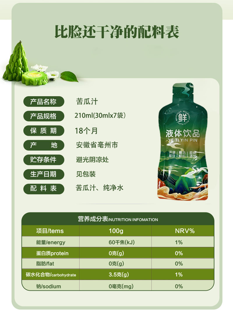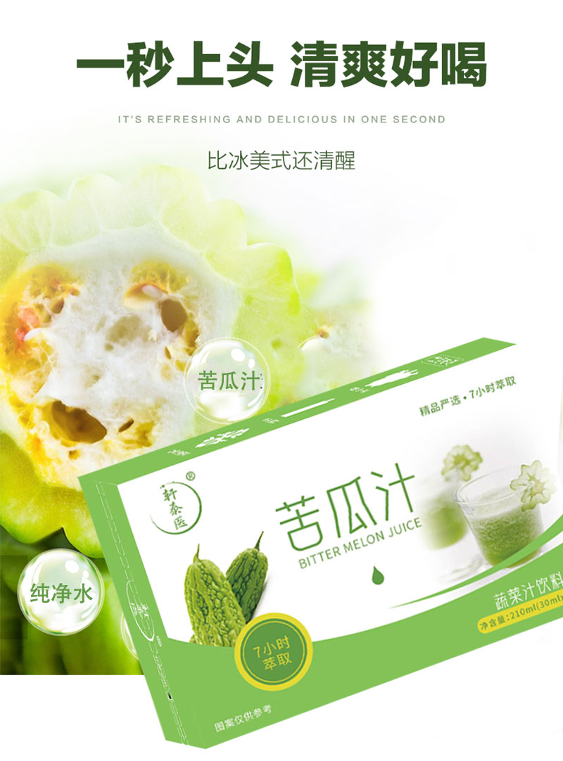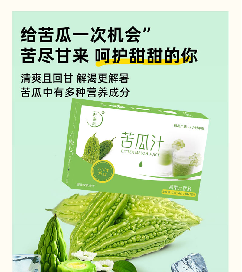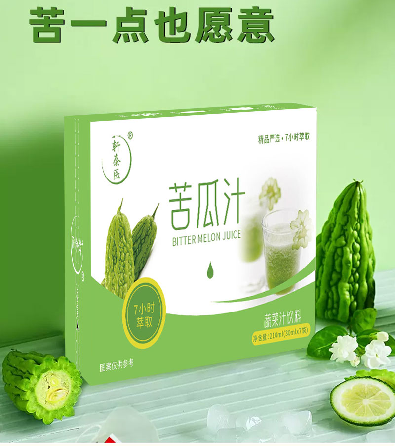 轩泰医苦瓜汁 纯苦瓜原料 7小时萃取 一盒7袋*30ml