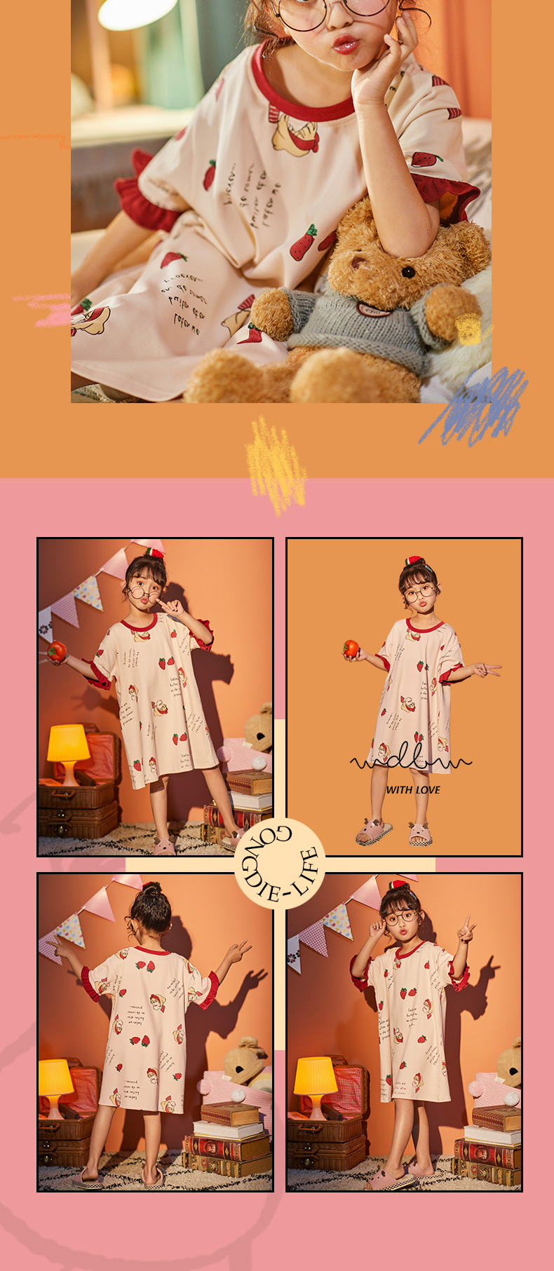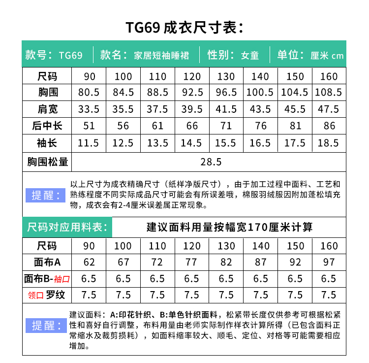 裁缝学苑TG69夏季儿童睡裙短袖女童家居服睡衣纸样图版型打版裁剪