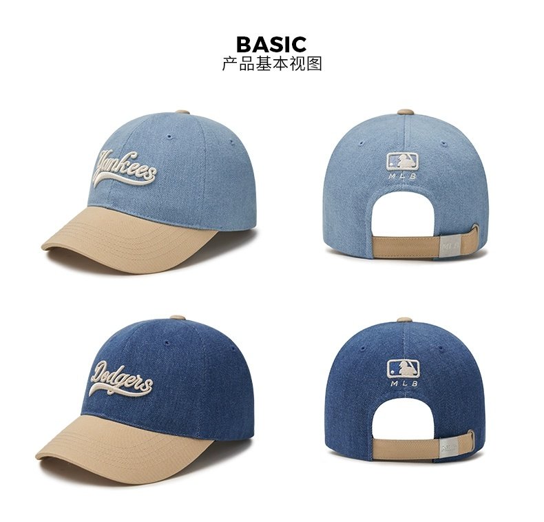【春上新】6楼MLB草书学院系列牛仔可调节撞色软顶棒球帽 吊牌价399元