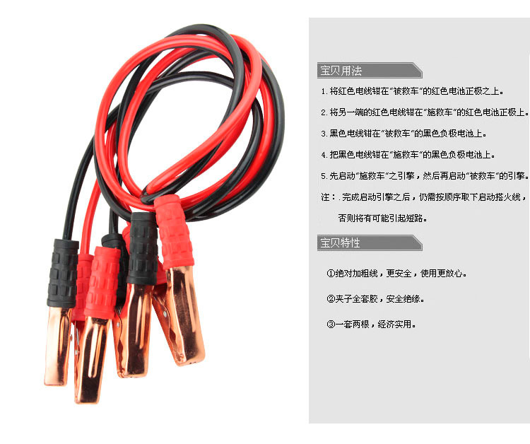 汽车电瓶线搭火线夹子搭车线电瓶接电打火连接线过江龙夹子搭电线