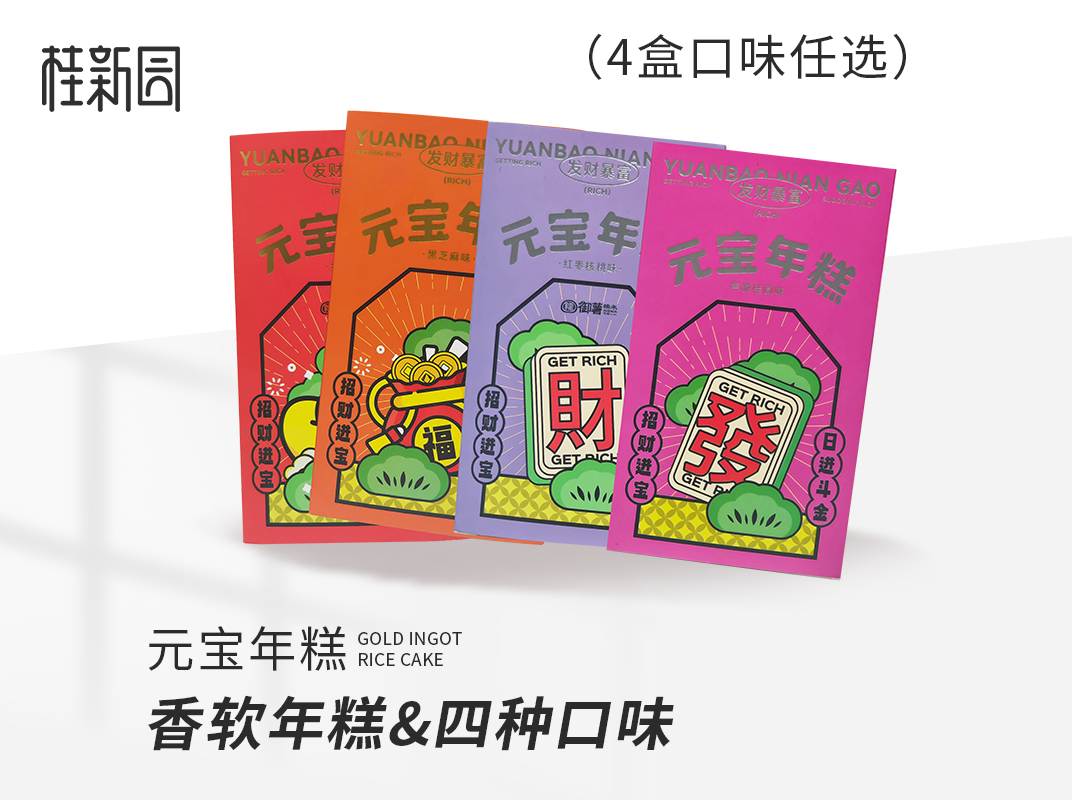 买2送2【元宝年糕任选4盒(红枣核桃味/黑芝麻味/焦糖桂圆味/红豆味)】新春新品口味