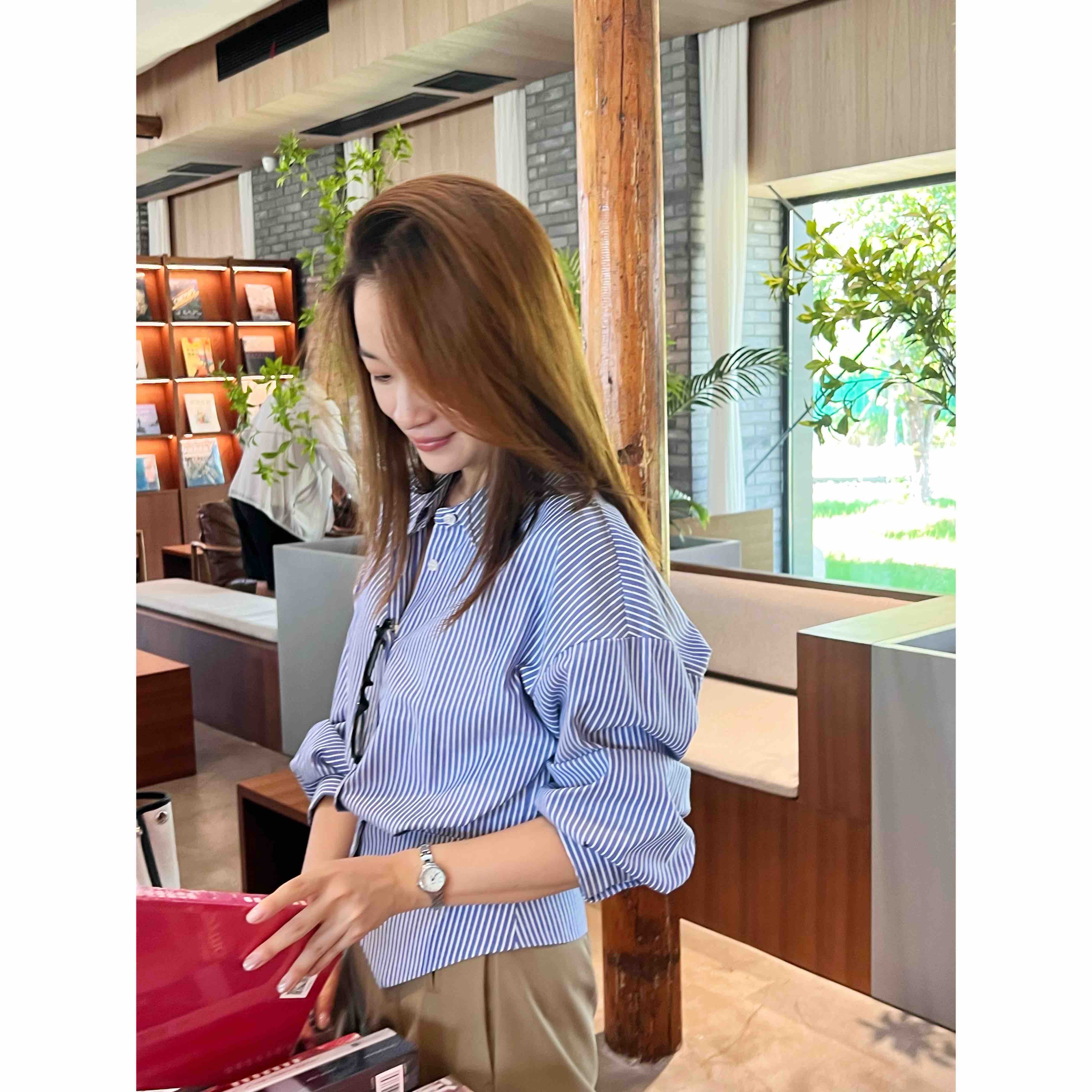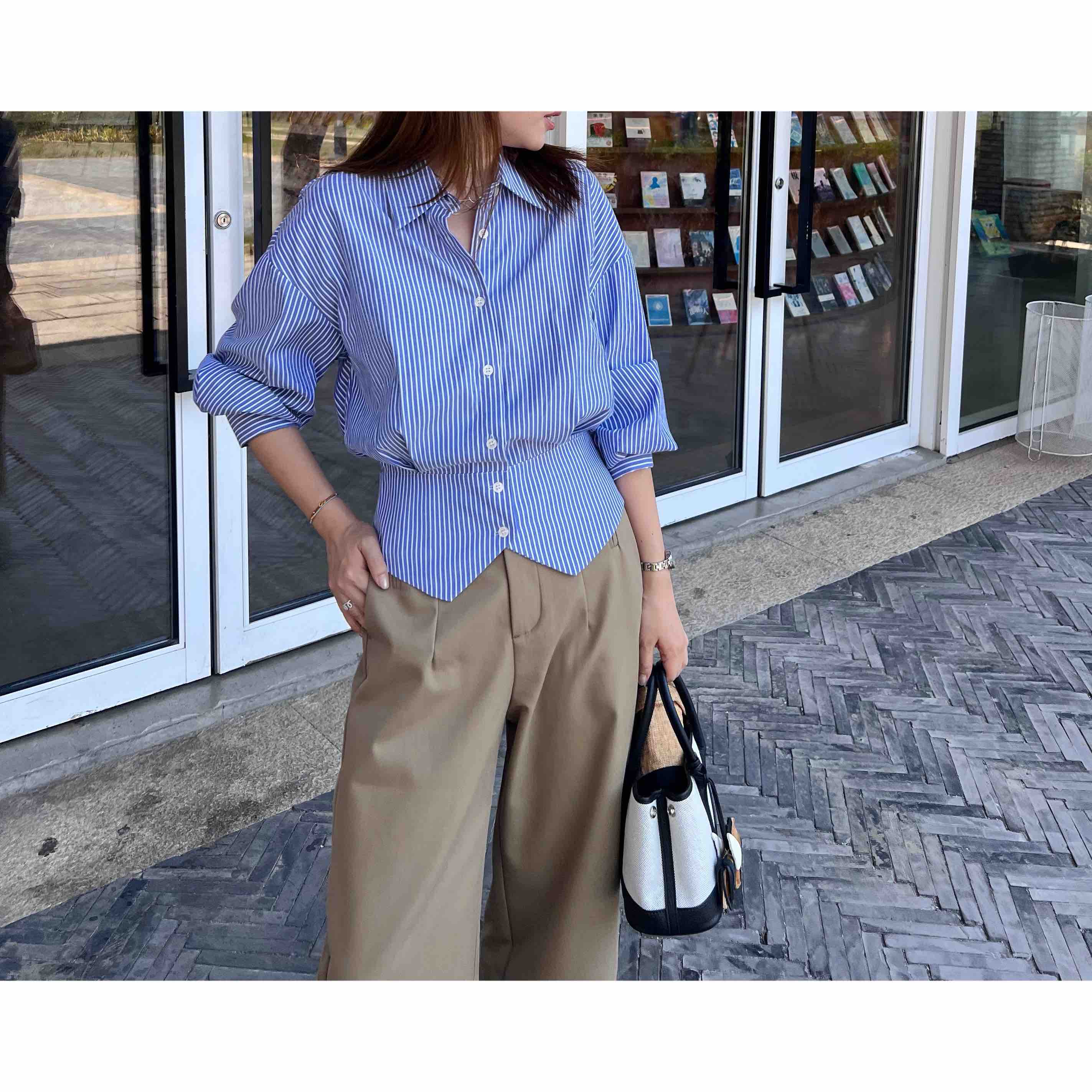 2508505 收腰 条纹长袖衬衫 色织棉衬衫