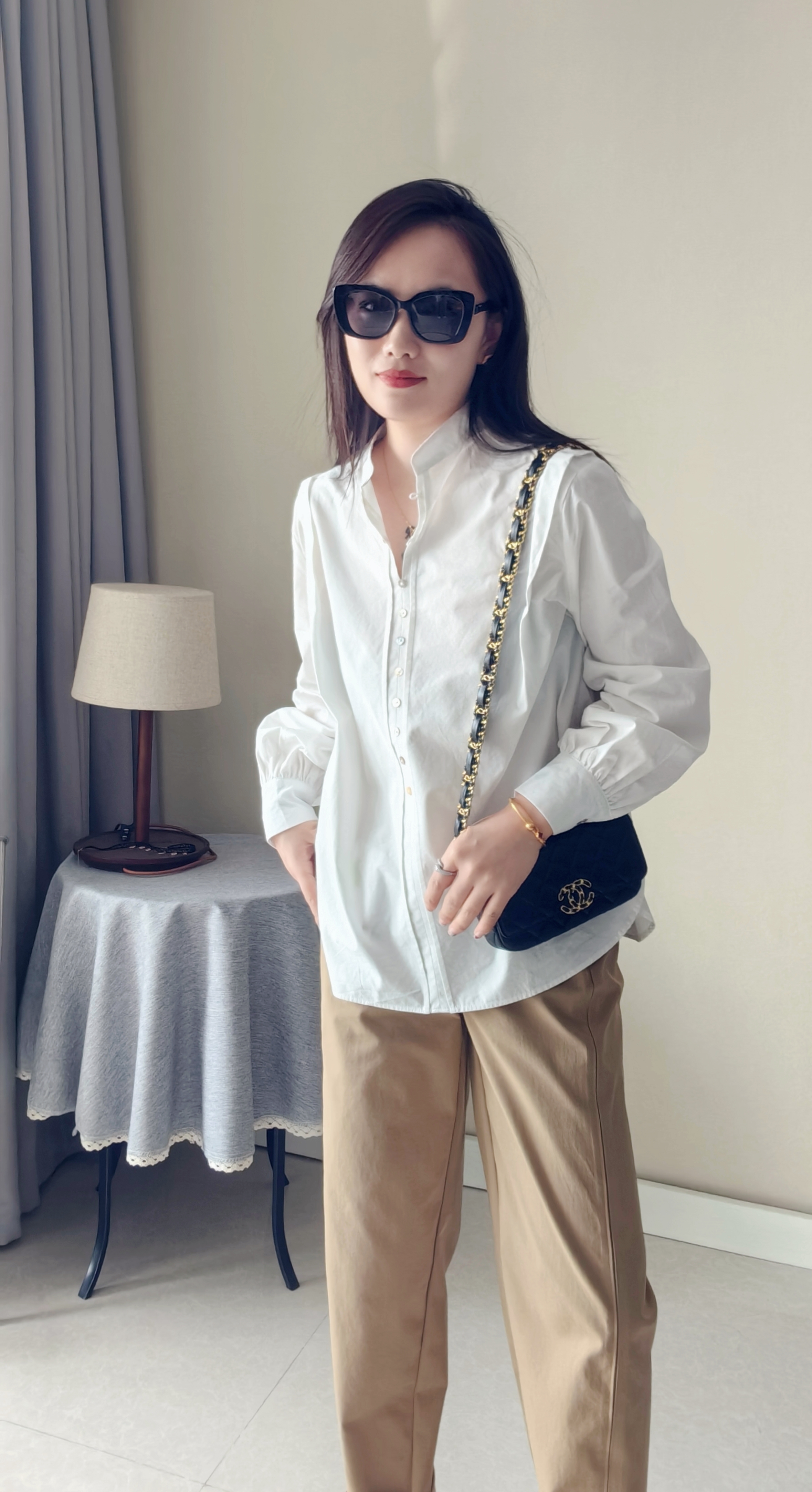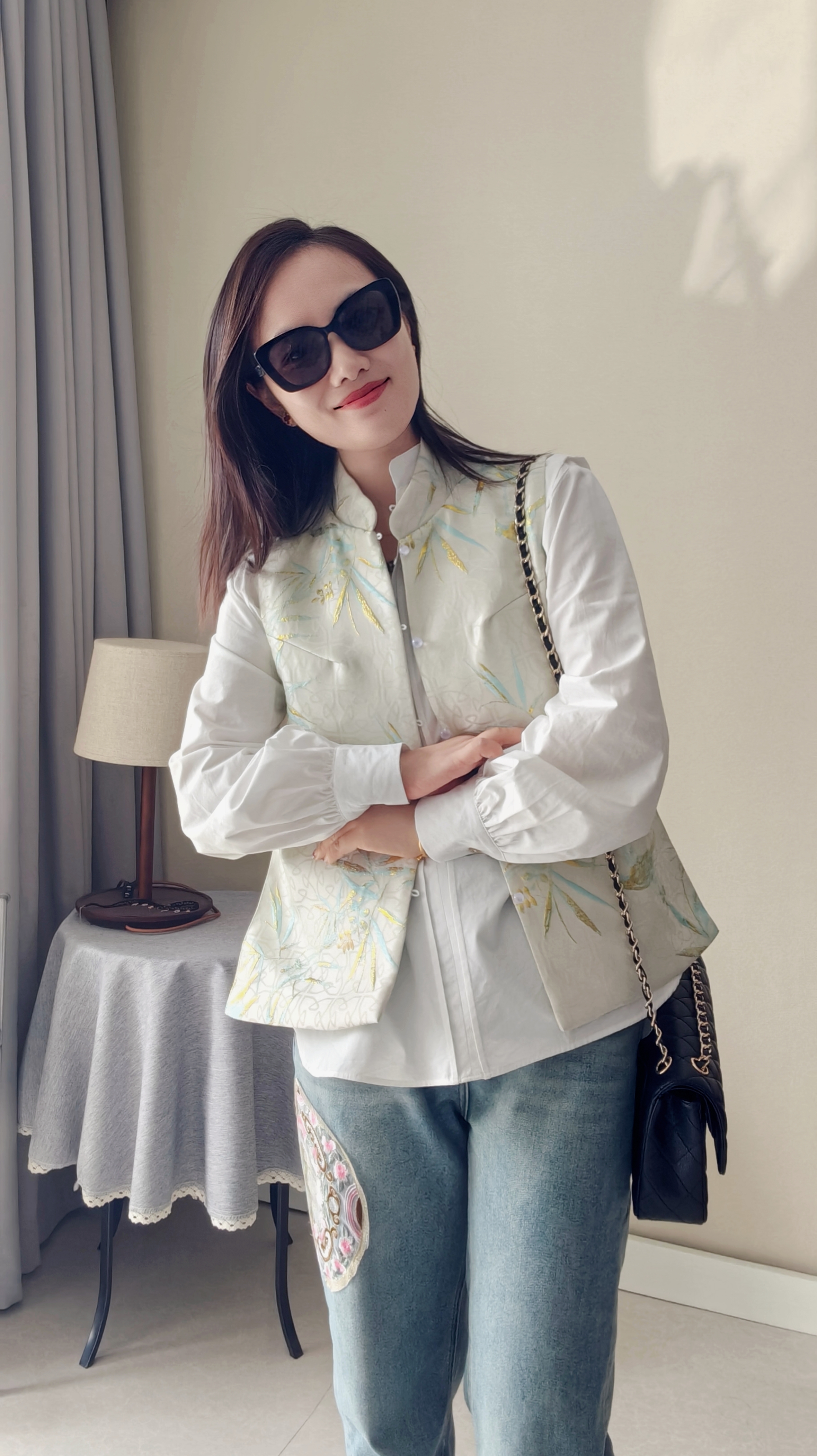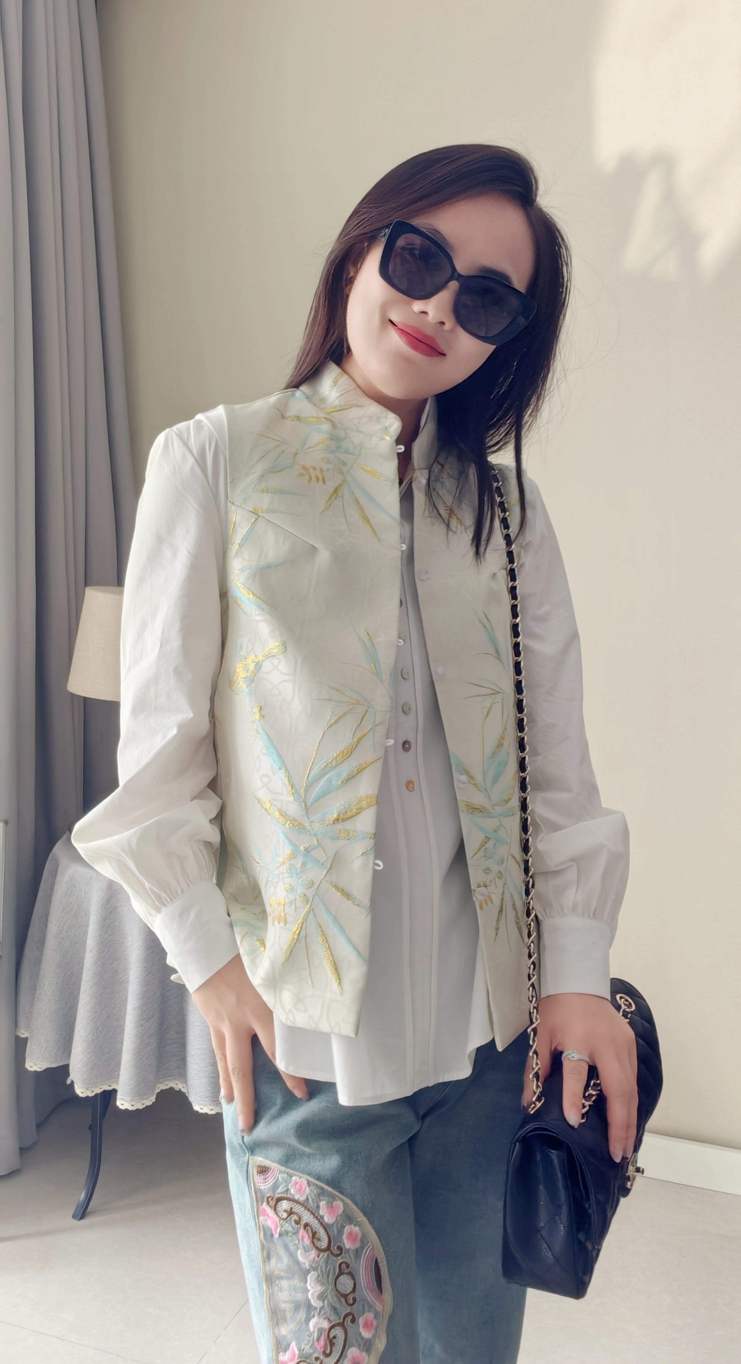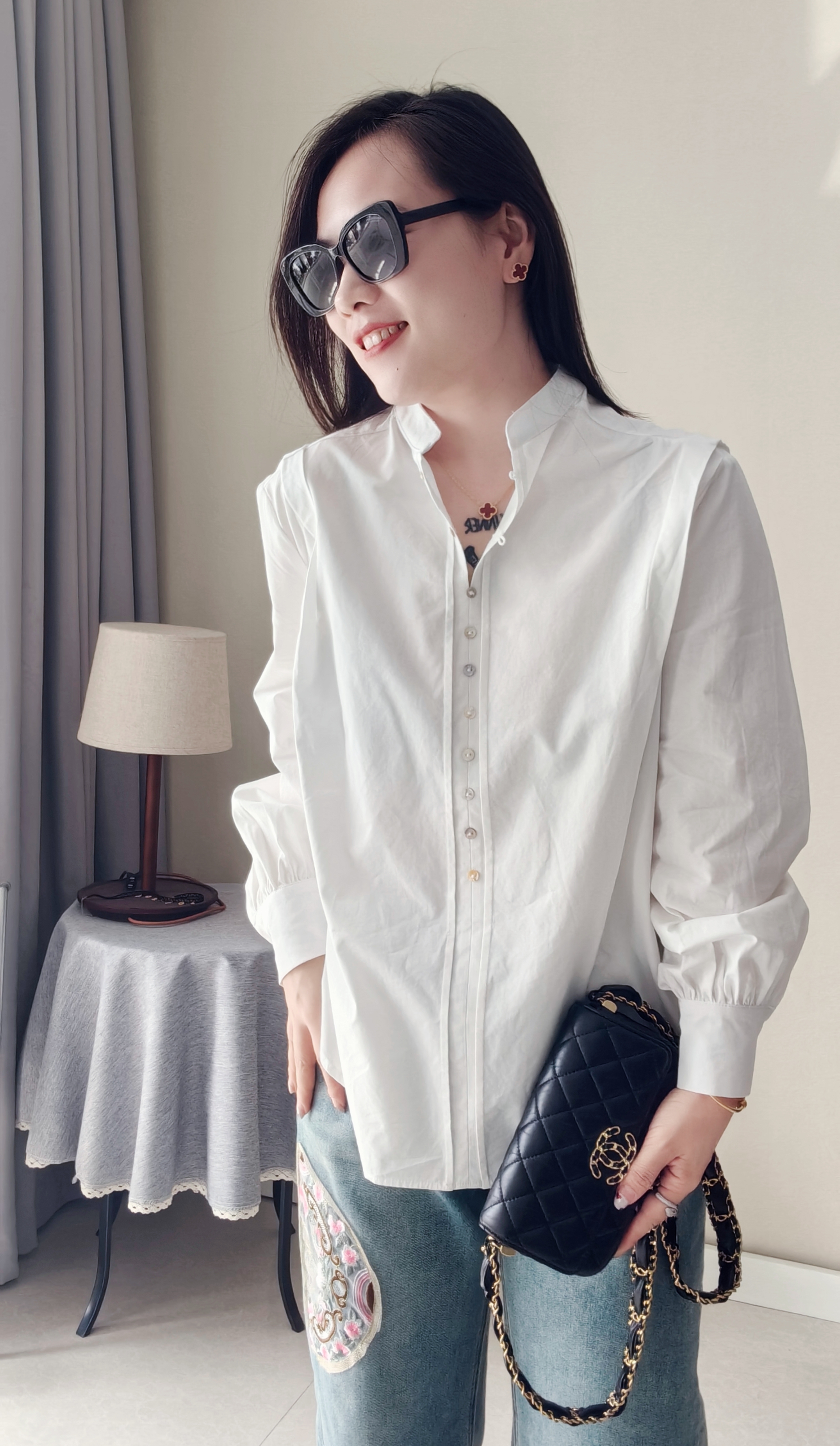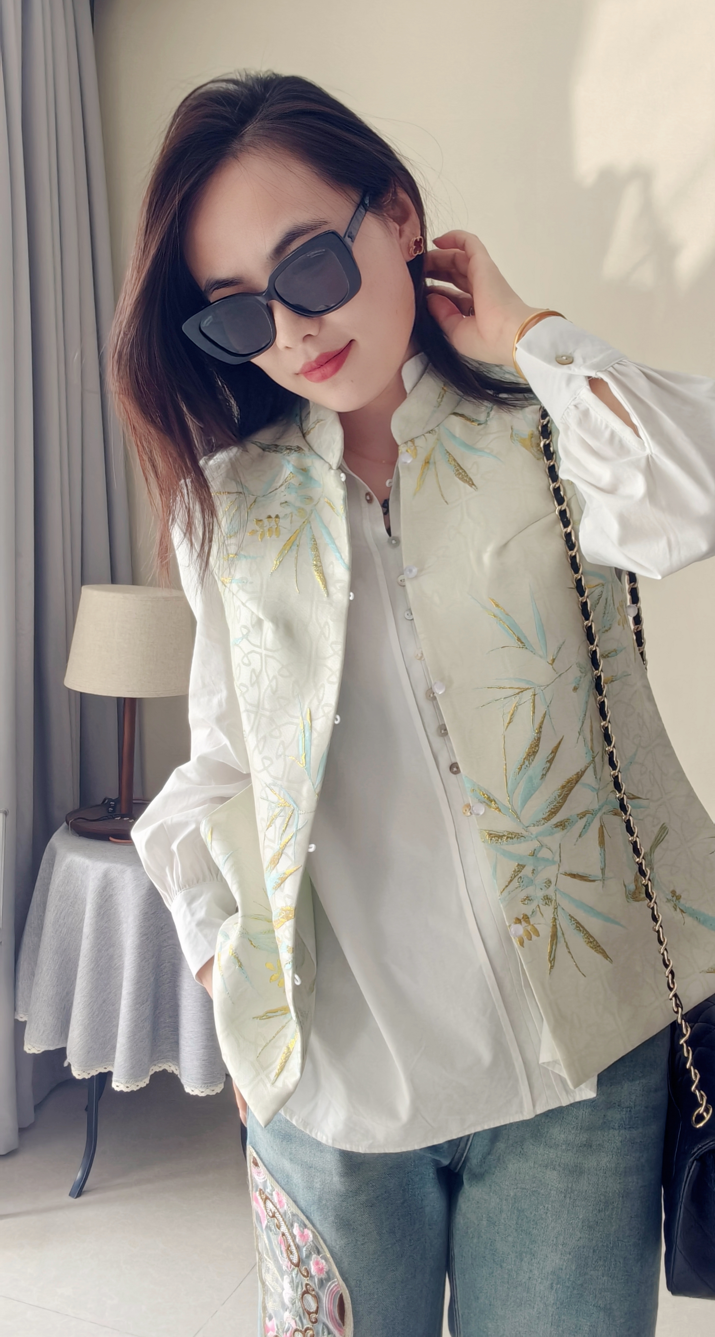纽扣门襟,纽扣颜色新颖,设计复古独特,春秋百搭炒棒单品~