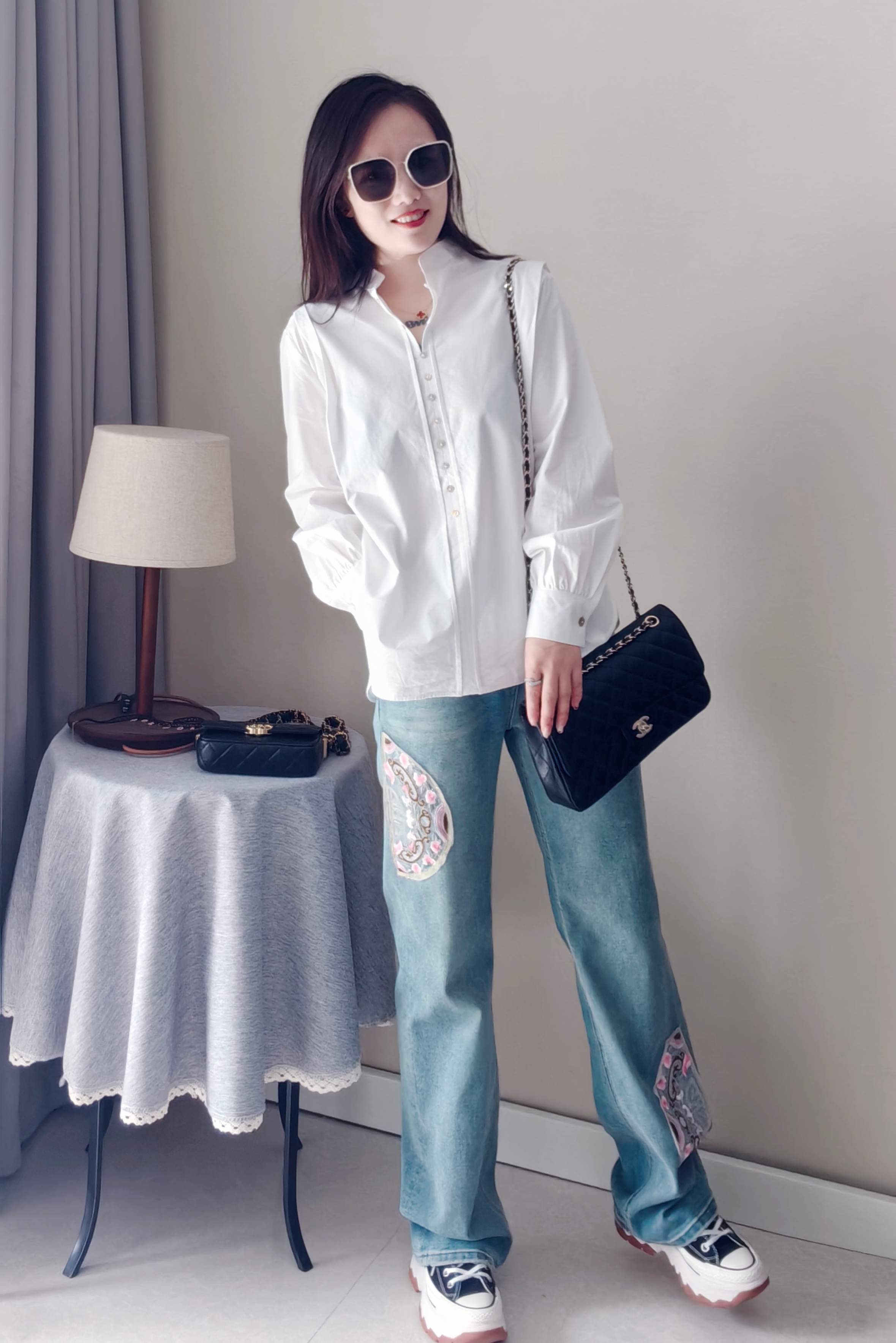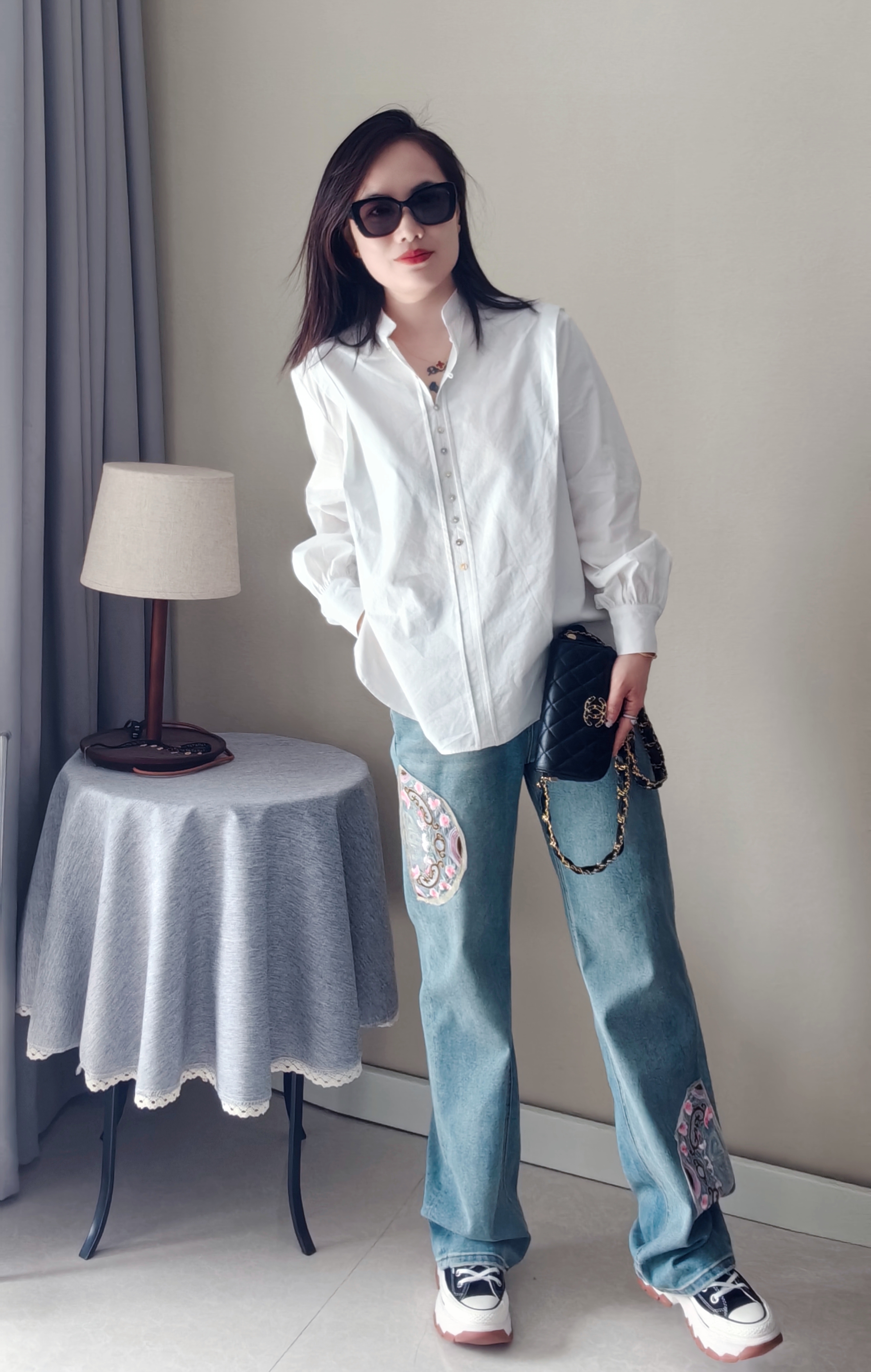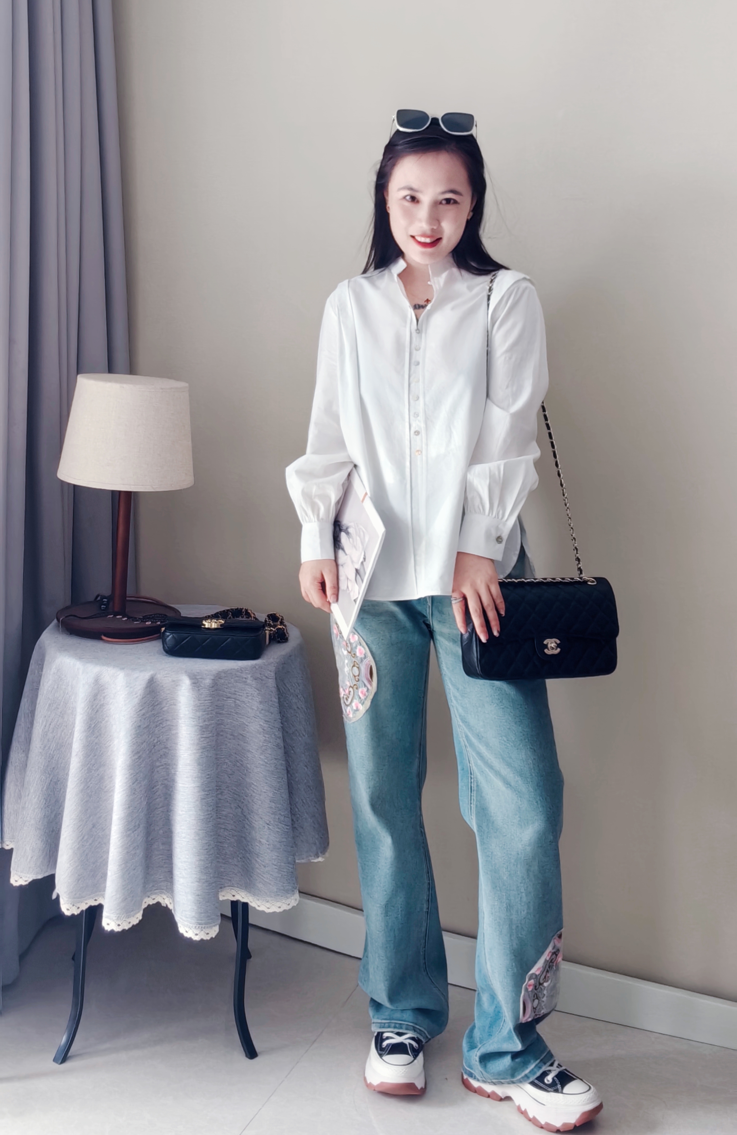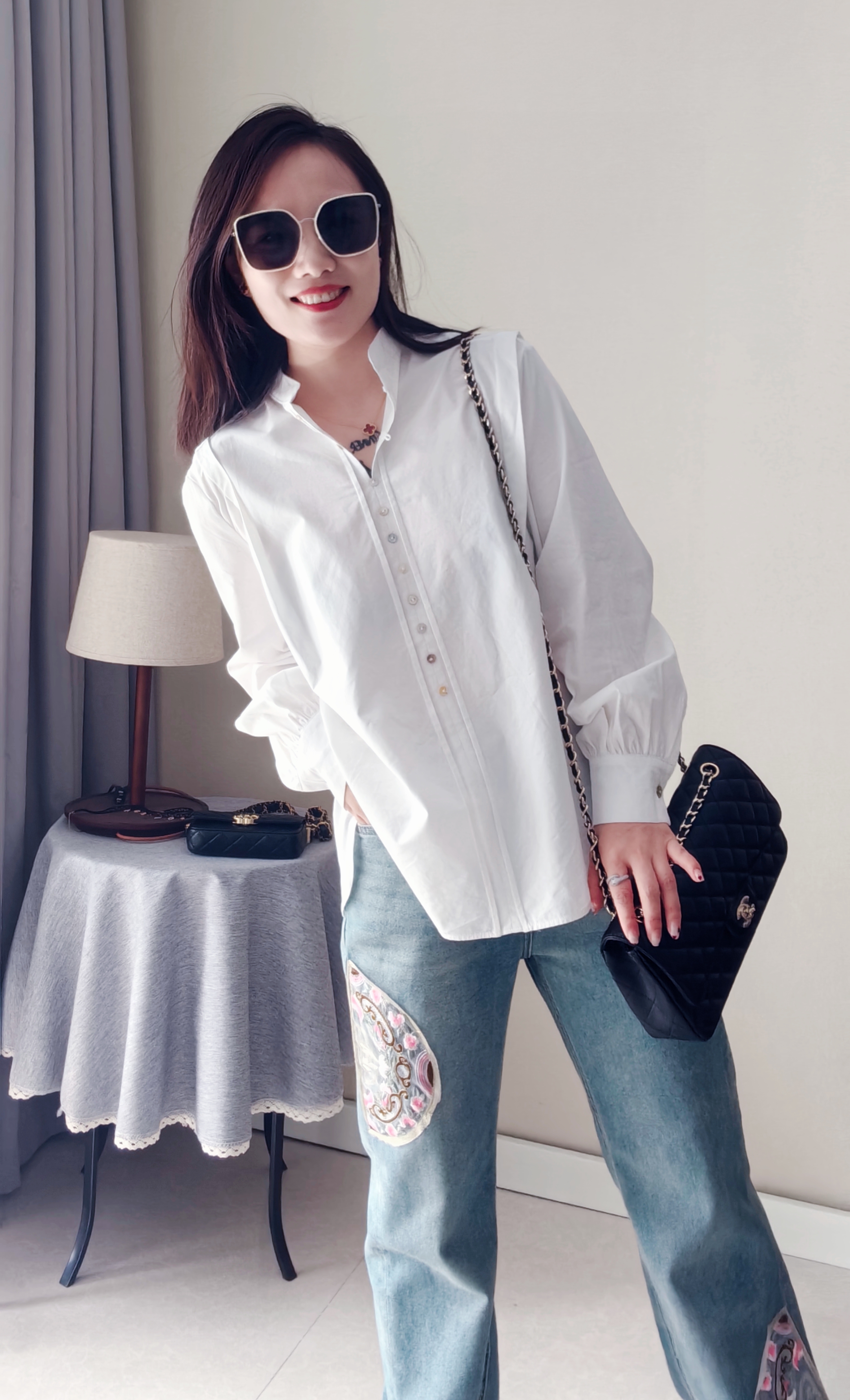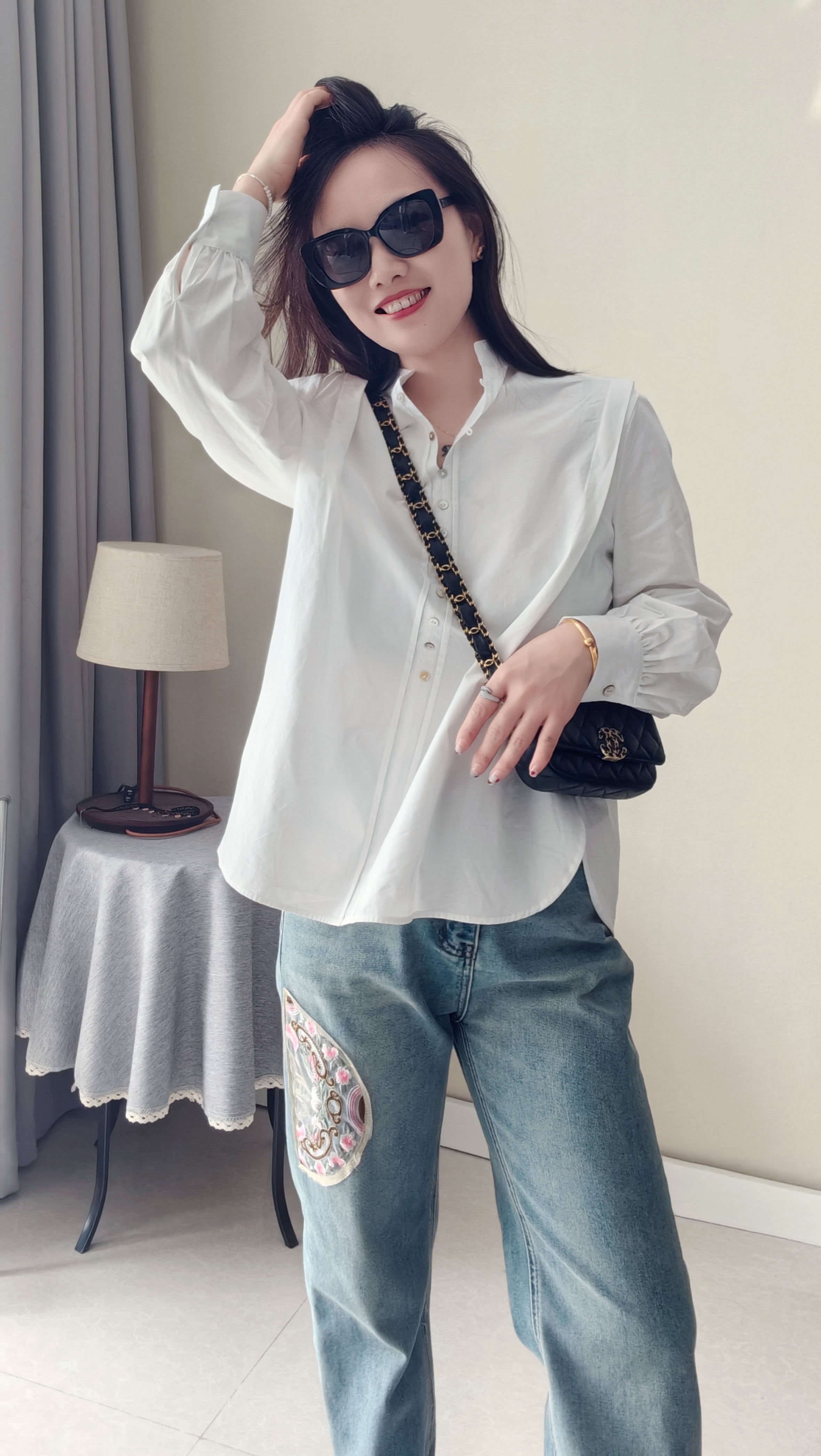 纽扣门襟,纽扣颜色新颖,设计复古独特,春秋百搭炒棒单品~