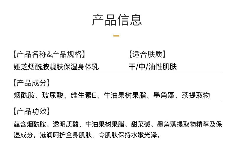 娅芝烟酰胺亮肤身体乳去鸡皮温和清爽不油腻全身滋润保湿润肤乳