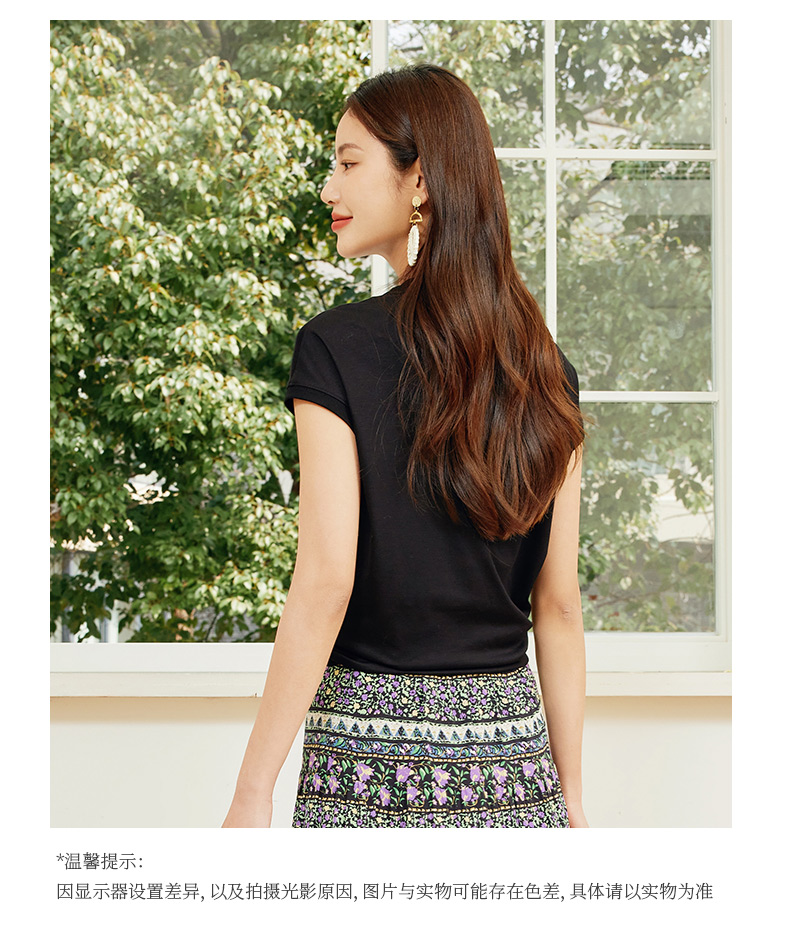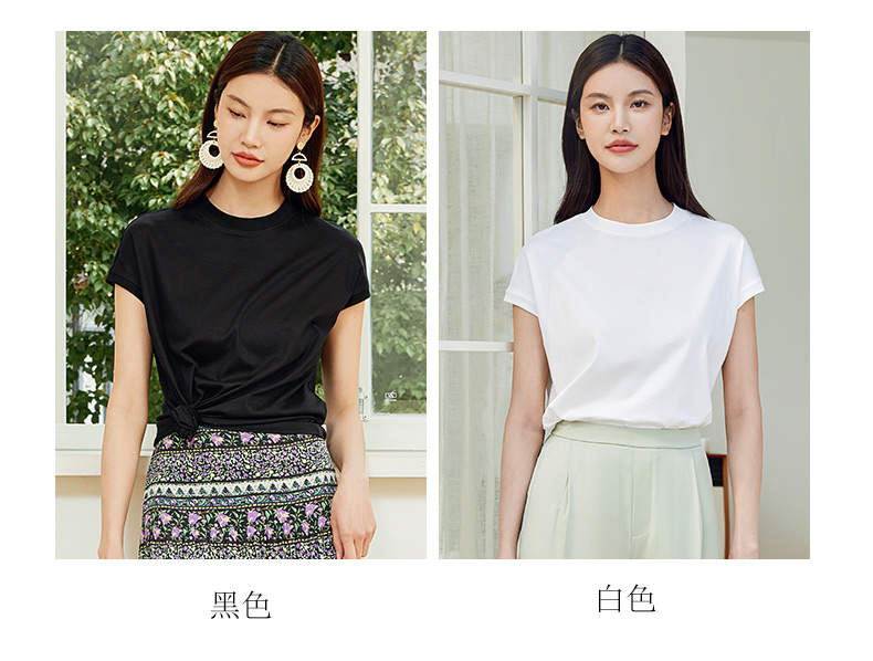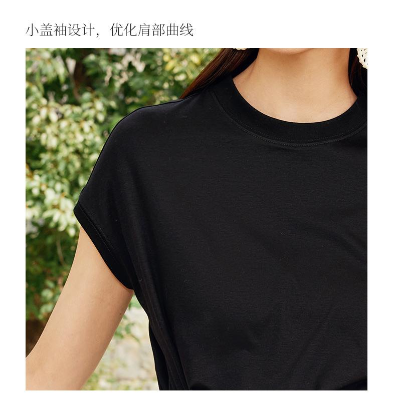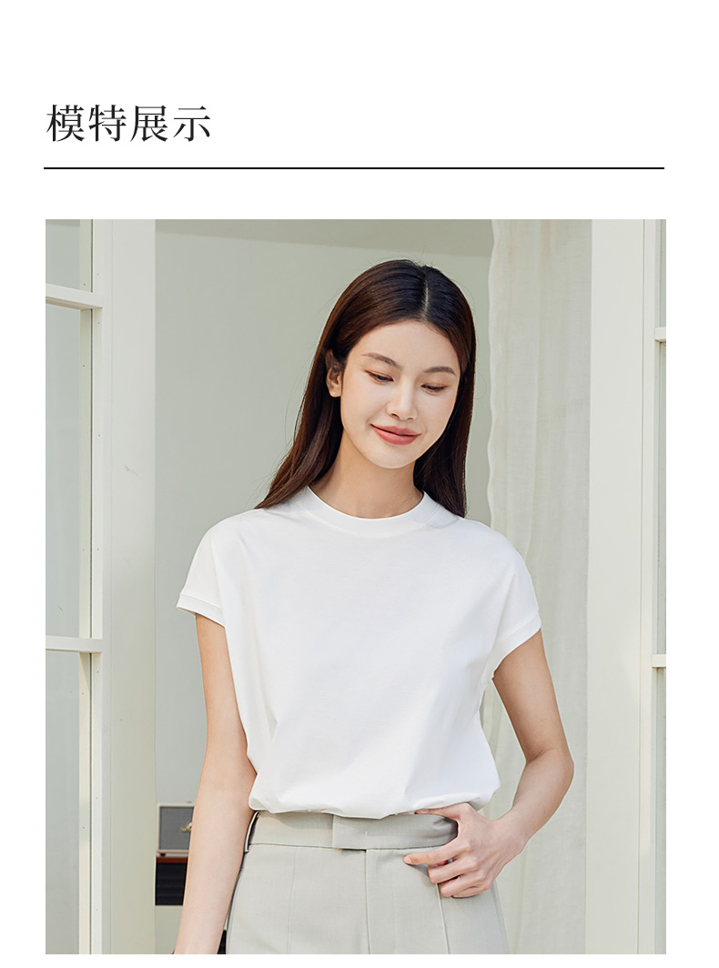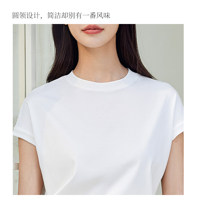 玳莎小盖袖圆领T恤女2024年夏季新款通勤上班纯色简约内搭棉上衣 EB32102
