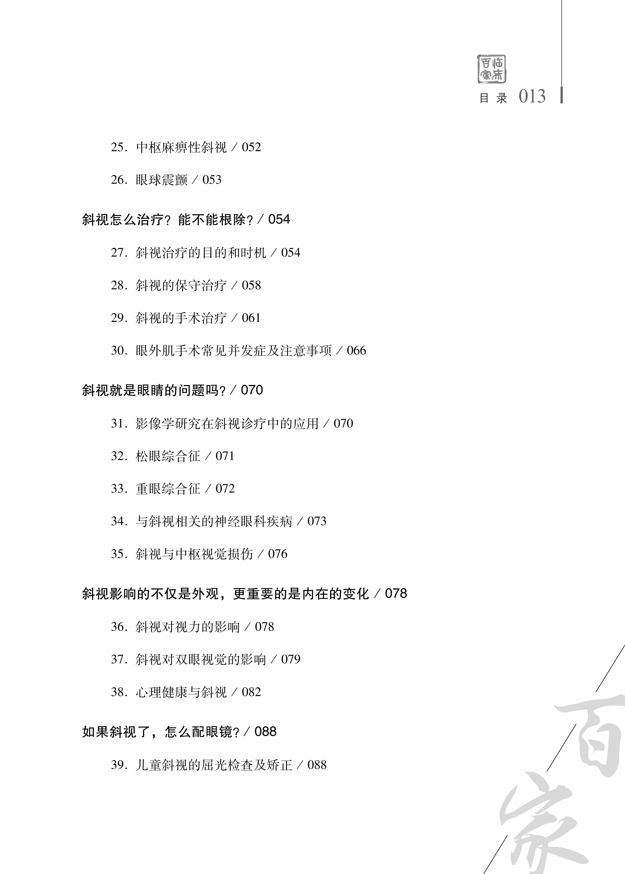我们深知,小儿斜视不仅是一种眼科疾病,也是双眼外观的改变。在这本《小儿斜视张伟2024观点》中,我们将深入挖掘小儿斜视背后的奥秘,因其发展不仅局限于眼球,还可能引起眼—脑—神经—心理等一系列复杂变化。每一位小患者都拥有着独特的故事,而每一位医生都肩负着对小患者的责任。小儿斜视治疗效果关系到孩子们的未来乃至一生,因此,这本书的每一页每一行都蕴含着我们对每一位小患者的深情关爱。他们的微笑是我们最大的动力,是我们不懈奋斗的目标。我们将尽最大努力提供最前沿的医学知识,关注每一位小患者的未来,因为他们的幸福是我们最大的期盼。