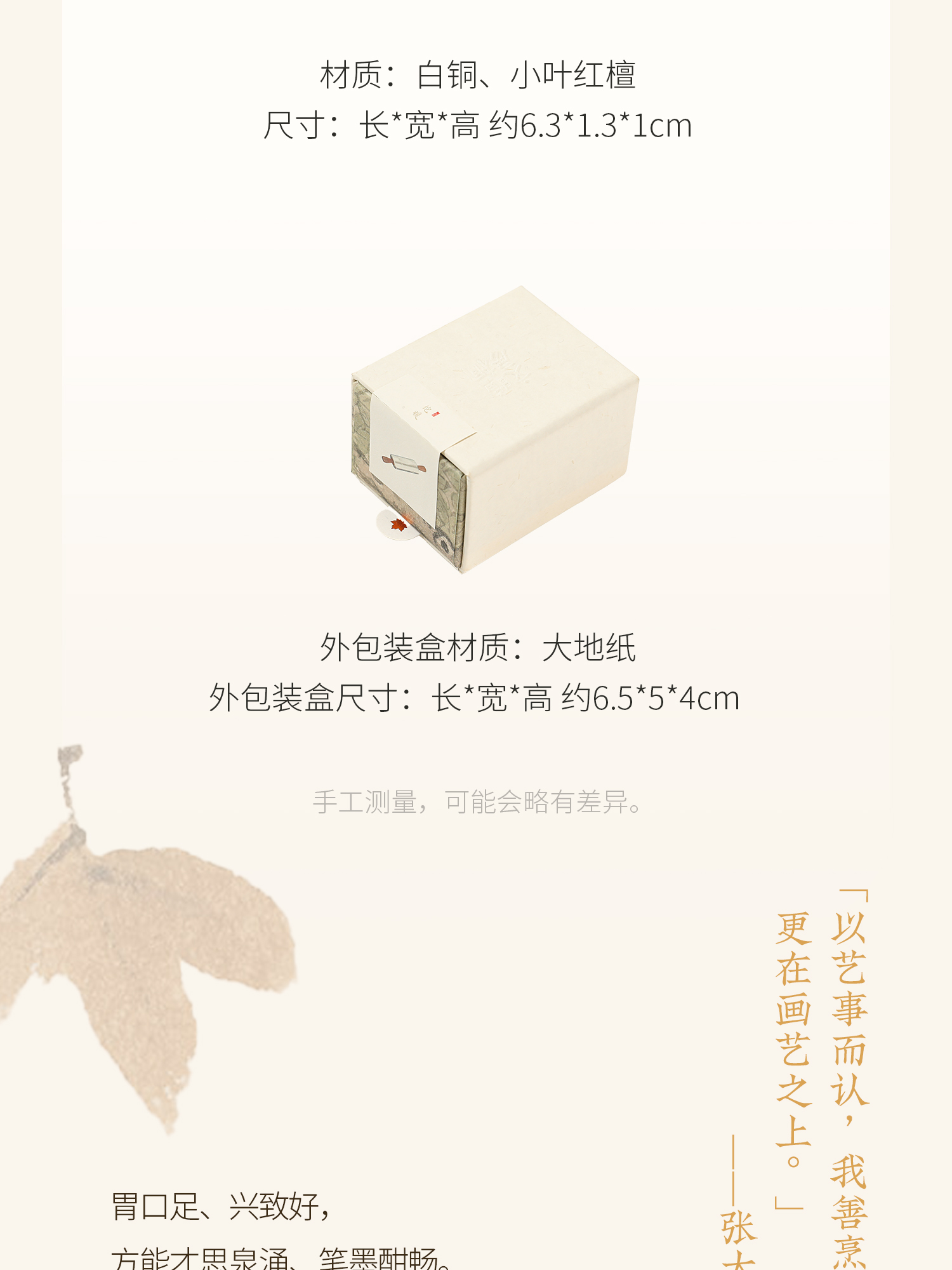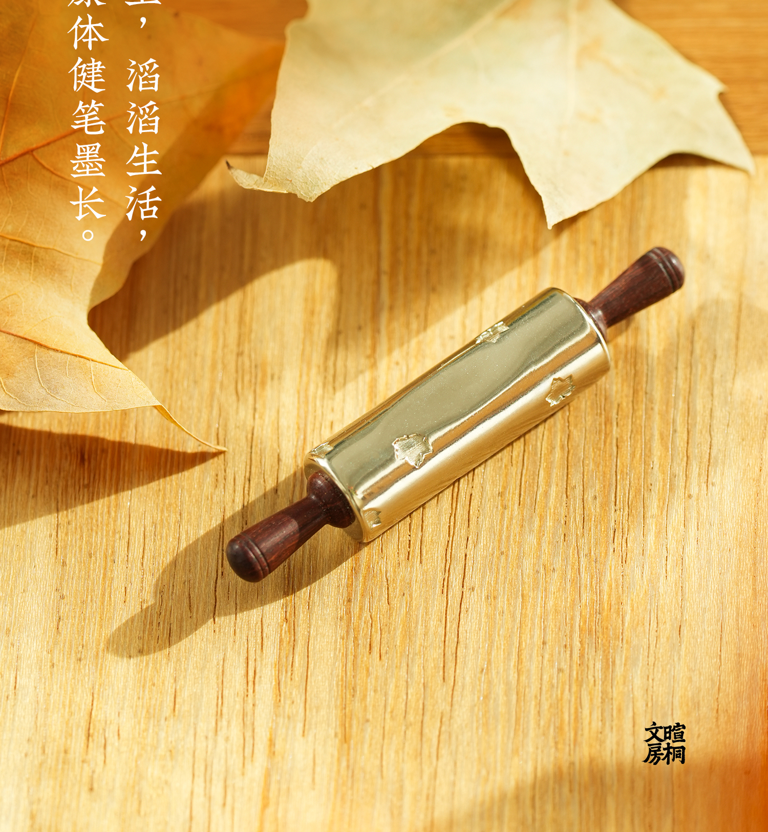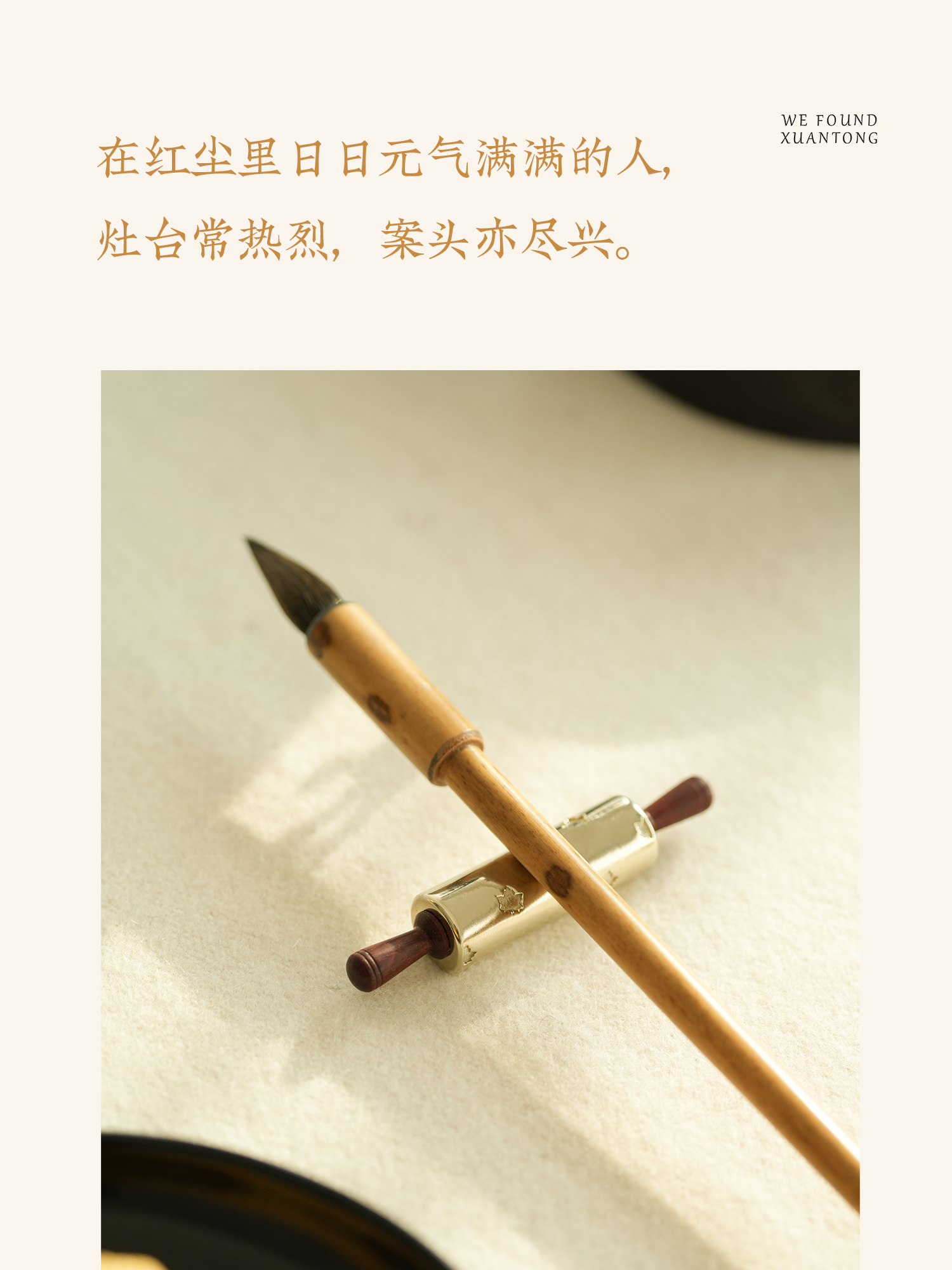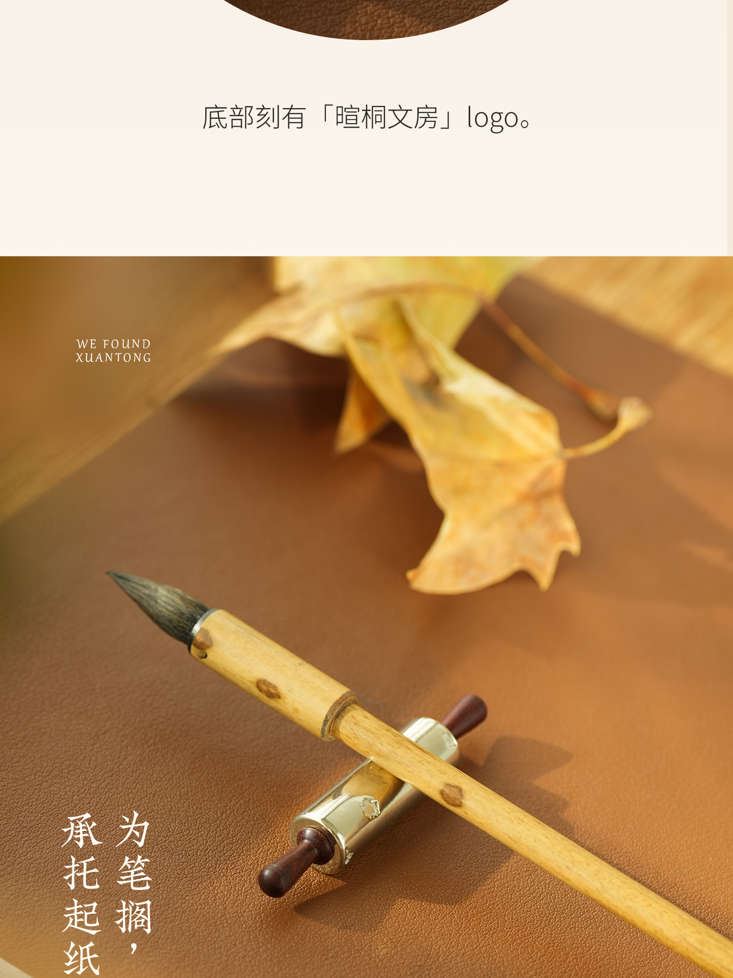 暄桐文房 饱暖笔搁 白铜 小叶红檀