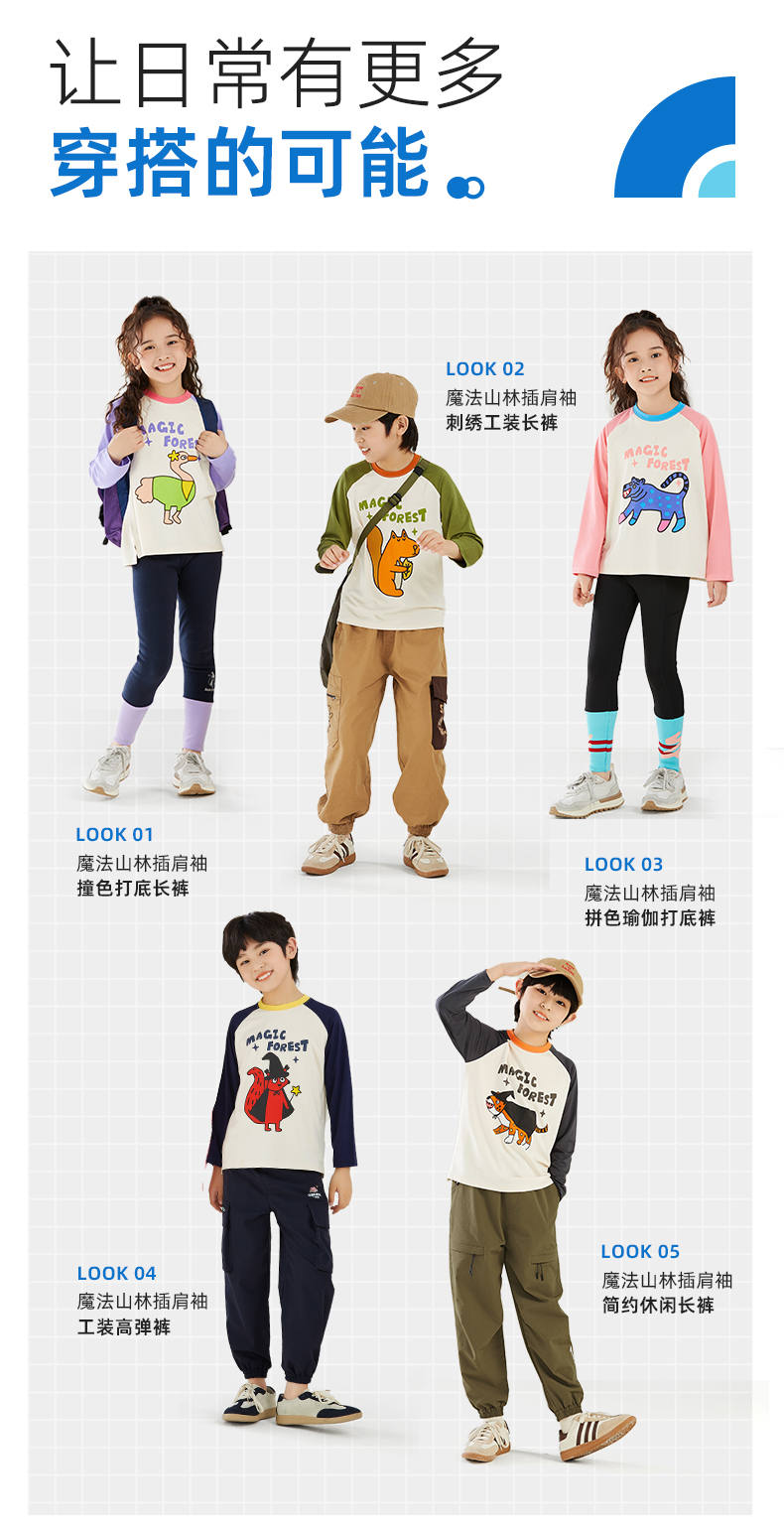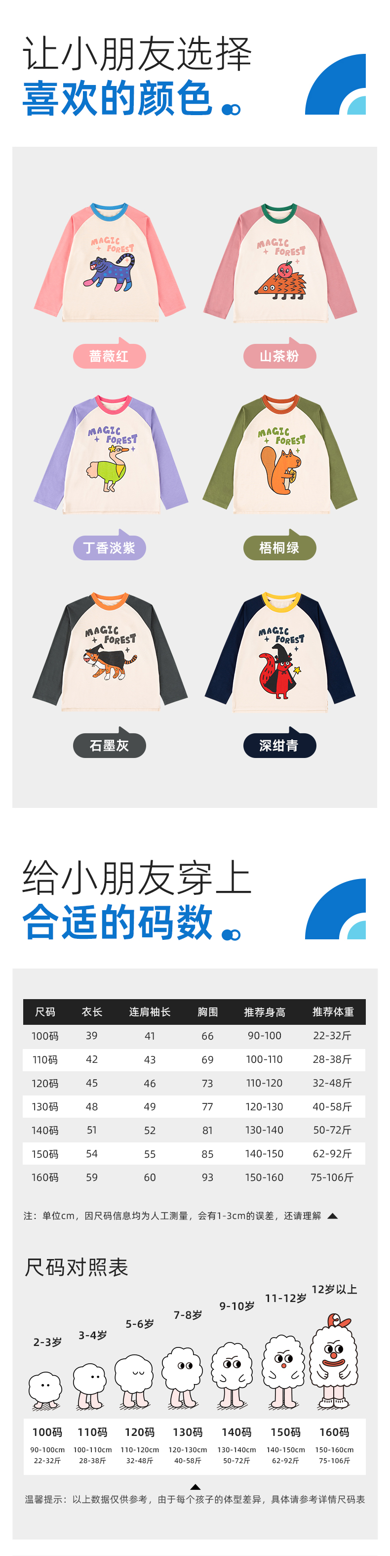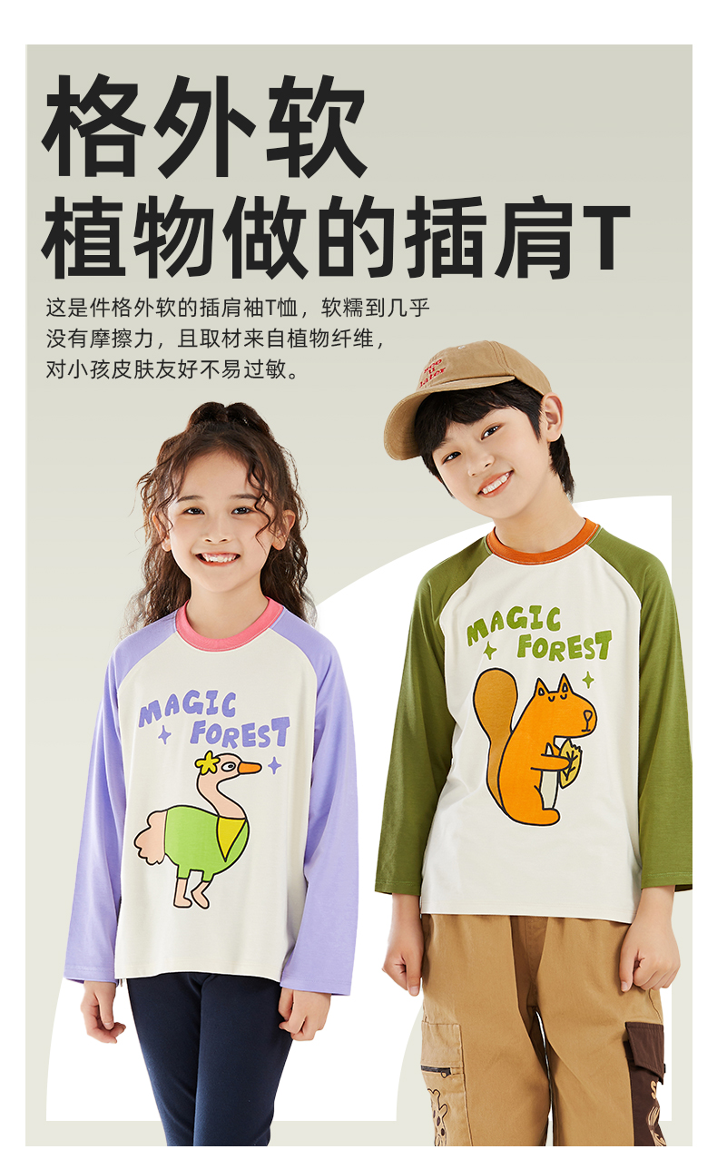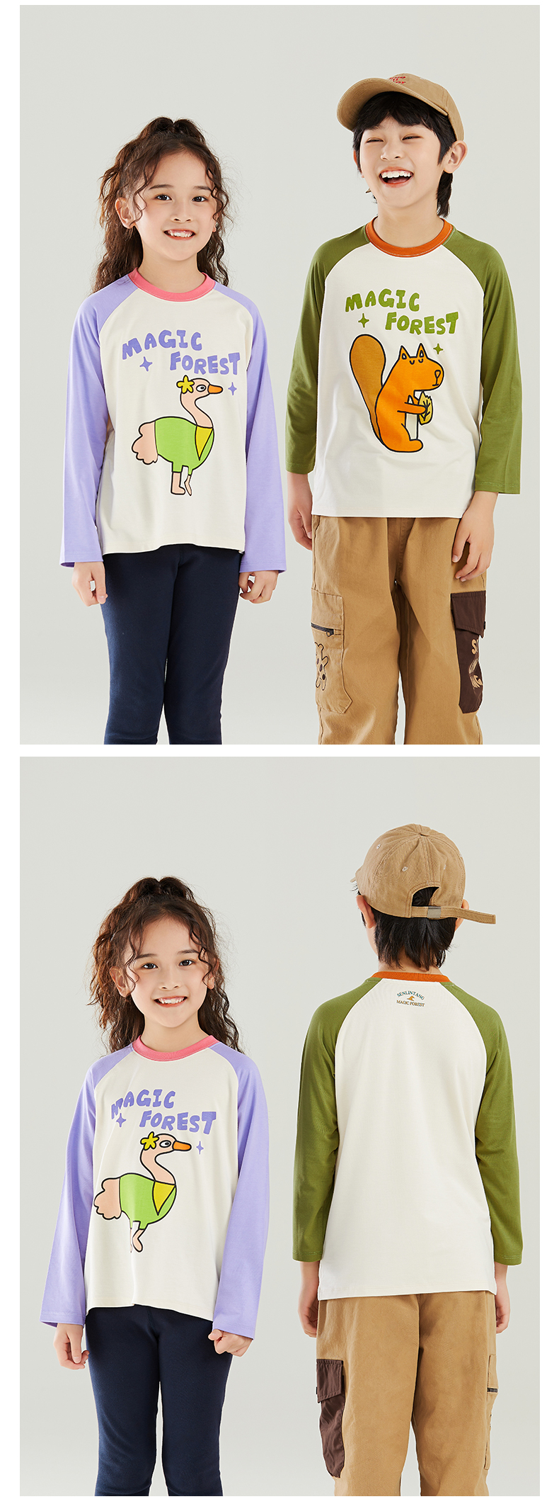 【魔法山林插肩袖】森林棠24秋季经典儿童插肩袖长袖T恤卡通打底衫60233166