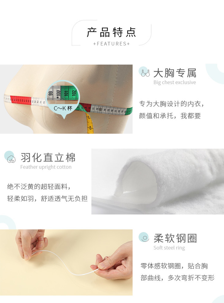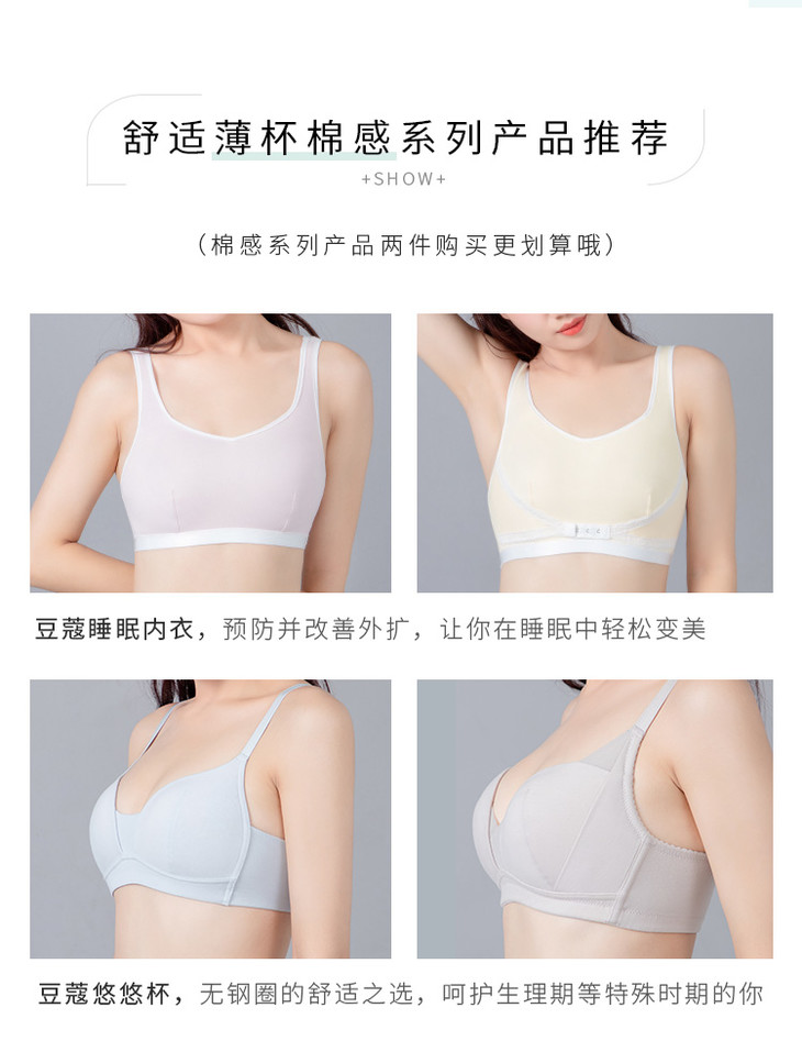 【秒杀89/件,139/2件】奶糖派大罩杯棉感薄款透气侧收上托豆蔻大胸专属少女内衣【非质量问题不退不换】