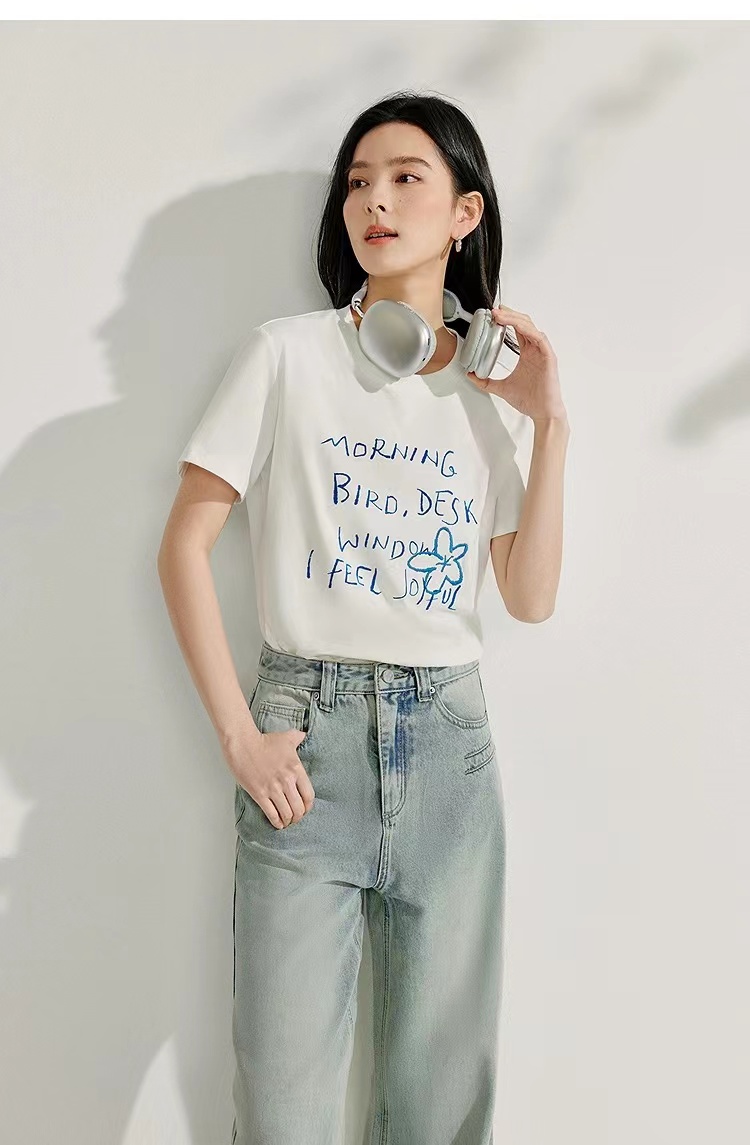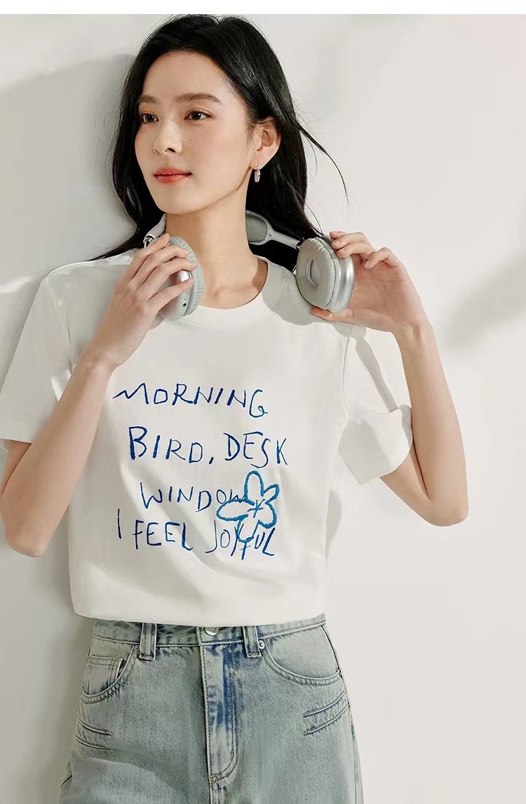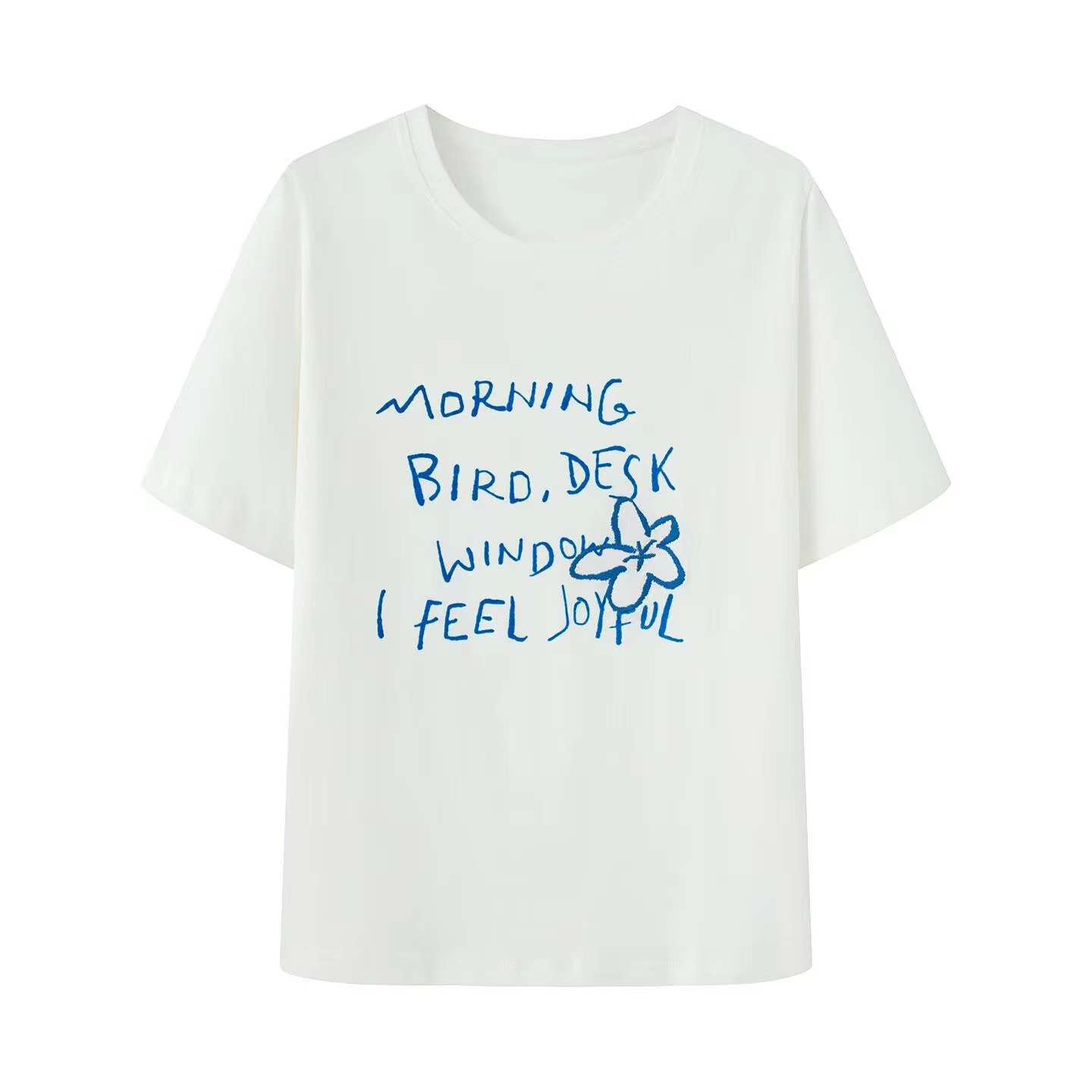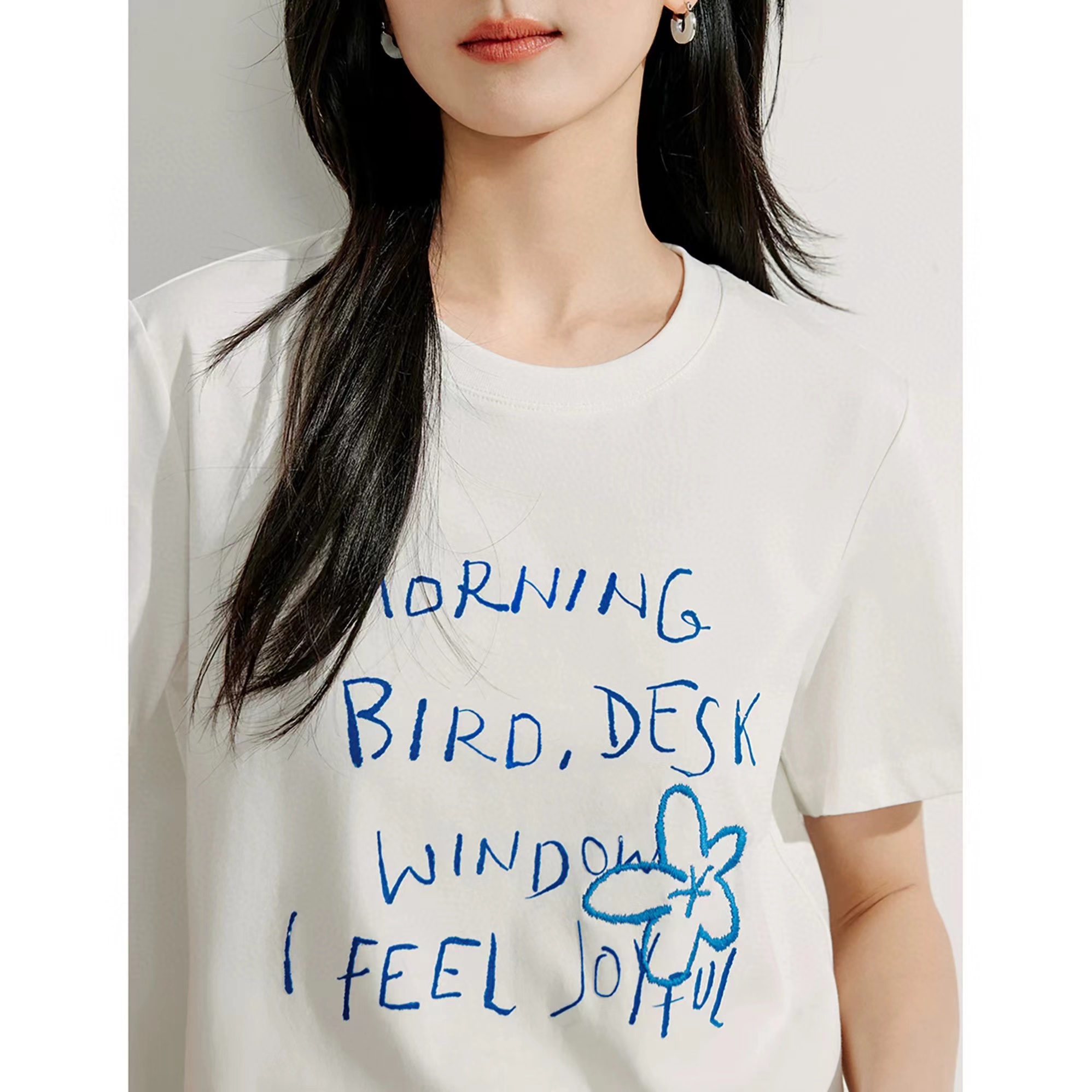 F032514新款夏季宽松白色休闲圆领短袖字母印花T恤
