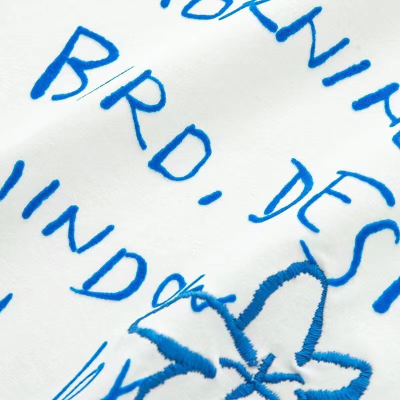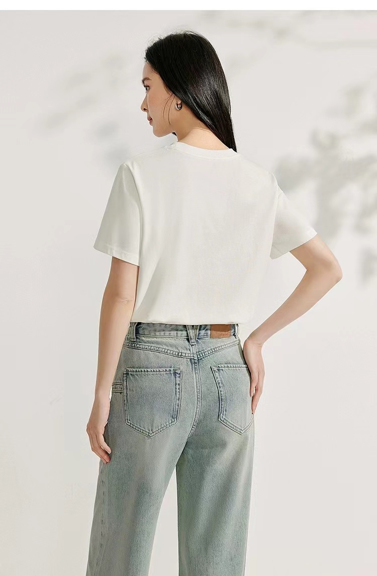 上身简直绝了啊!!刺绣工艺+复古拼接,法式圆领半袖t恤E040668