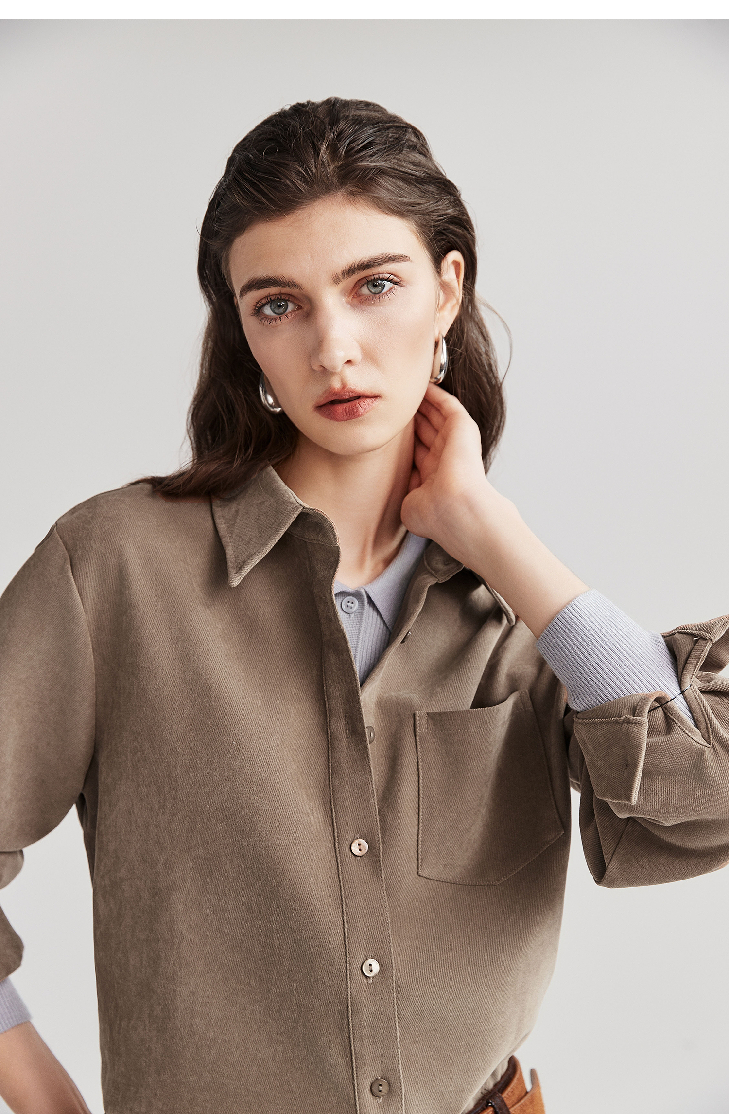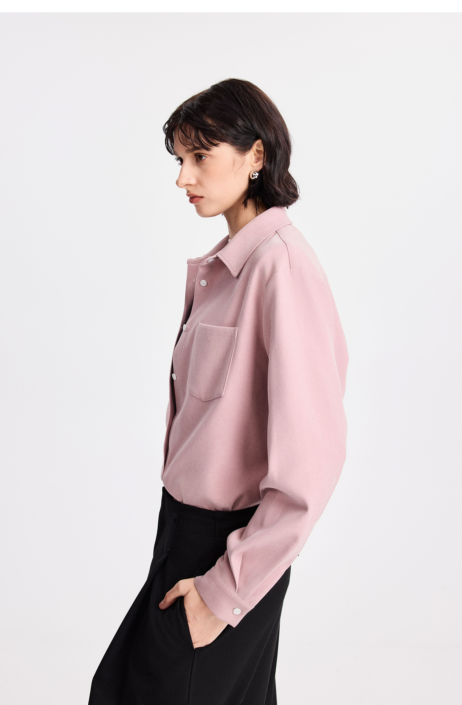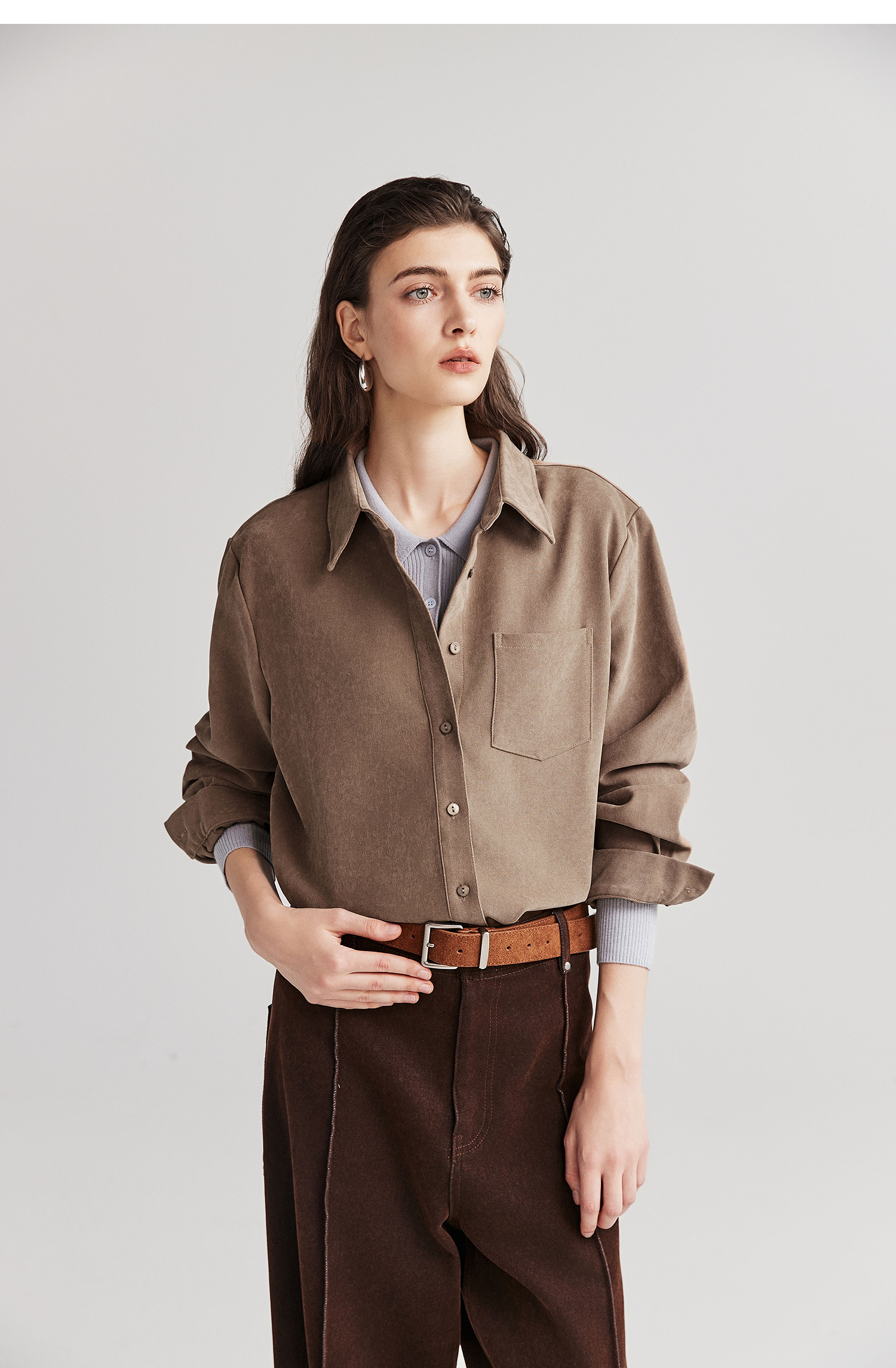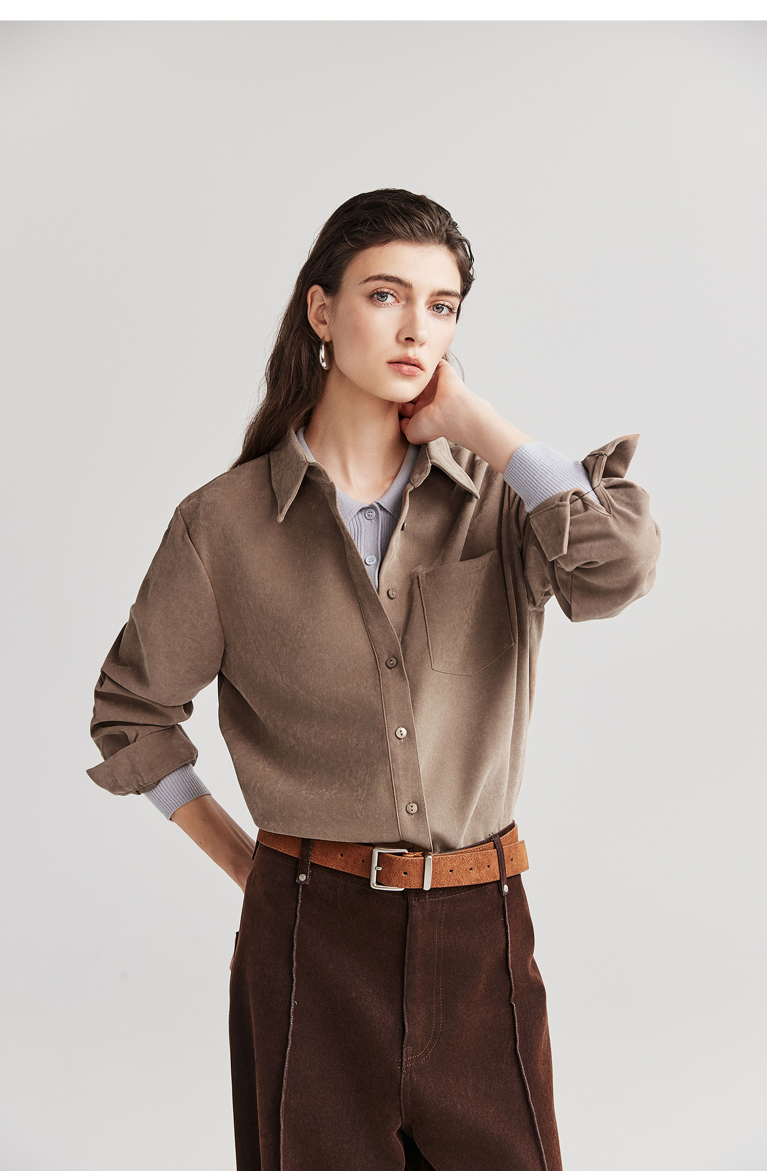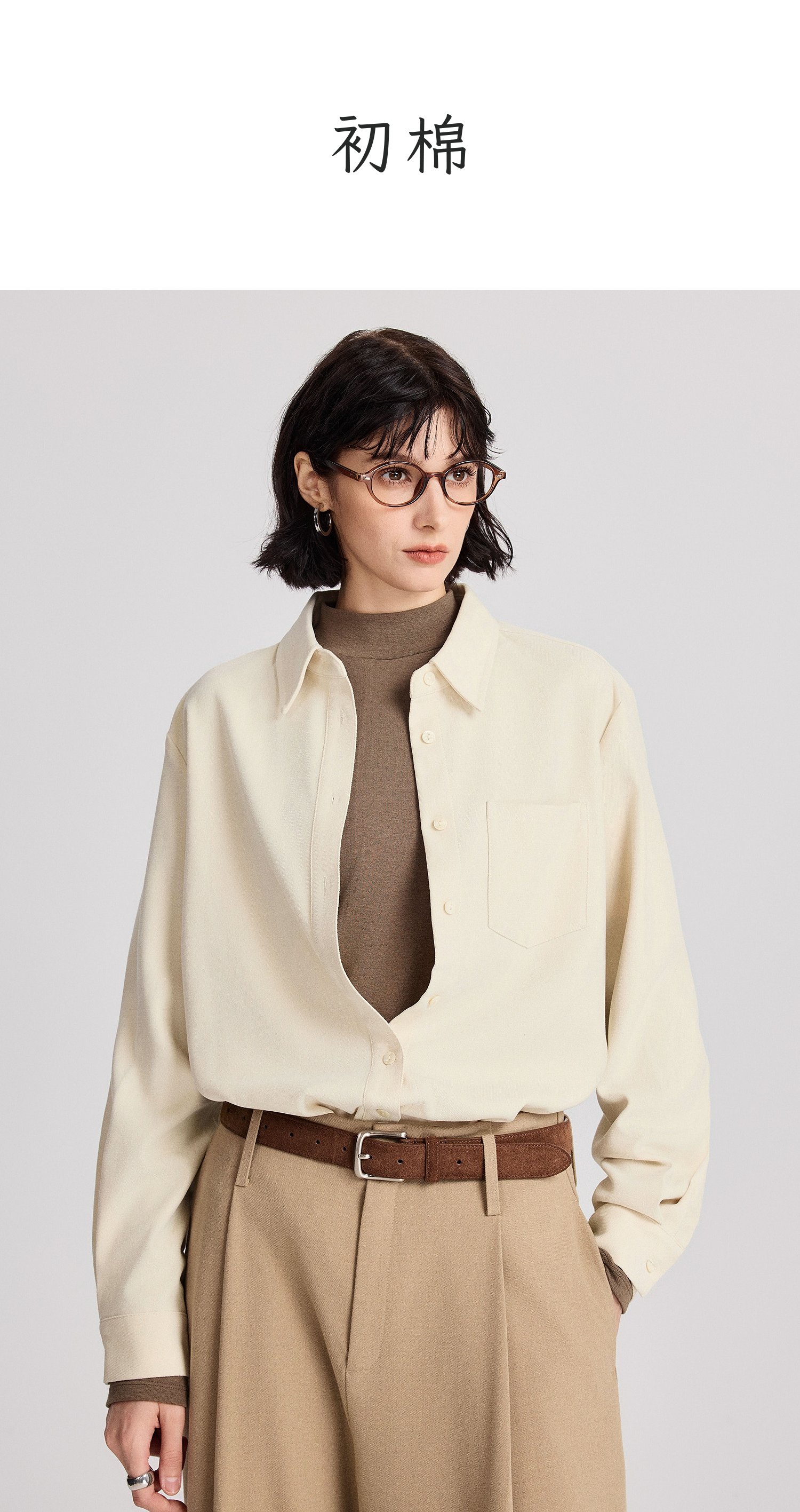 棉仓366604040-加厚磨毛长袖衬衫女胸口单袋设计25秋冬微宽松叠穿保暖衬衣