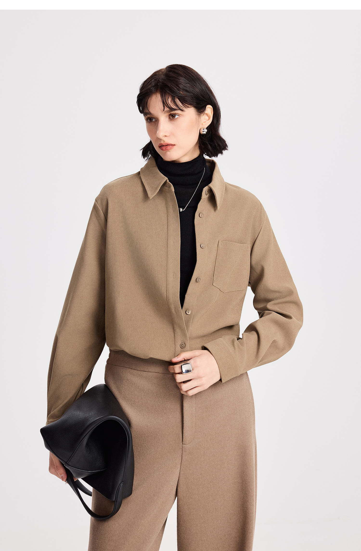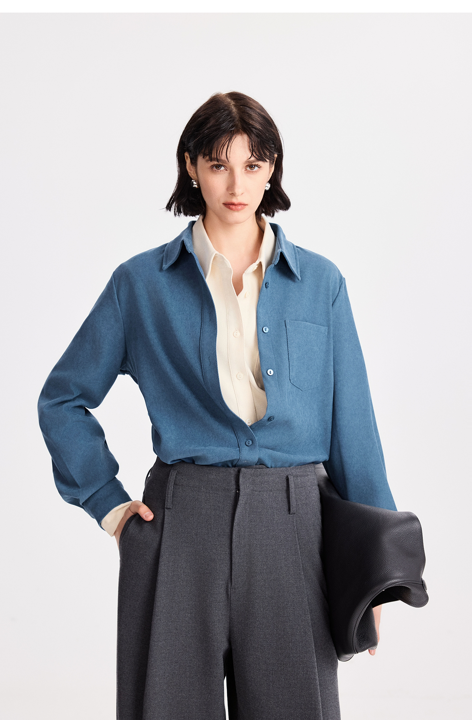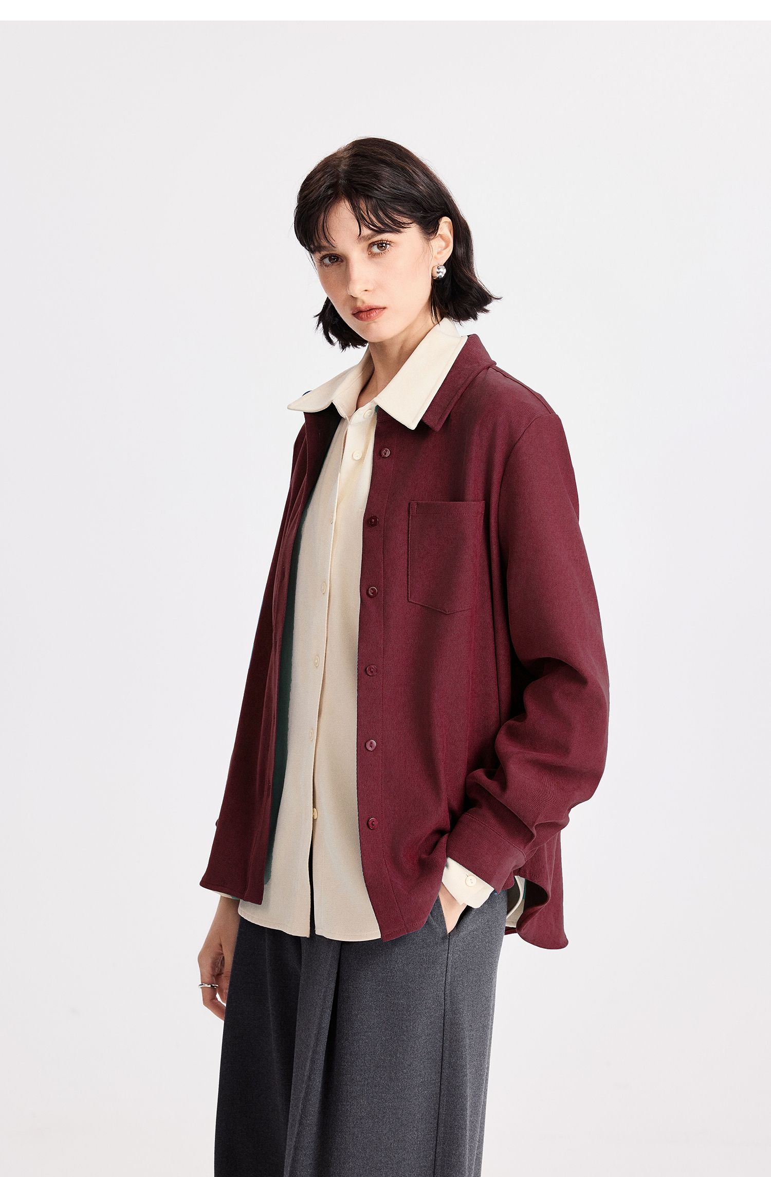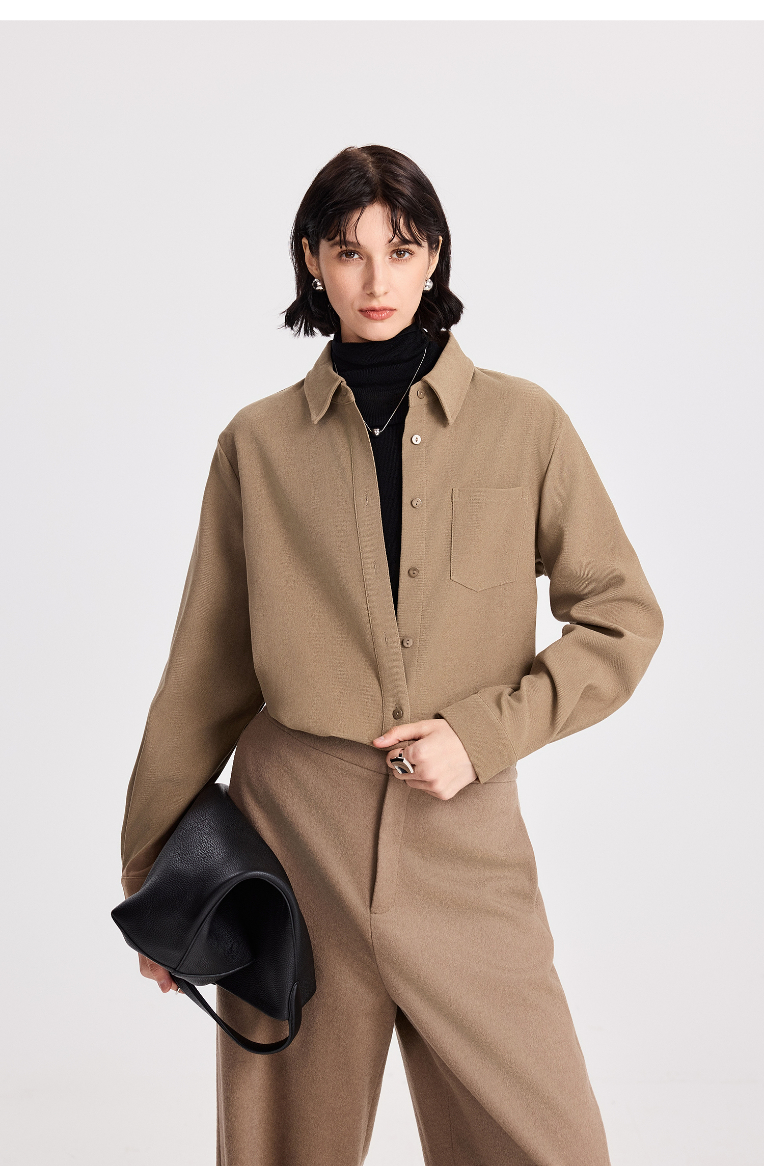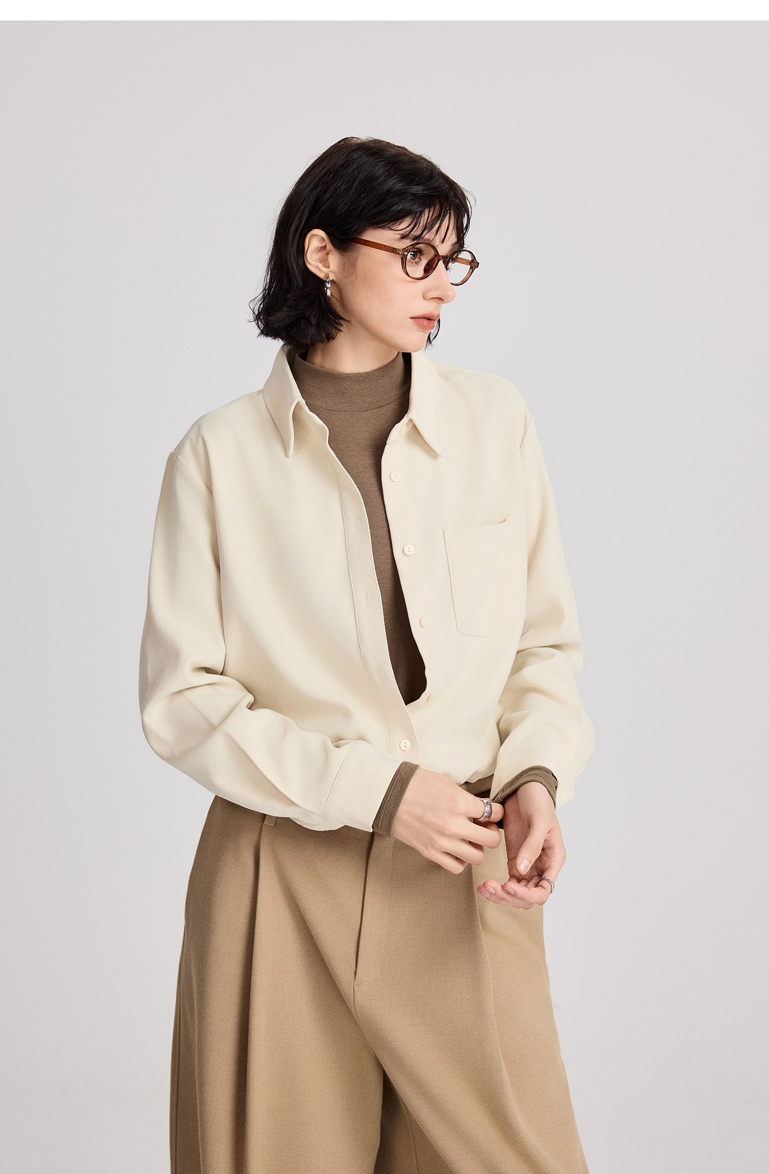 棉仓366604040-加厚磨毛长袖衬衫女胸口单袋设计25秋冬微宽松叠穿保暖衬衣