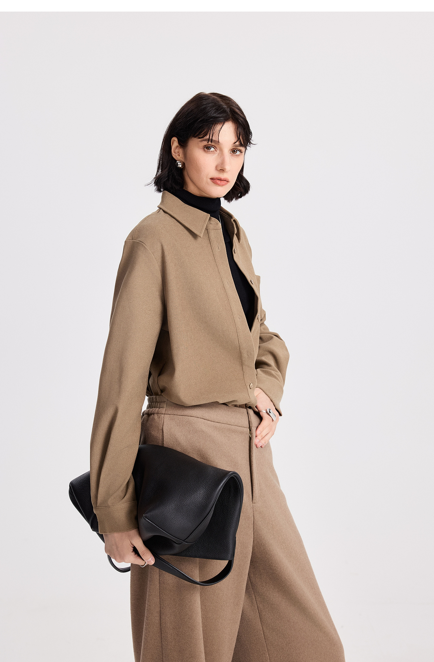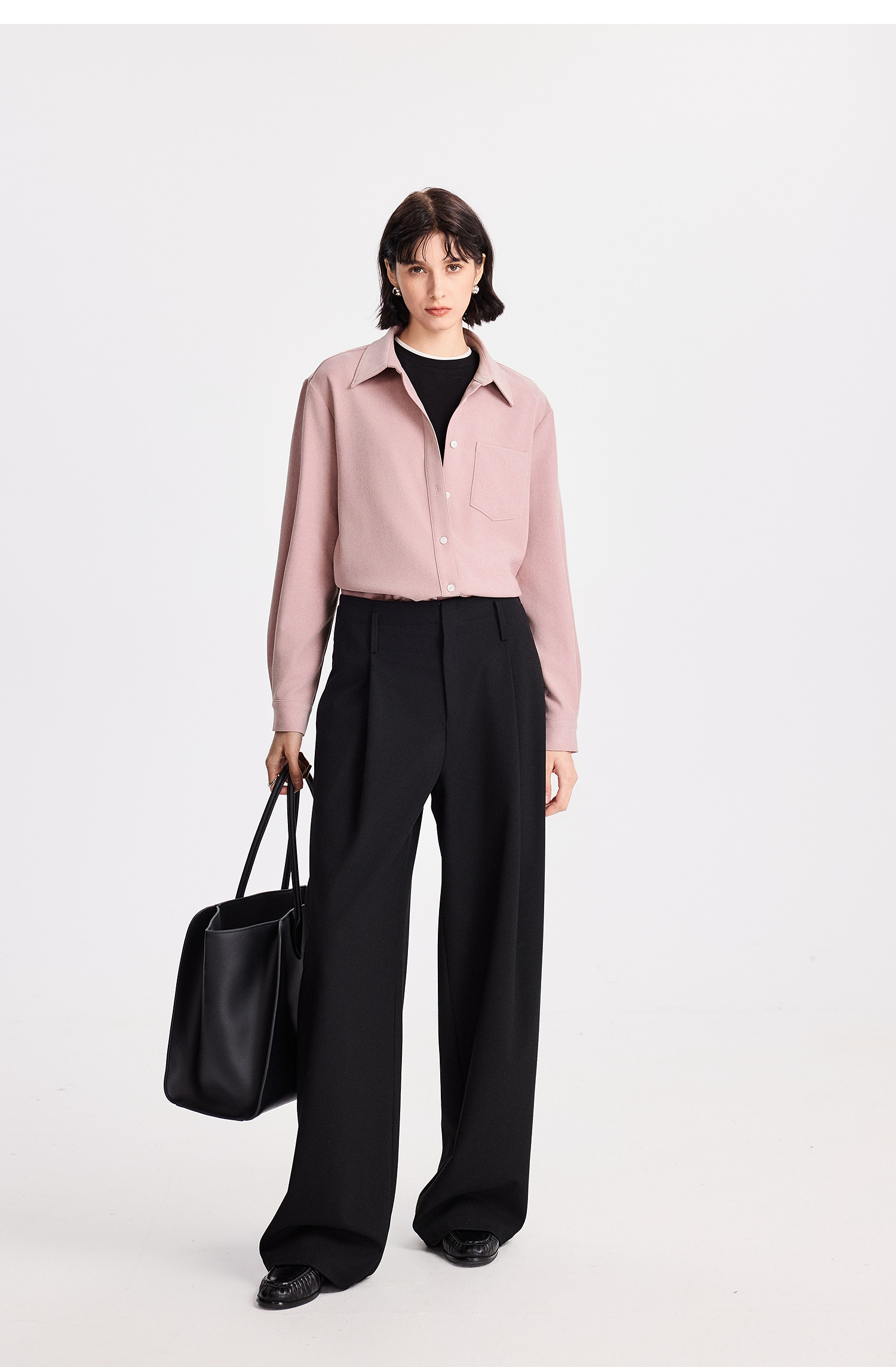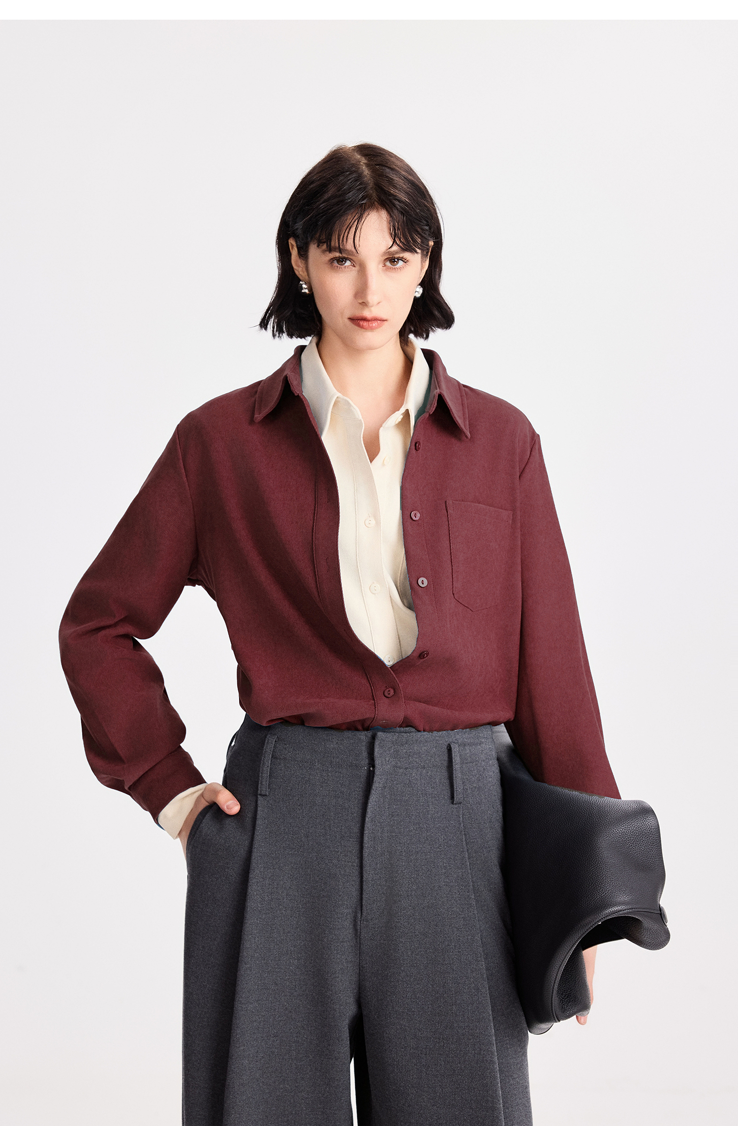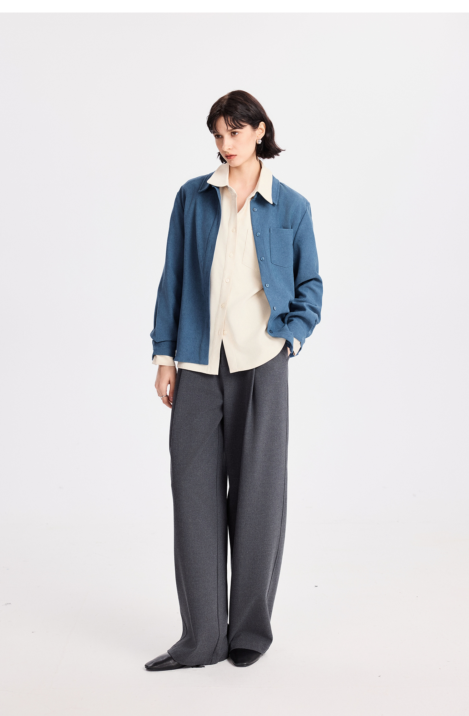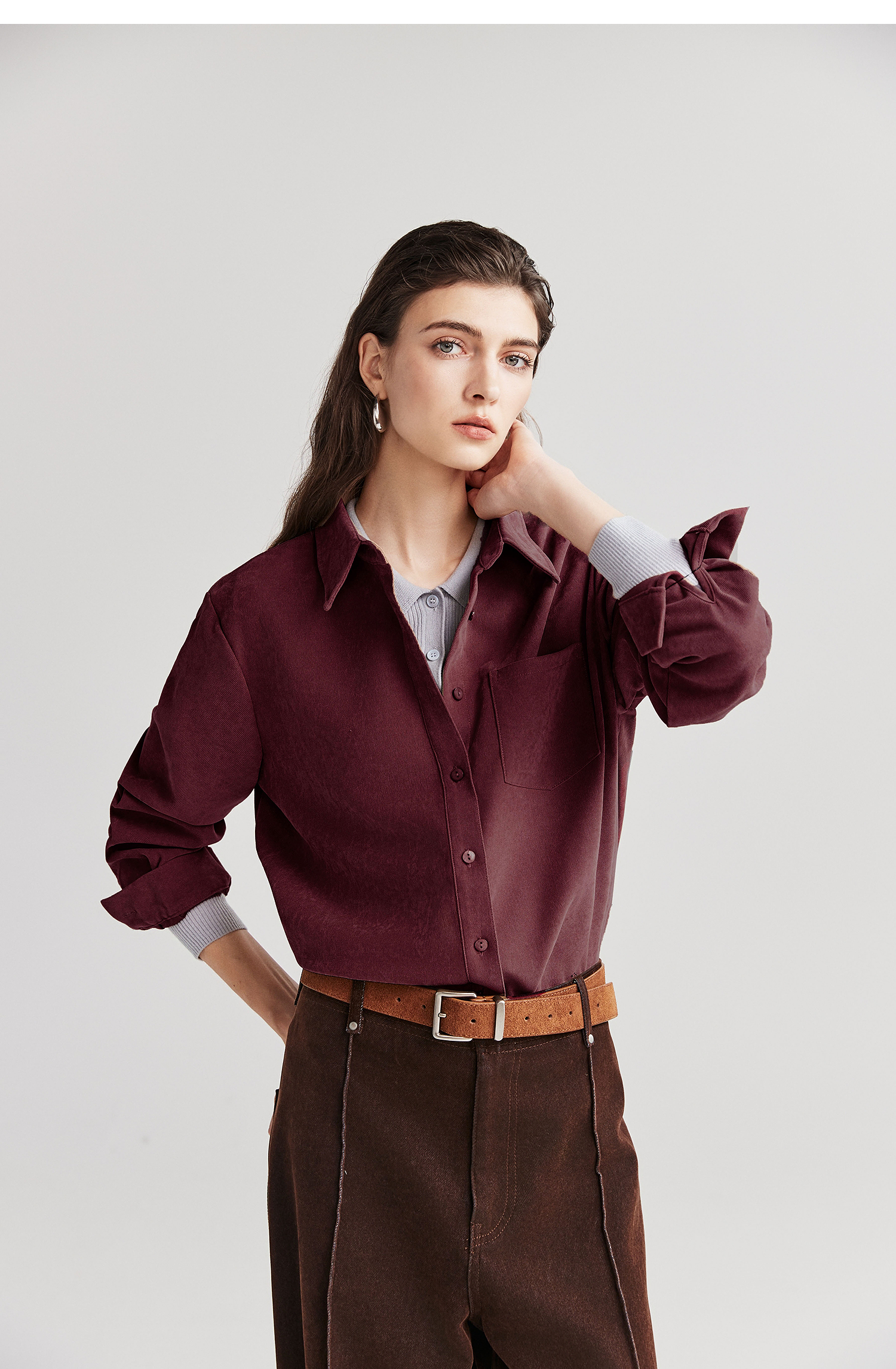 棉仓366604040-加厚磨毛长袖衬衫女胸口单袋设计25秋冬微宽松叠穿保暖衬衣