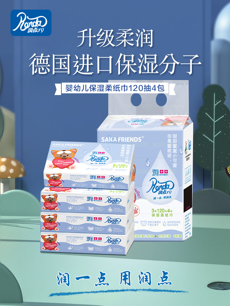 润点保湿柔纸巾3层120抽*4包