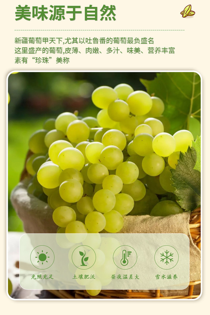 ✅ 都说新疆葡萄🍇 甲天下 那么精选新疆的葡萄🍇 自然晾晒而成的葡萄干还用说吗? 自然是个大无籽,色泽通透,沁甜可口啦🍇 🔺 人工精挑细选,确保颗颗饱满 🔺 经过多次反复清洗后,自然风干晾晒而制 ✅ 全程不添加香精、色素、植脂末 口感更甜更细腻,特别是干度很好 个体均匀饱满,葡萄干表皮干滑具有不粘团等特点 0反式脂肪酸,每一口都是实打实的享受