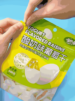 ✅ 自立式拉链袋,储存方便 吃不完可以直接按紧封条保存 避免酸奶味葡萄干直接暴露在空气中受潮 😋 超级赞,味道一流 简直就是零食界的佼佼者 🛒 赶快囤起来解馋吧