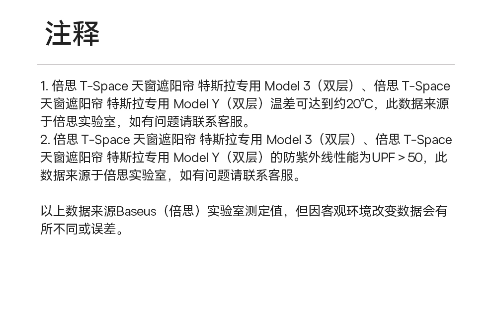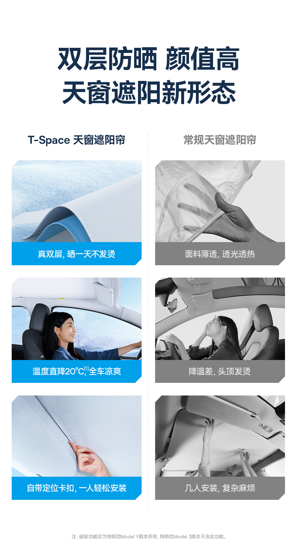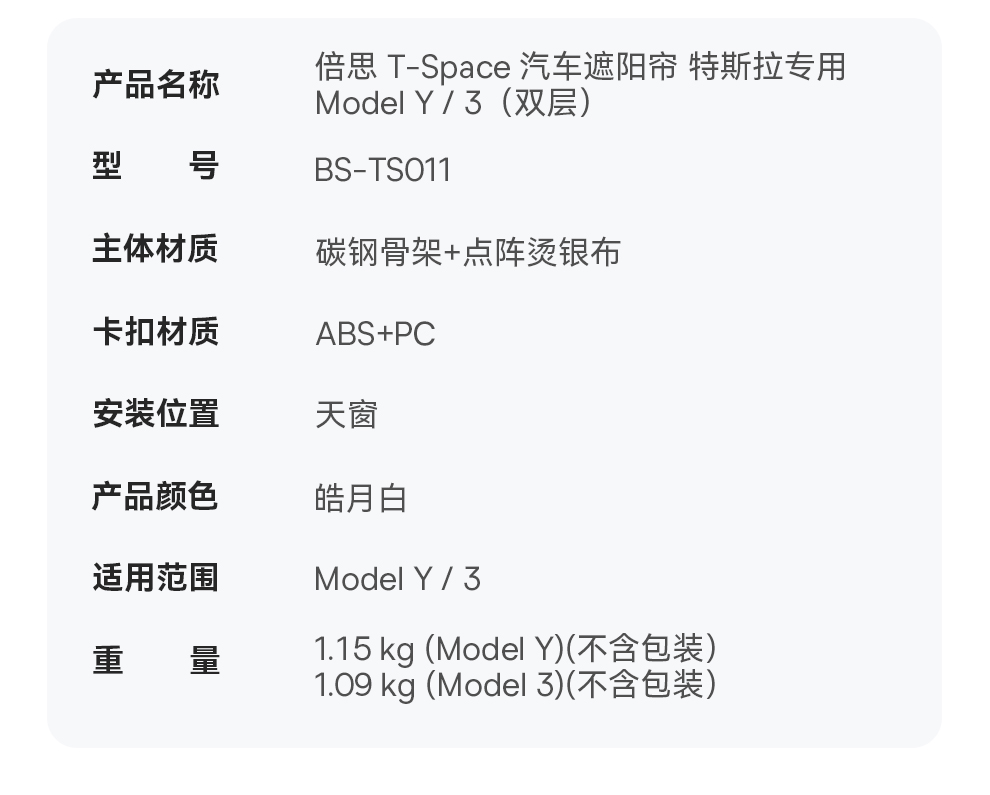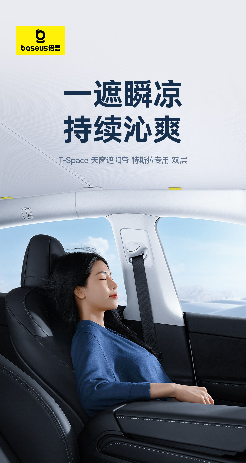 倍思 T-Space 天窗遮阳帘 特斯拉专用 Model Y/ Model 3 焕新版