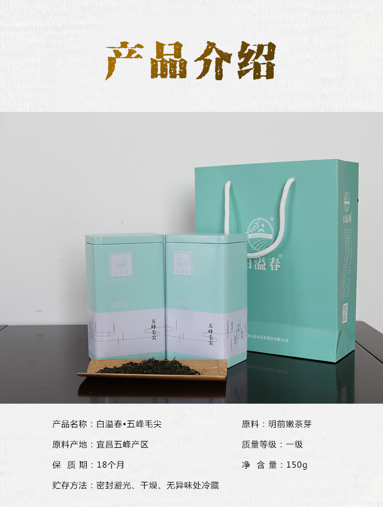 【宜昌助农馆】五峰白溢春 五峰毛尖 300g 150克*2罐/提