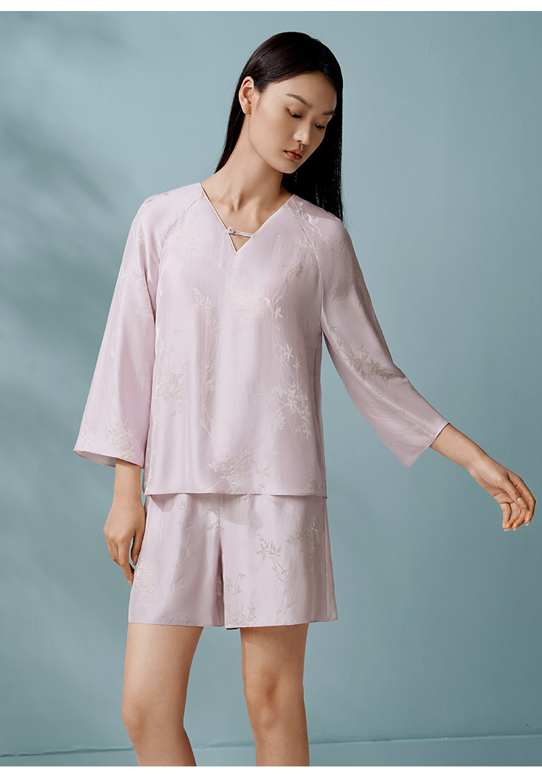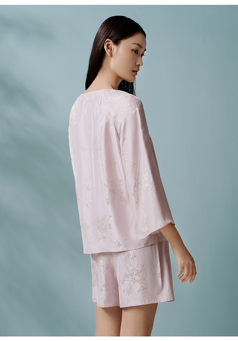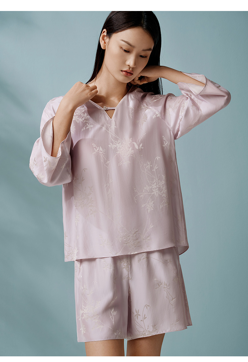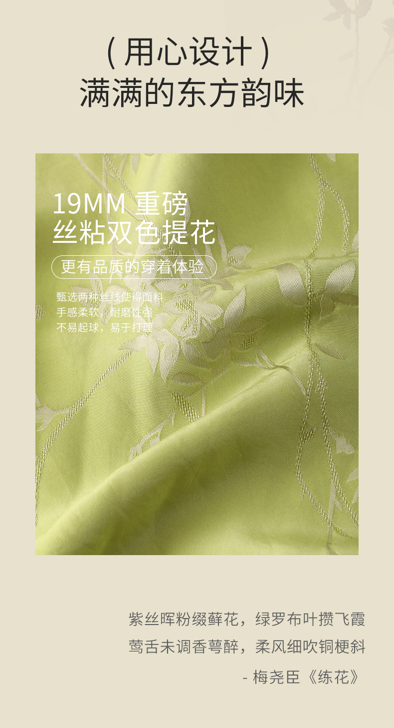 【绿绮花韵】新中式重磅桑蚕丝提花真丝睡衣女春夏家居服衣裤套金三塔 YSFFA204