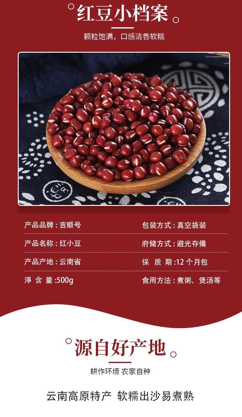 【吉顺号食品】-吉顺号 云南的小红豆500g 袋装 五谷杂粮特产 红豆