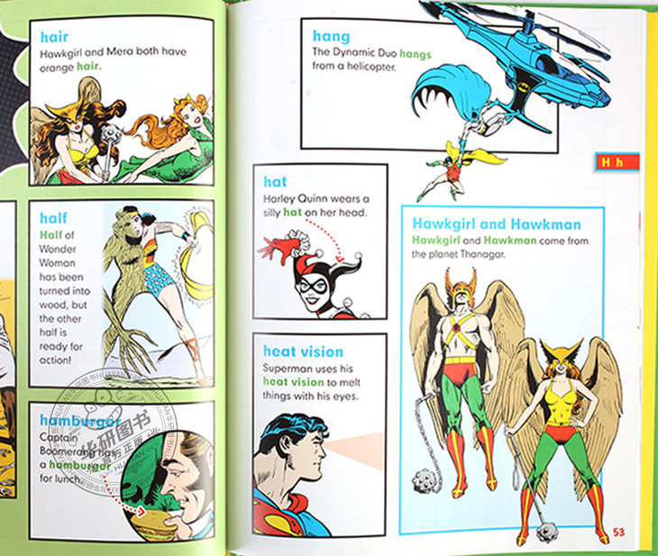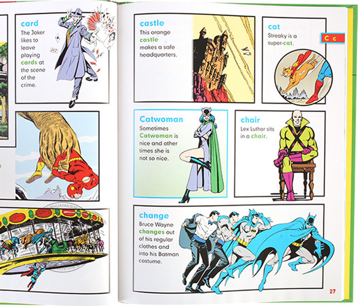 1.按照字母表顺序,从airplane到zoo,收录了500个DC超级英雄的基础英语词汇。