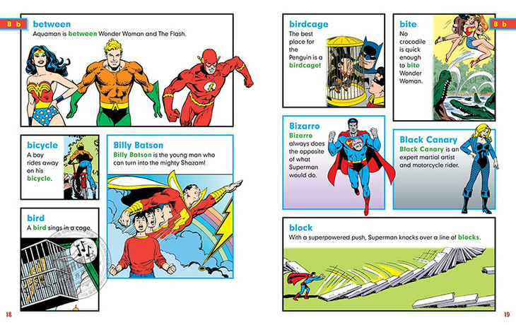 A combination of the 500 most popular words for pre-schoolers along with essential DC super hero names and terms, this unique visual dictionary makes it fun for kids to build their vocabulary and early and pre-reading skills. Superman, Batman, Wonder Woman, Green Lantern, the Flash--and other fan favorites--are fabulous guides to first words and the DC universe. The classic comic book art rounds out this entertaining, educational, great-looking package. Each entry includes an illustration, and an example of the word used in a sentence.