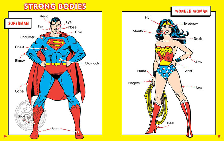 Super Heroes: My First Dictionary《DC英雄儿童初级图片字典词典》是一本为学龄前儿童设计的DC漫画英雄启蒙插图词典,里面收录了约500个DC超级英雄的名字和术语,所有英语词汇皆来自《超人》、《蝙蝠侠》、《神奇女侠》、《绿灯侠》、《闪电侠》等深受孩子们喜爱的DC漫画,并附有漫画中经典英雄形象的全彩插图。这是一本具有趣味性的儿童英语学习型词典,让孩子能够在快乐学习的同时,增加英语词汇量,学会初步的阅读技巧。