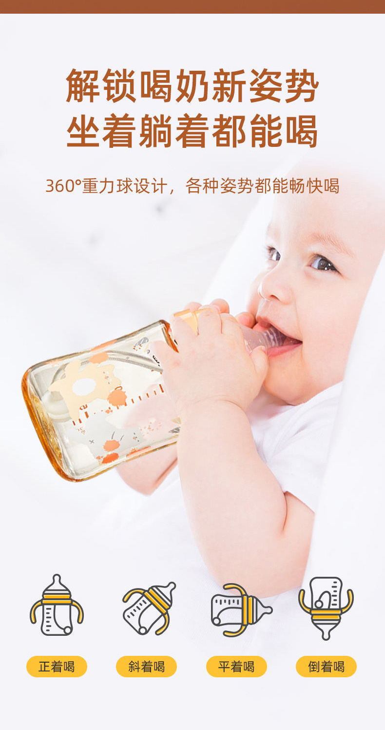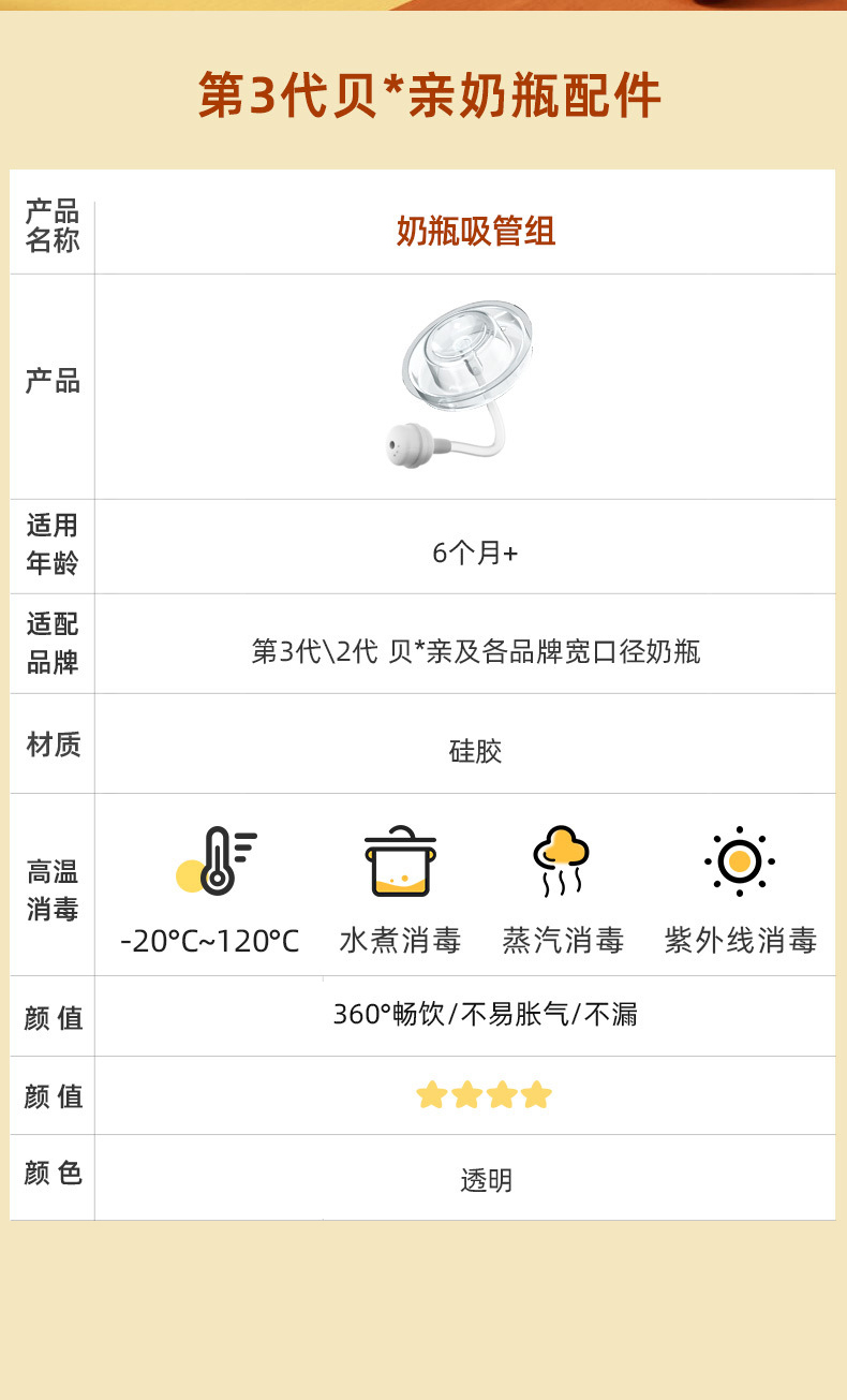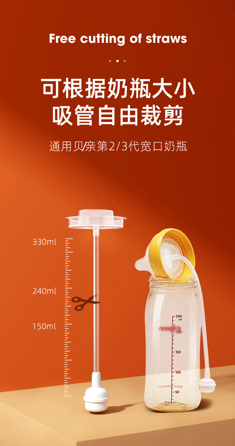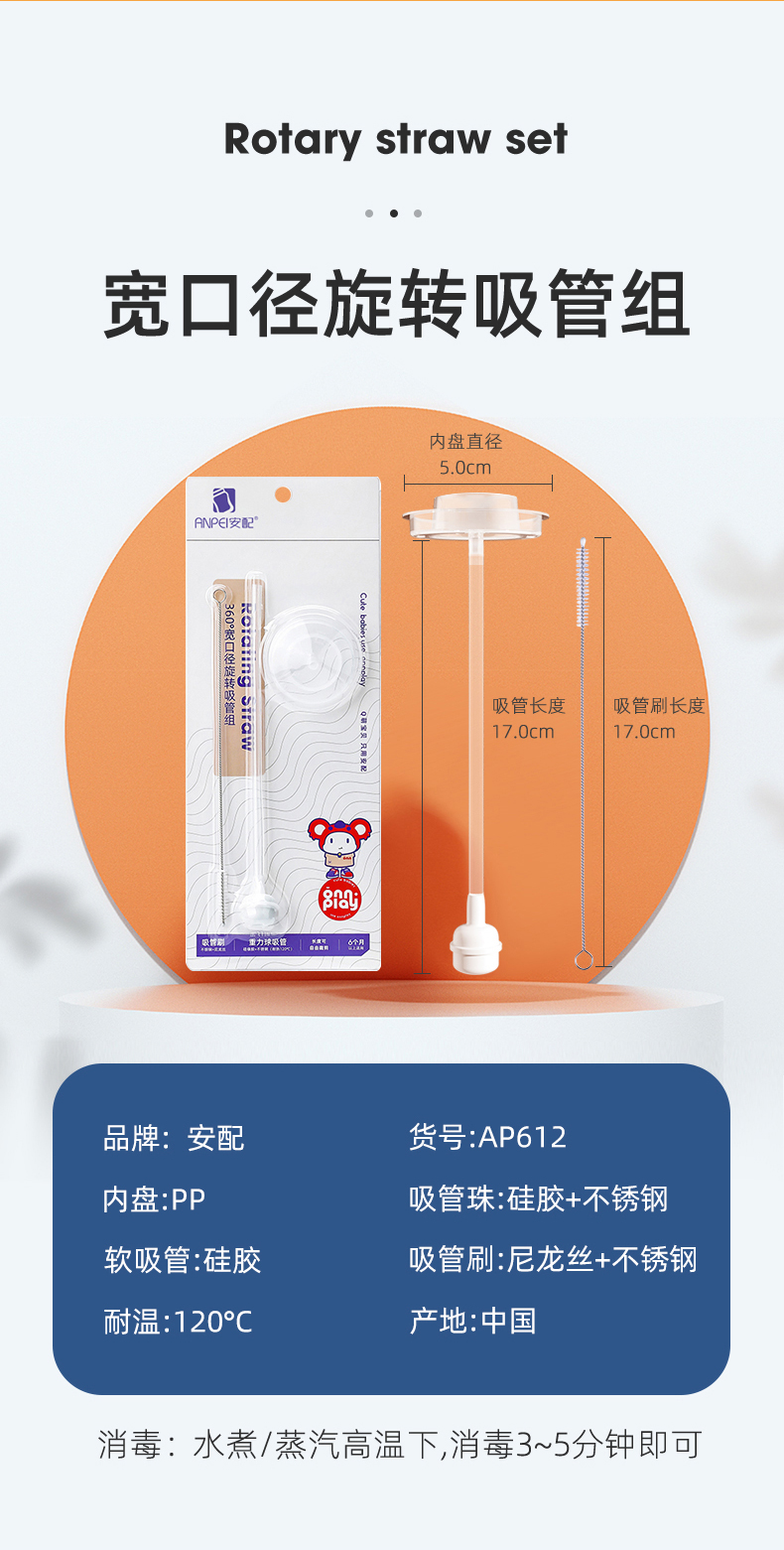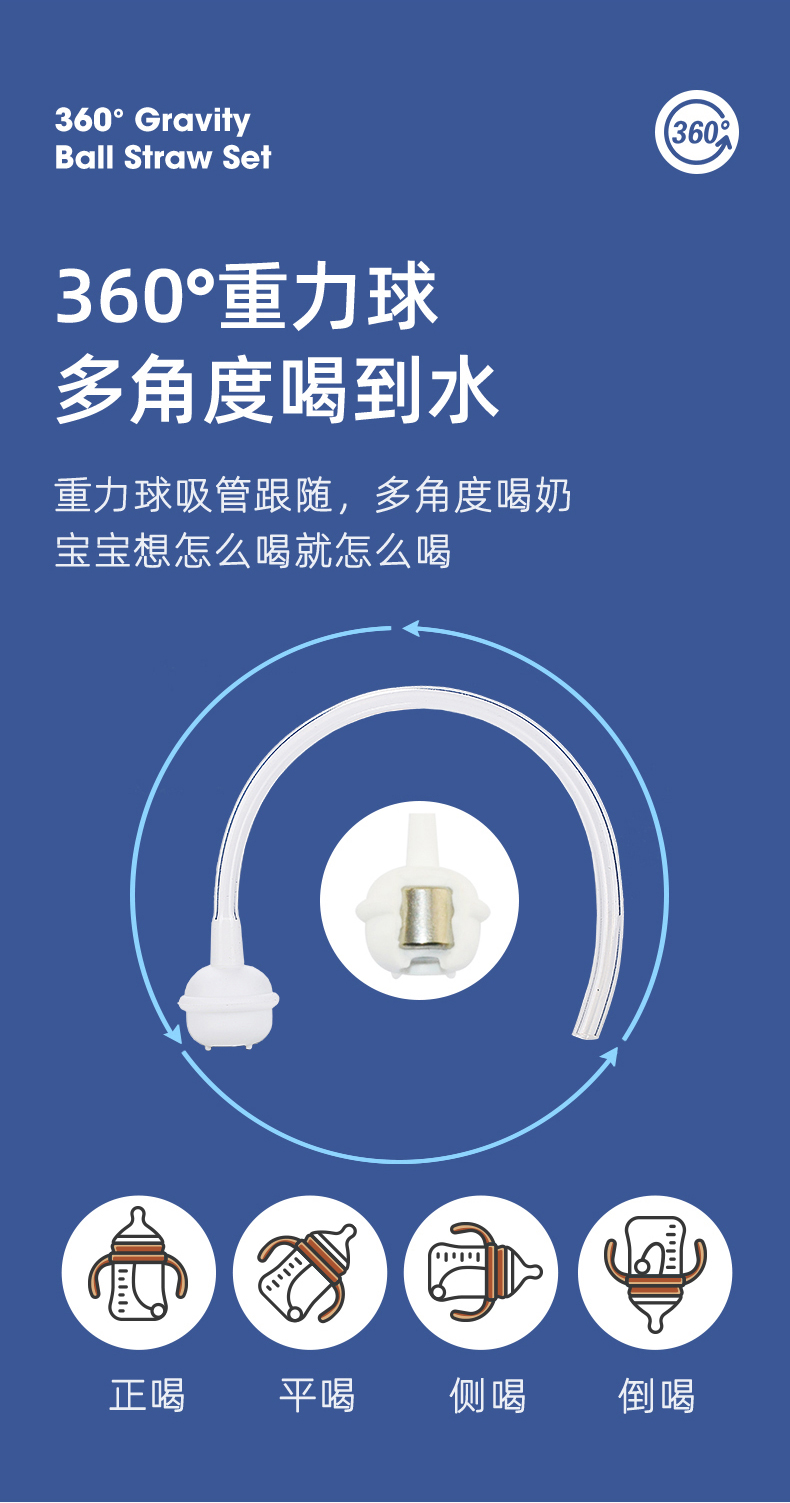 【360°重力球吸管组】适配贝亲宽口PPSU和玻璃奶瓶 安配AP612/622吸管组